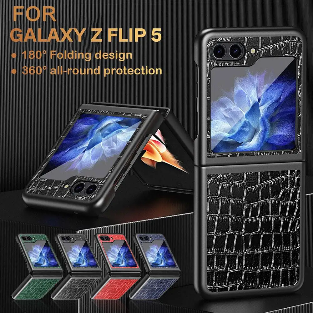 Comprar Funda de cuero con patrón de cocodrilo de lujo para Samsung Galaxy Z Flip5 5G Flip 5 PC duro a prueba de golpes Coque en Samsung ZFlip 5 ZFlip G4B1