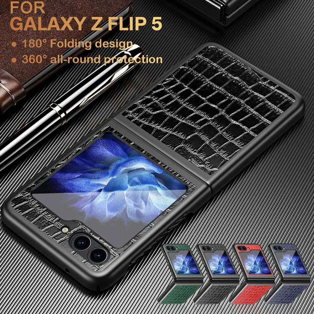 Comprar Funda de cuero con patrón de cocodrilo de lujo para Samsung Galaxy Z Flip5 5G Flip 5 PC duro a prueba de golpes Coque en Samsung ZFlip 5 ZFlip G4B1