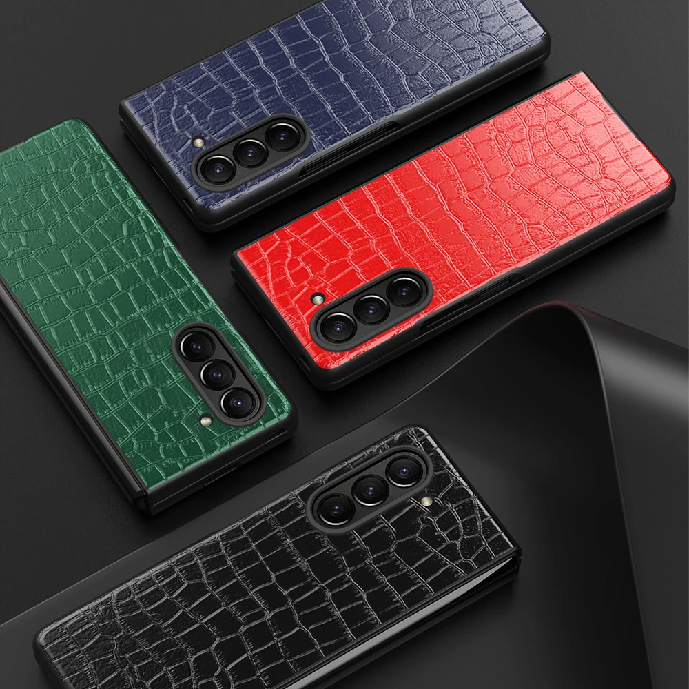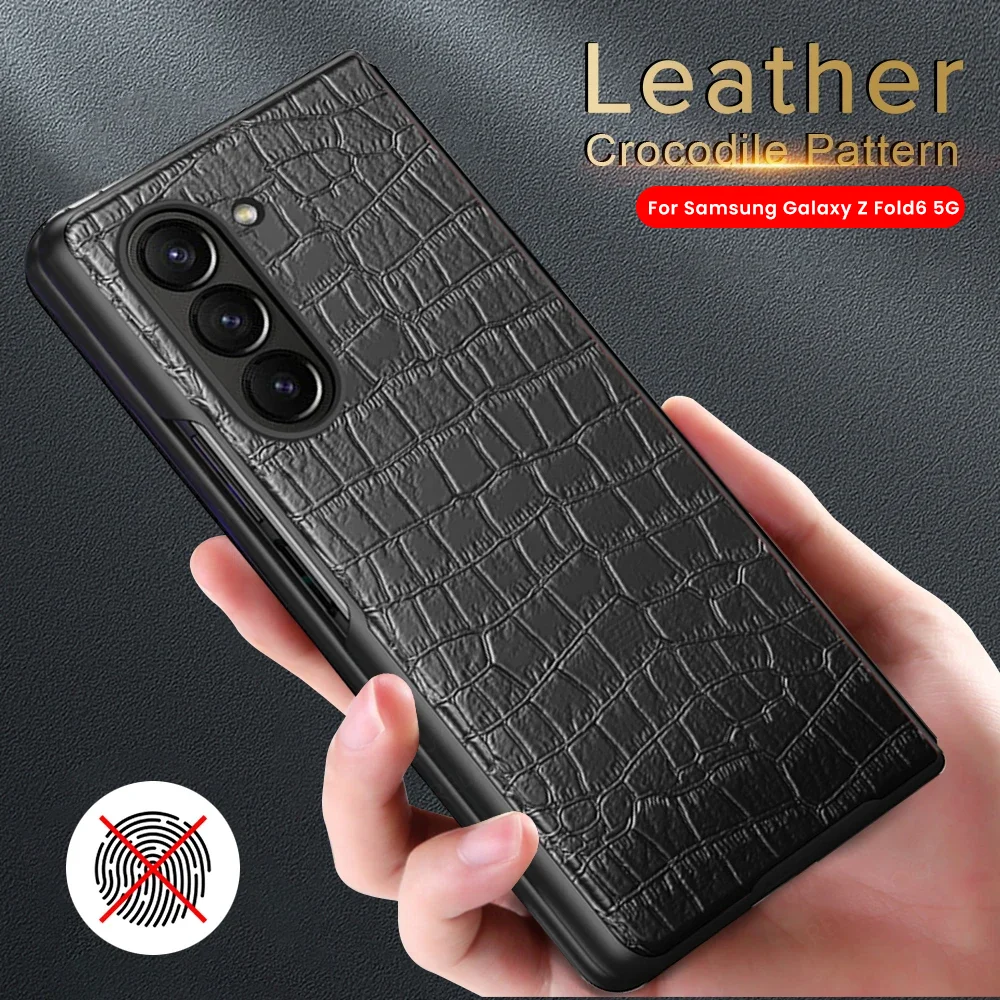 Comprar Funda de cuero con patrón de cocodrilo de lujo para Samsung Galaxy Z Fold6 5G Fold 6 Hard PC Frame a prueba de golpes Coque Sumsung ZFold6 ZFold 6