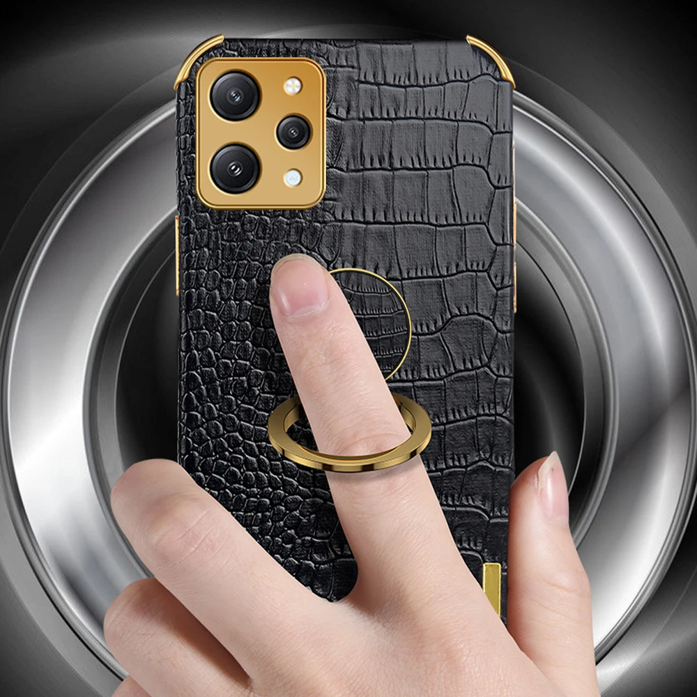 Para Xiaomi Redmi 12 funda con patrón de cocodrilo cubierta de cuero Redmi12 Redmy 12 4G 23053RN02A soporte de anillo magnético para coche Fundas
