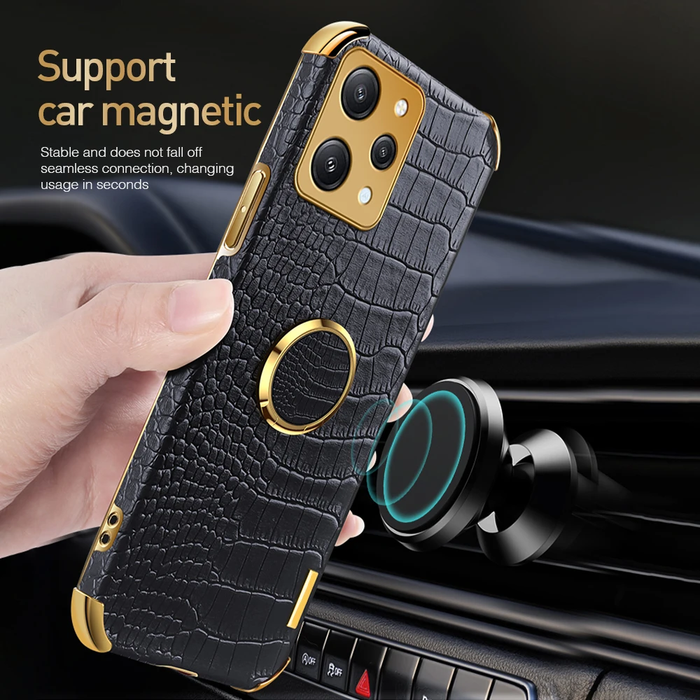 Comprar Funda de cuero con patrón de cocodrilo para Xiaomi Redmi 12, cubierta enchapada, 4G, 23053RN02A, soporte de anillo magnético para coche