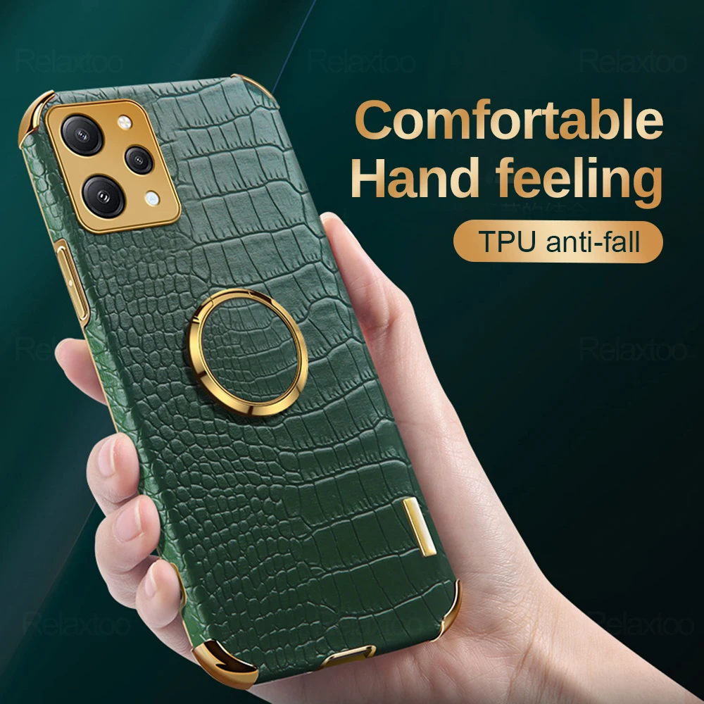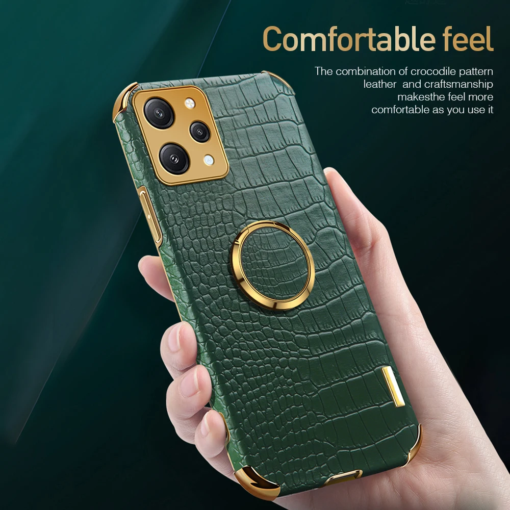 Comprar Funda de cuero con patrón de cocodrilo para Xiaomi Redmi 12, cubierta enchapada, 4G, 23053RN02A, soporte de anillo magnético para coche