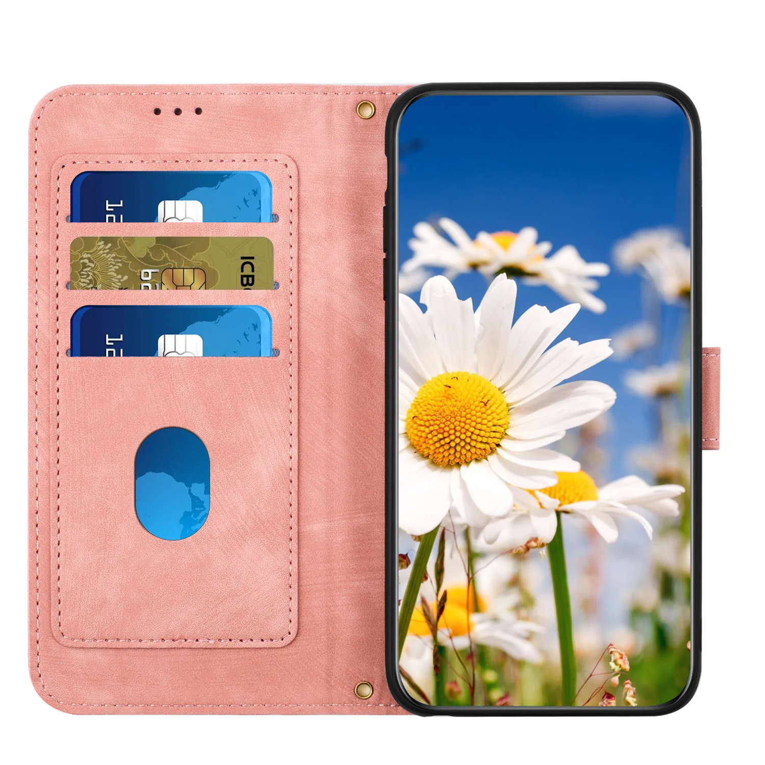 Funda de cuero con diseño de flores para IPhone 14 Pro Max 15 13 12 11 X XS XR 7 8 Plus SE2022, funda de libro con correa de mano