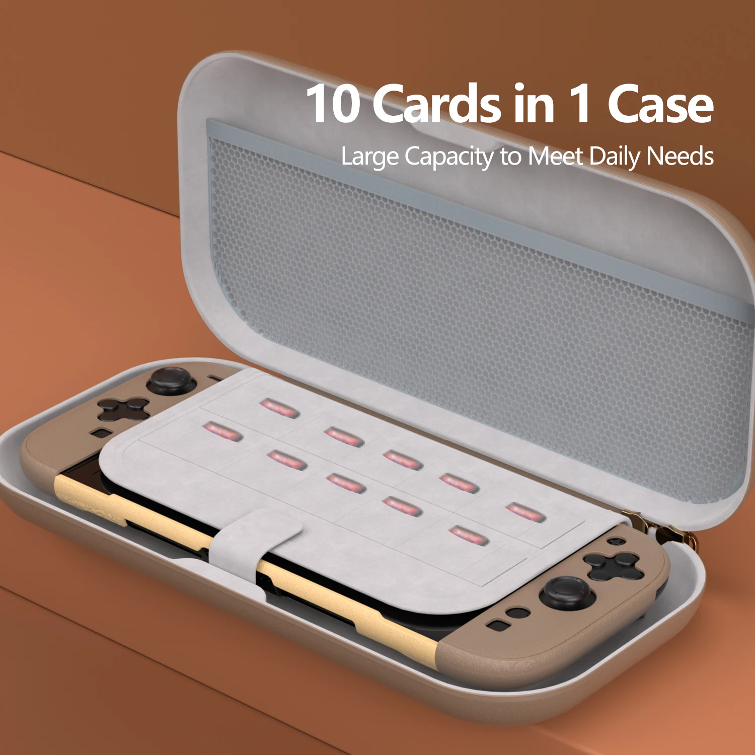El estuche ofrece un amplio espacio para guardar su consola, juegos y accesorios, manteniendo todo organizado y seguro.