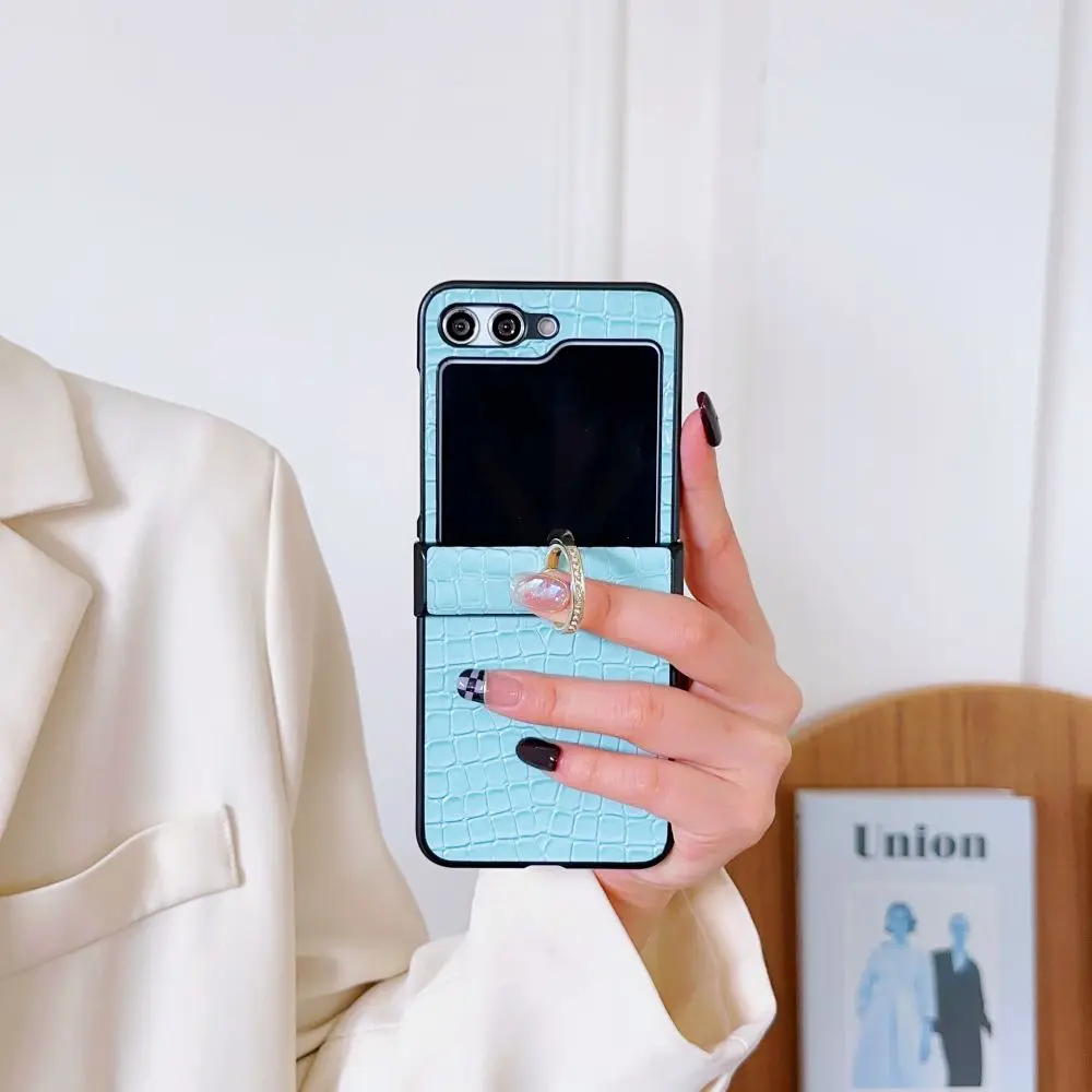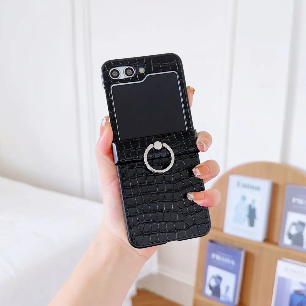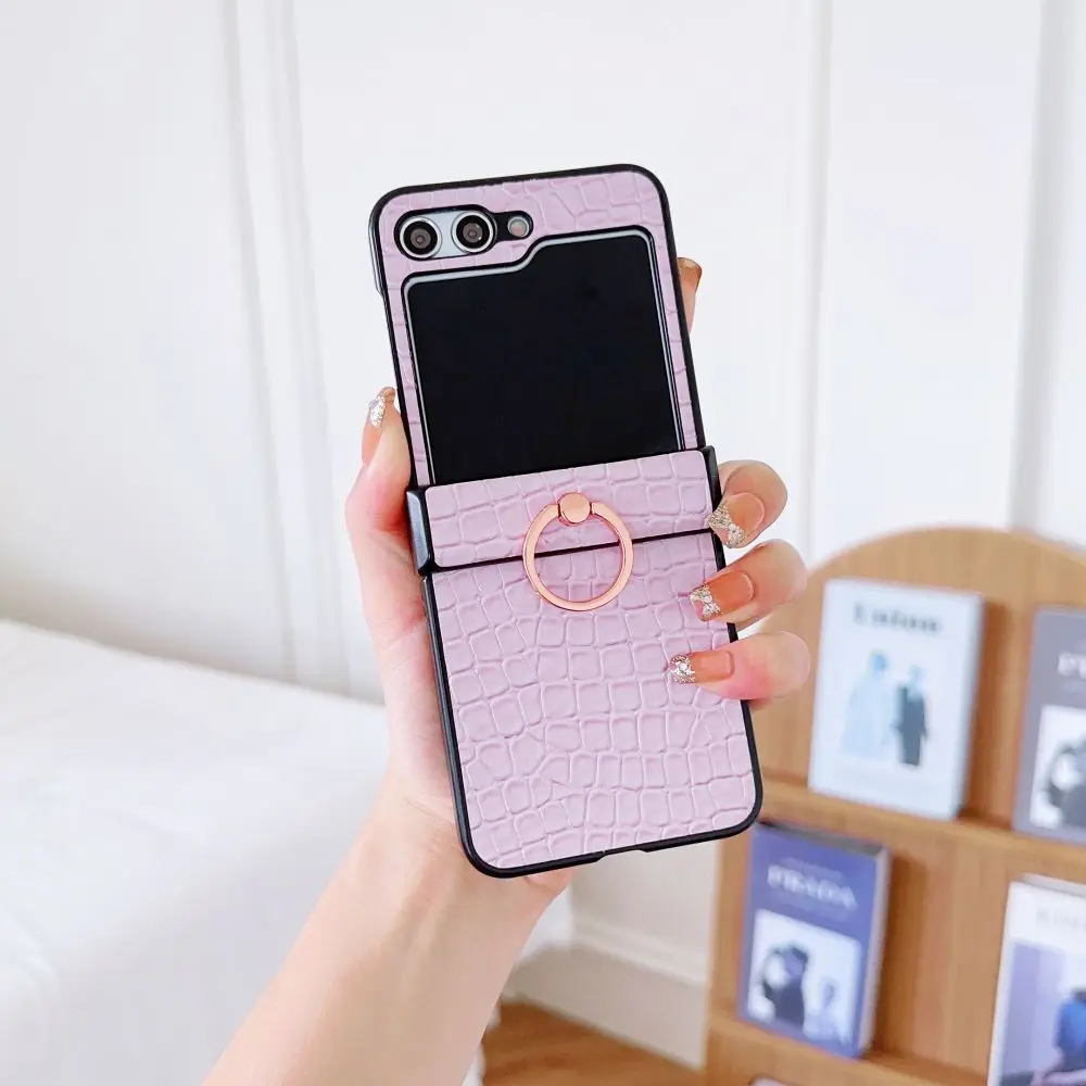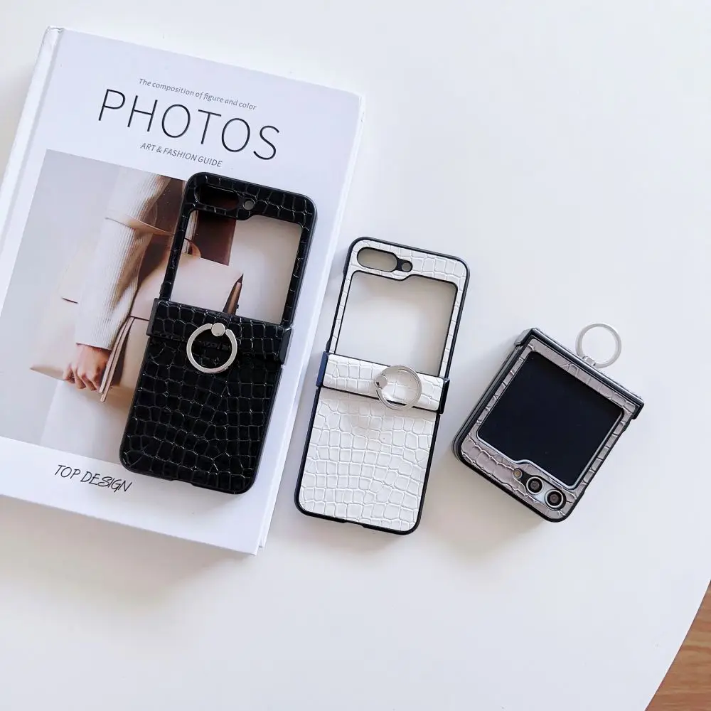 Para Samsung Galaxy Z Flip 5 4 Funda de cuero de PU de moda con anillo Funda protectora trasera Funda de teléfono para Samsung Z Flip 5 4 Shell