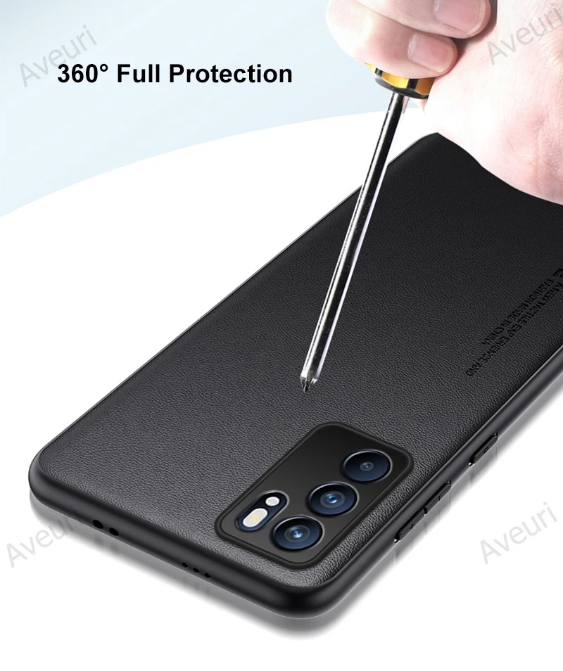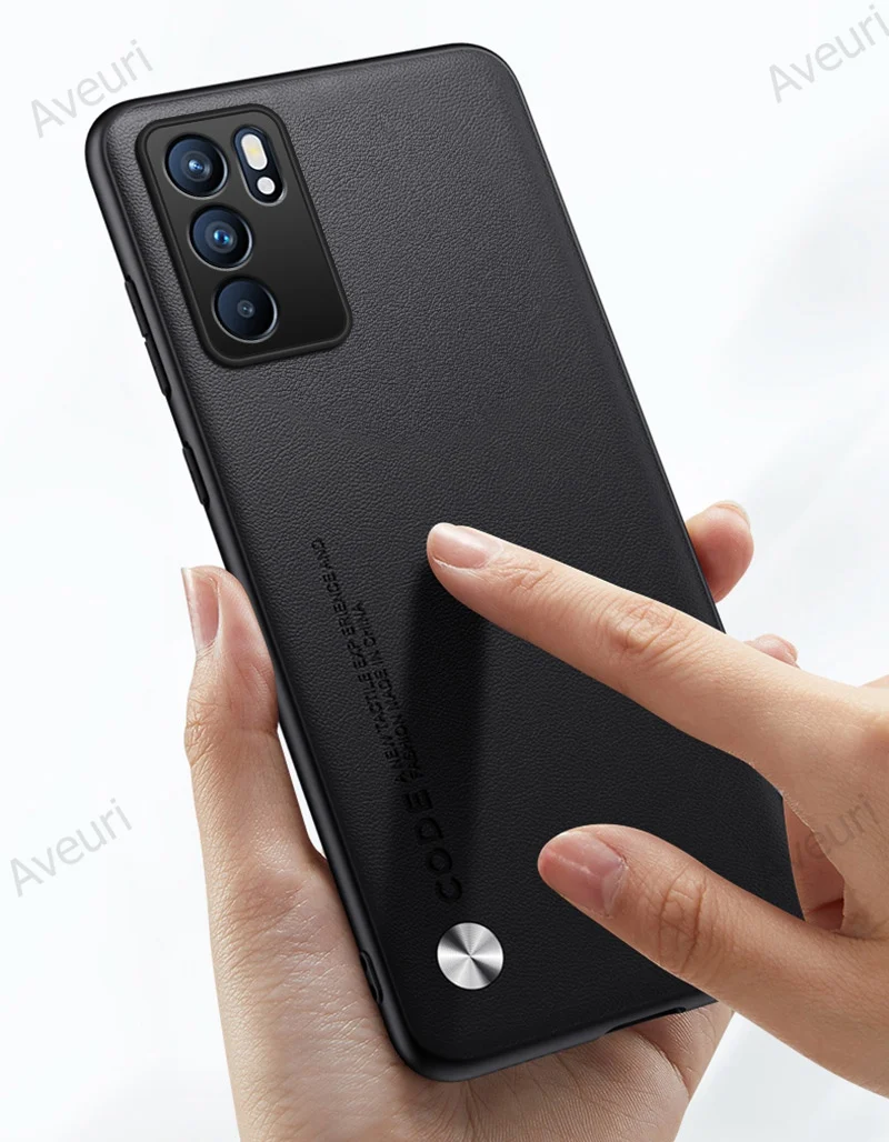 Funda de cuero PU de lujo para OPPO Reno 6 5G, funda trasera de silicona mate a prueba de golpes, funda de teléfono de protección completa para OPPO Reno6 5G