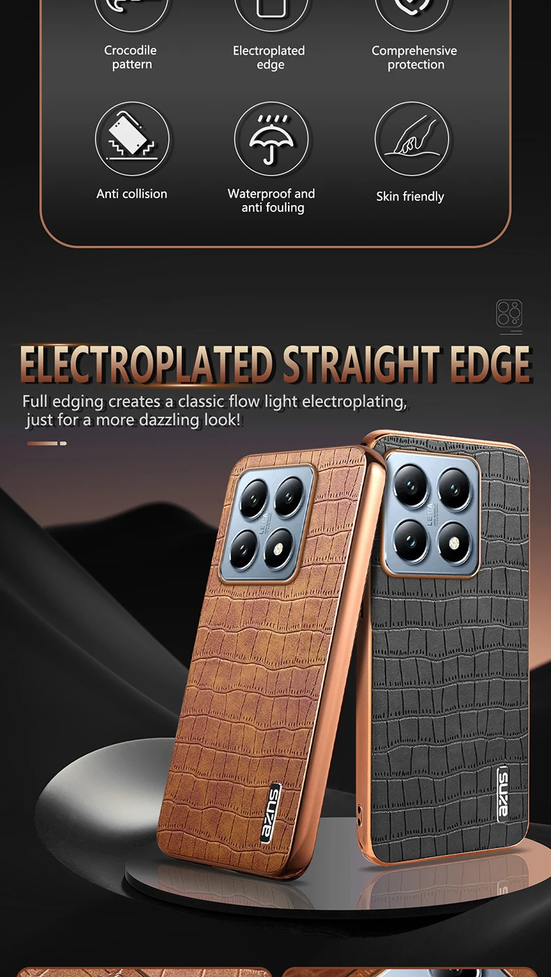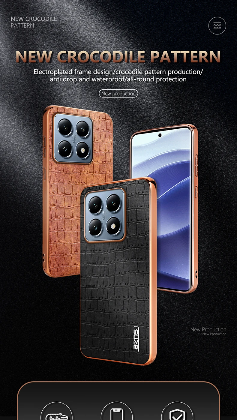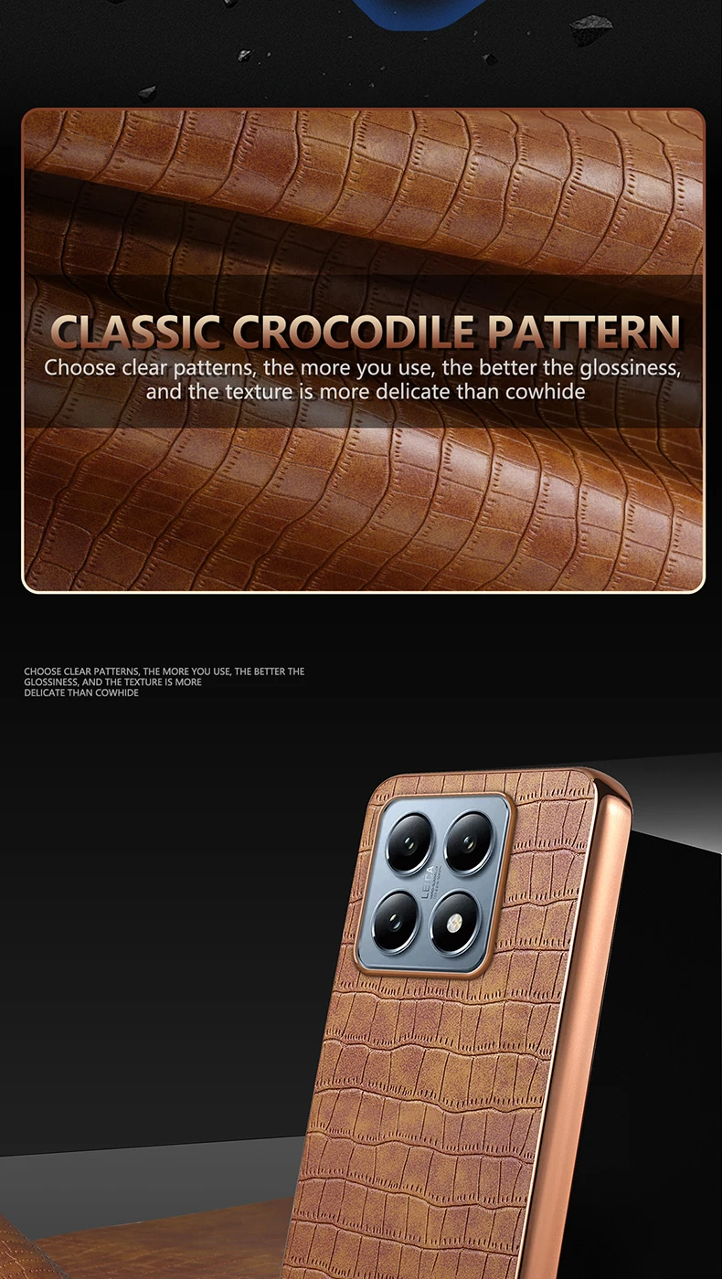 Funda de cuero PU con patrón de cocodrilo para Xiaomi Mi 14T Pro 14T, cubierta de marco de parachoques con revestimiento suave a prueba de golpes, carcasa de teléfono con textura 3D
