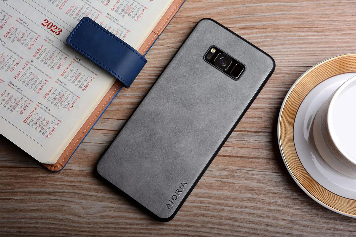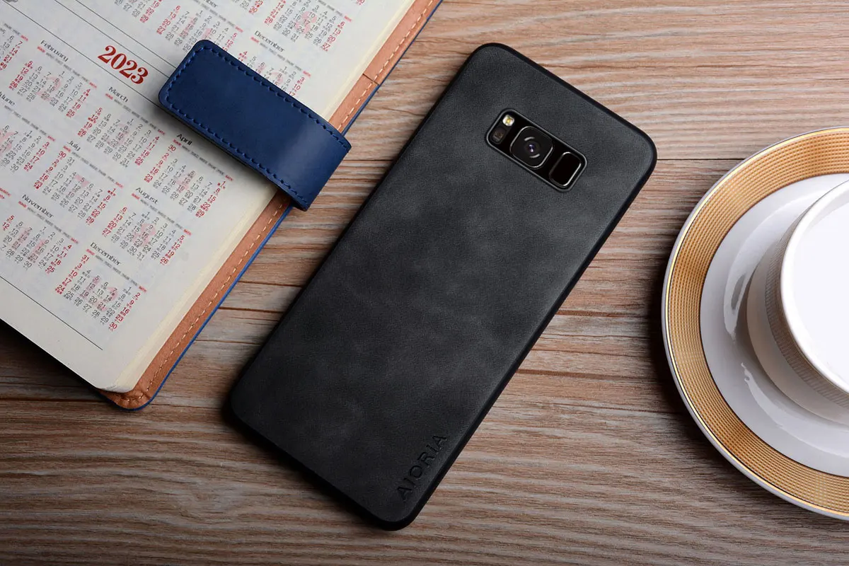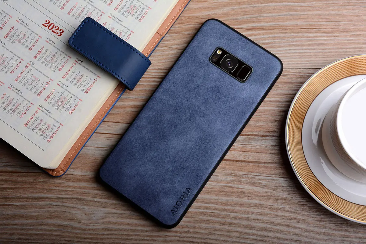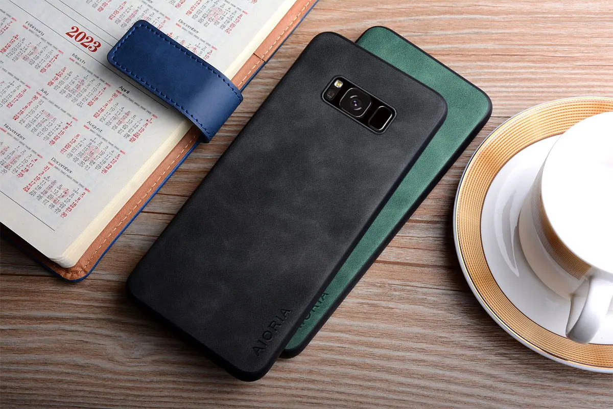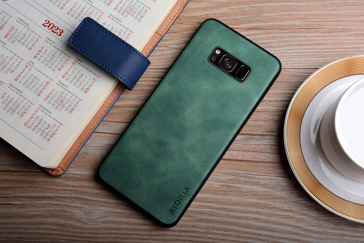 Funda para Samsung Galaxy S8 S9 Plus, diseño simple, color sólido, funda de piel sintética