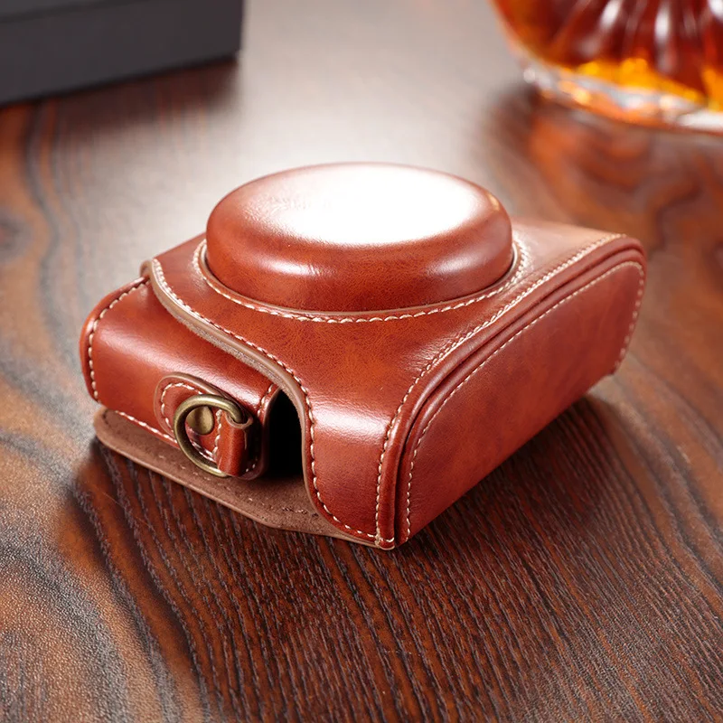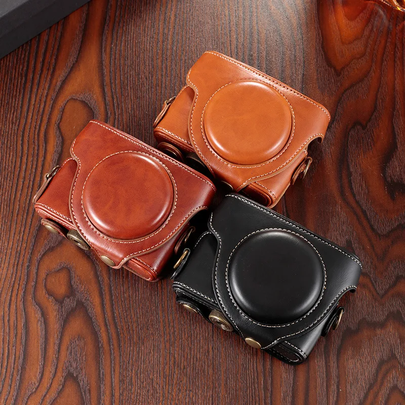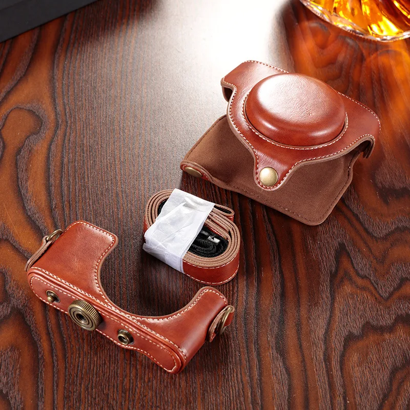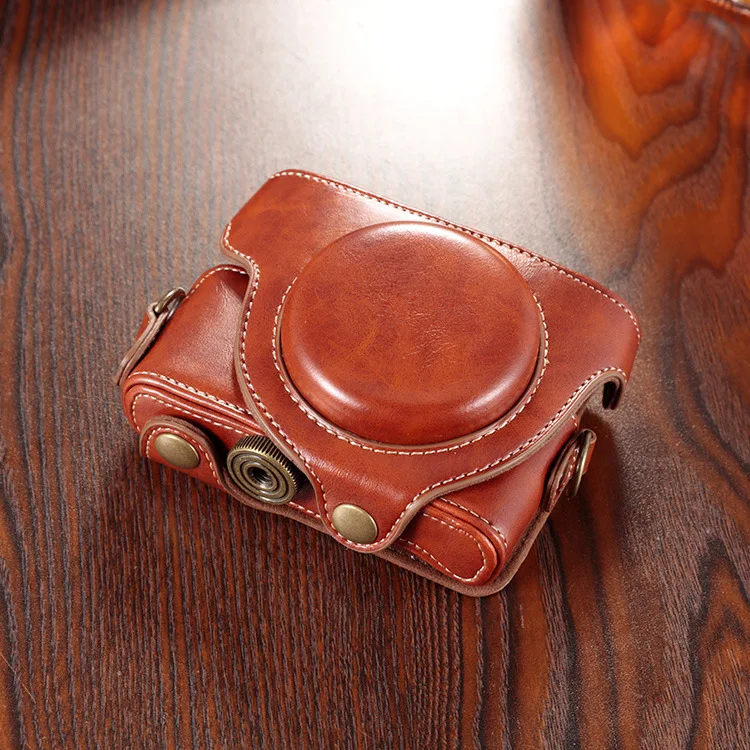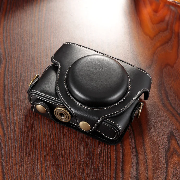 Comprar Funda de cuero PU para Sony RX100, RX100II, RX100, M3, RX100III, M4, M5, con botón de tornillo, correa, bolso de hombro