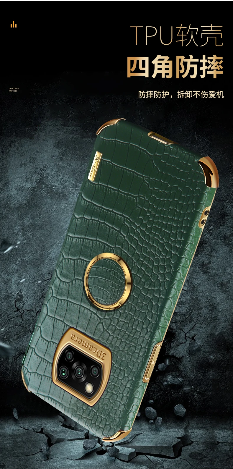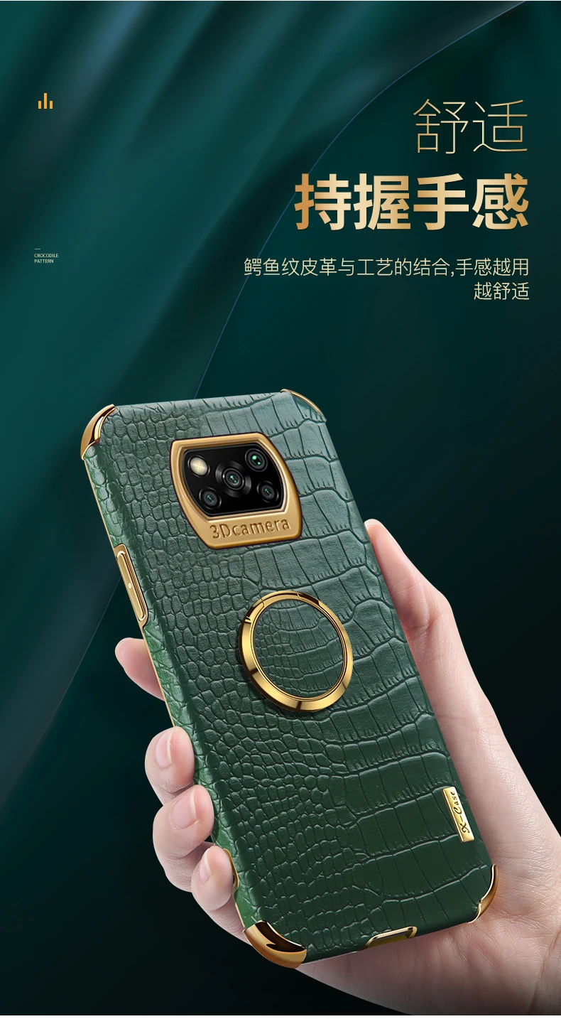Para Xiaomi POCO X3 NFC funda de lujo de cuero PU suave con soporte de anillo funda protectora trasera para Xiaomi POCO M3 X3 F2 PRO