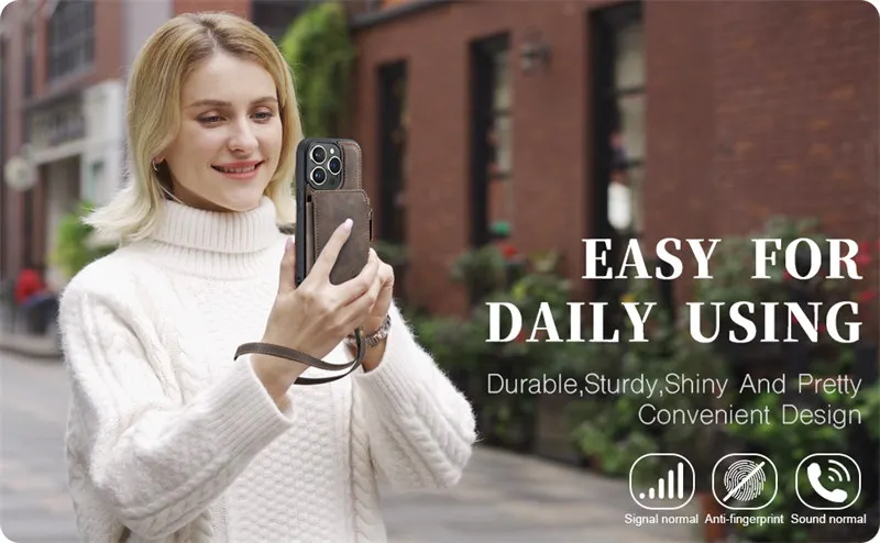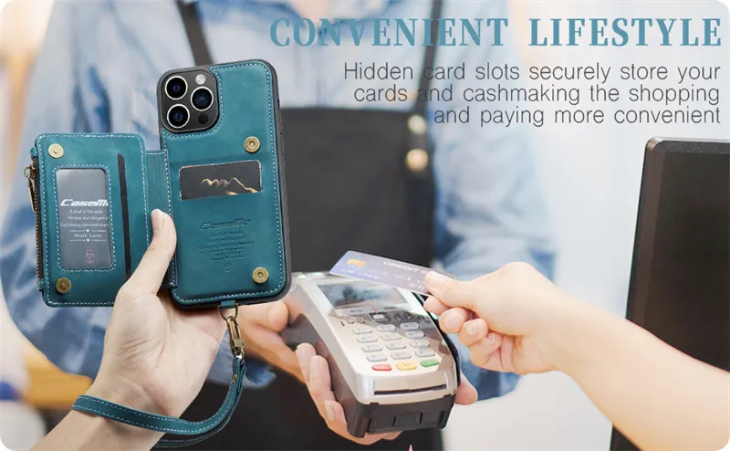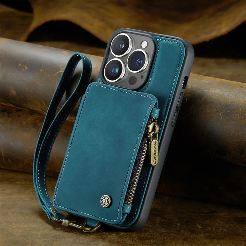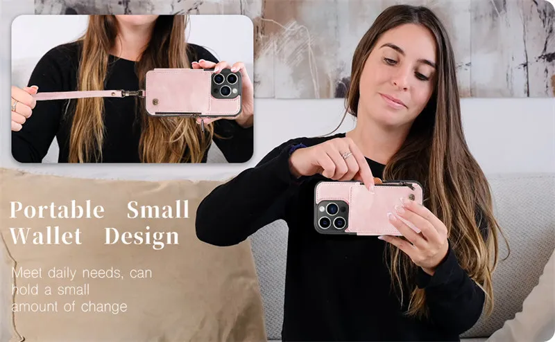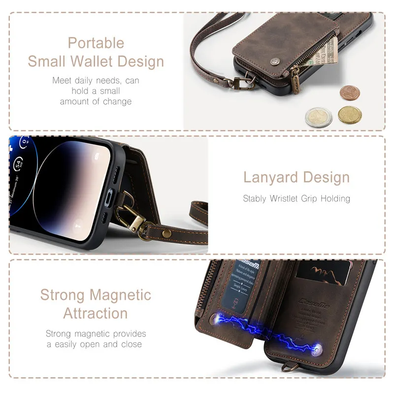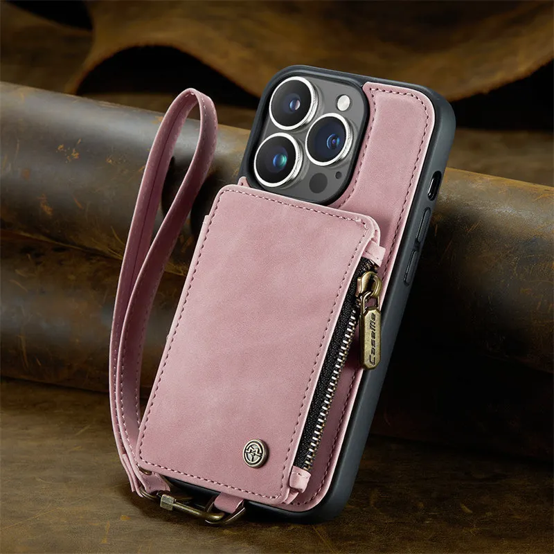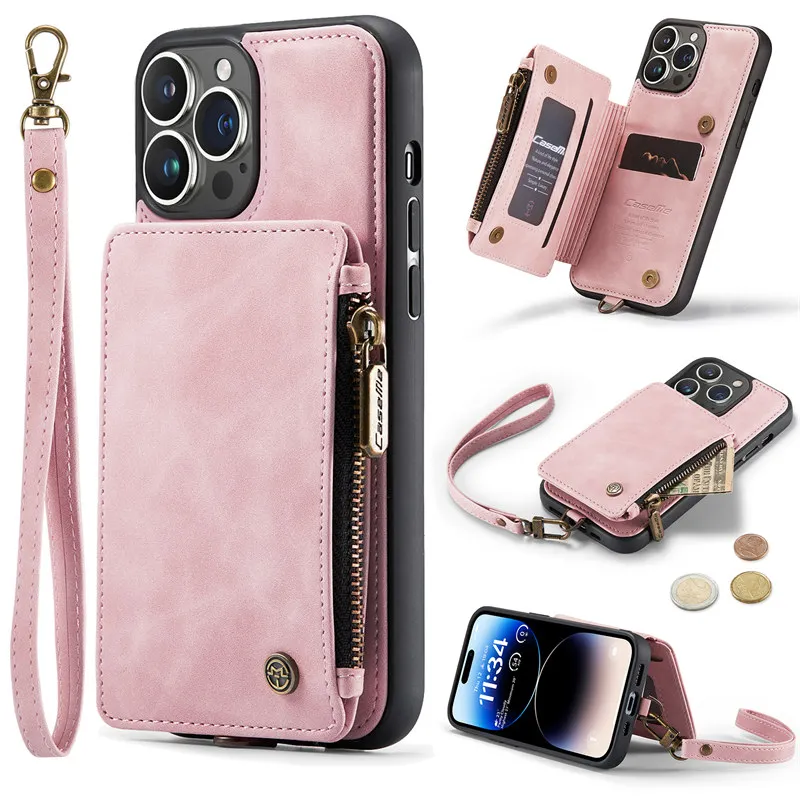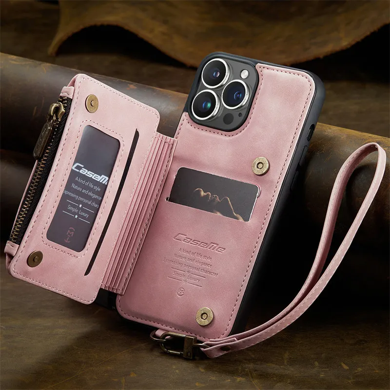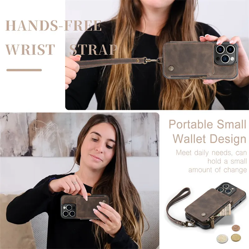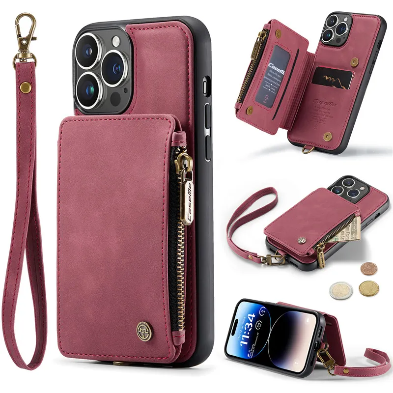 Comprar Funda de cuero PU con tapa para iPhone 14 Pro Max 13 12 11 XS XR X 7 8 Plus, cartera con cremallera, funda trasera para tarjeta para Samsung S23 S22 S21