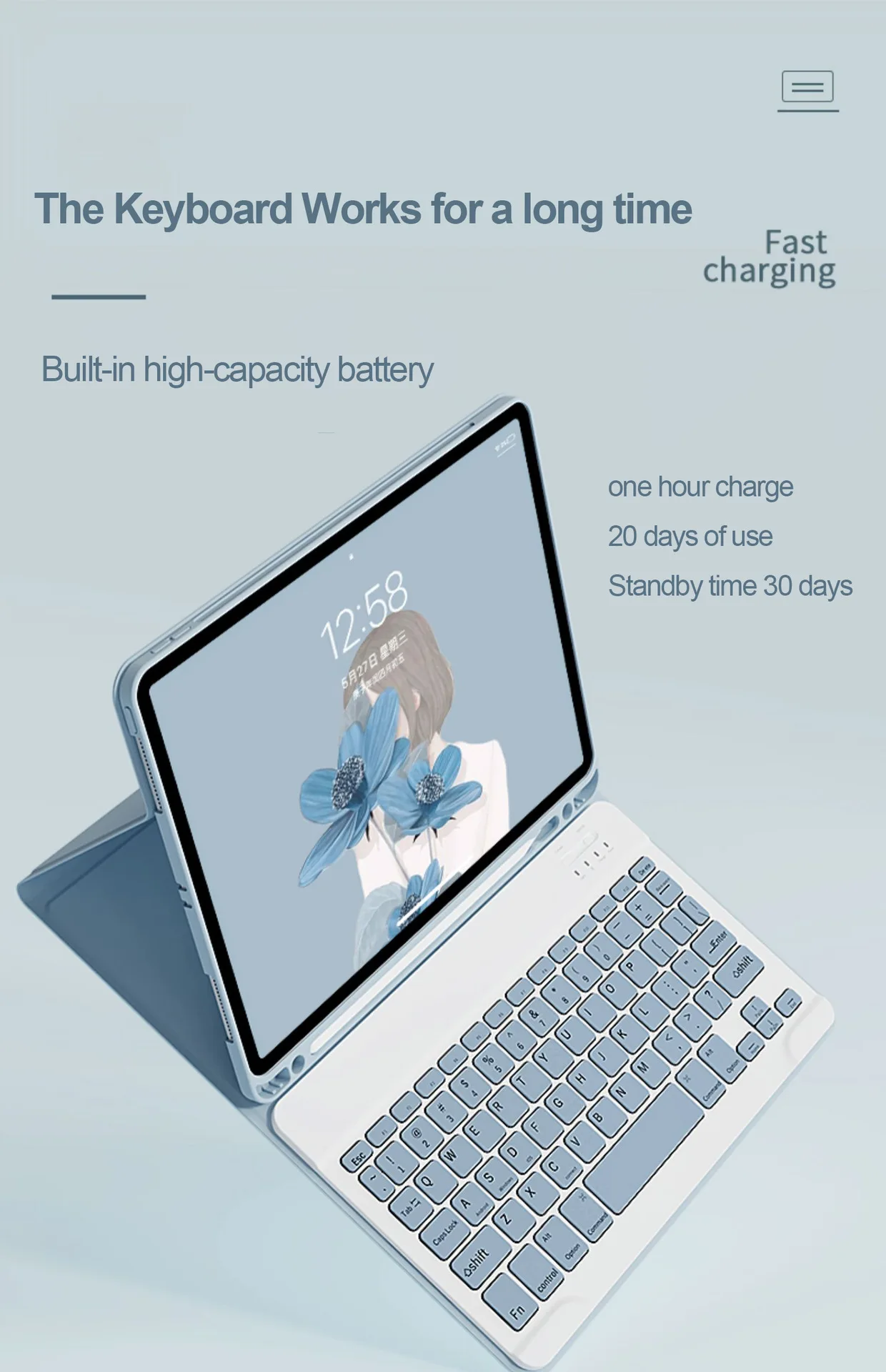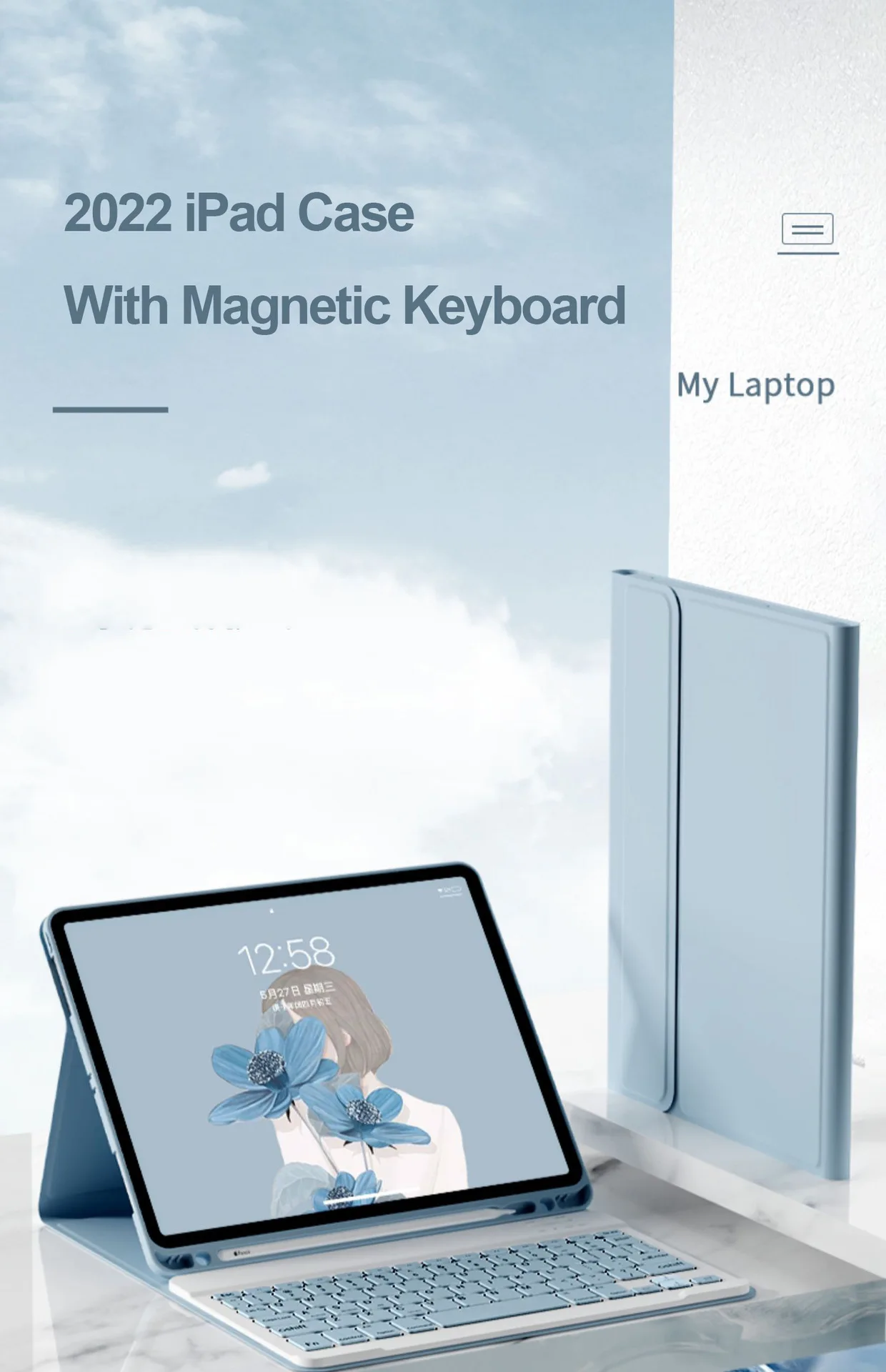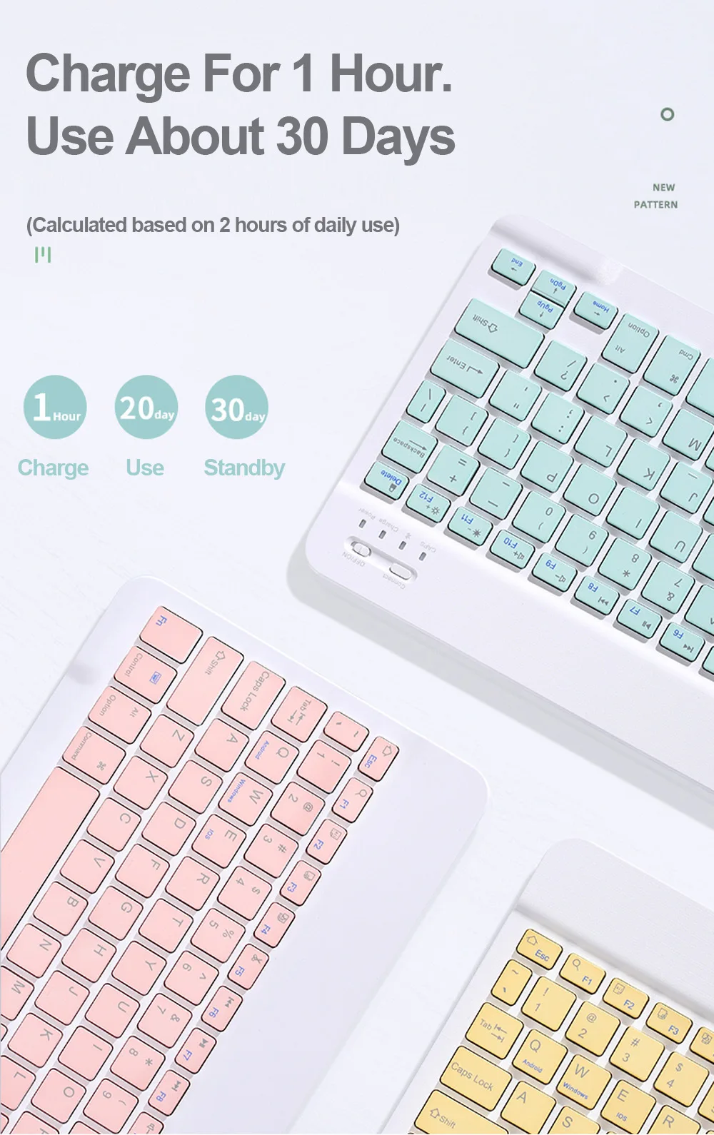 【Teclado magnético desmontable 】El teclado magnético inalámbrico es extraíble y móvil para facilitar la colocación del iPad y el teclado en una posición cómoda. Las teclas redondas hacen que su teclado sea único y atractivo.