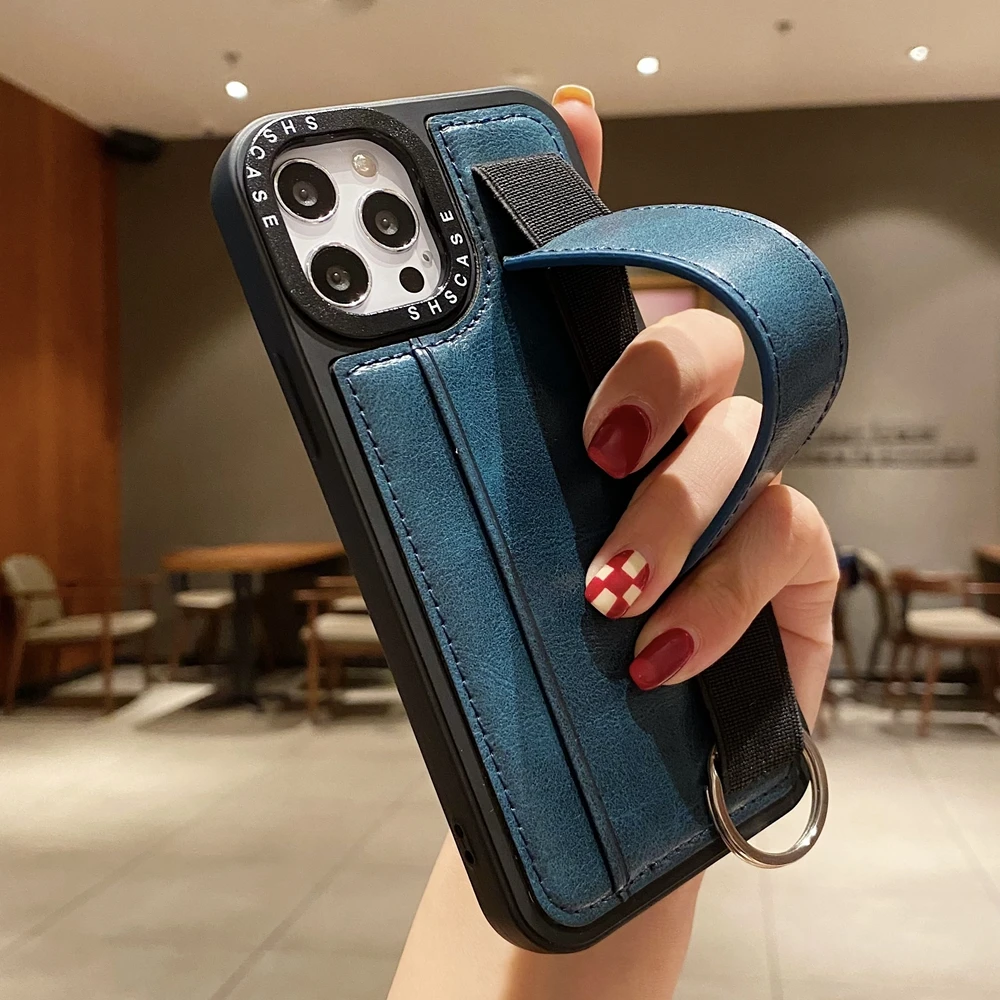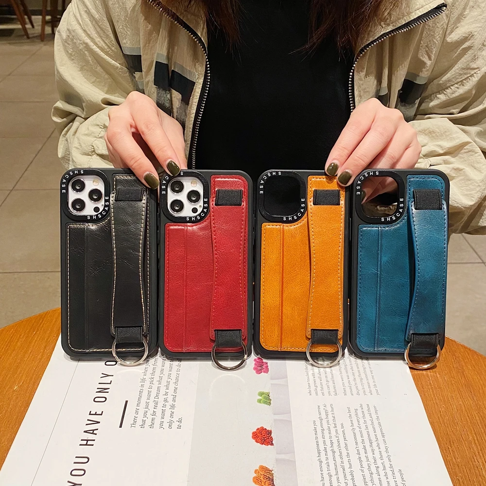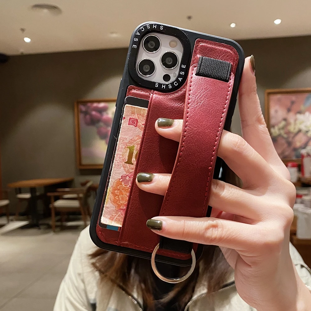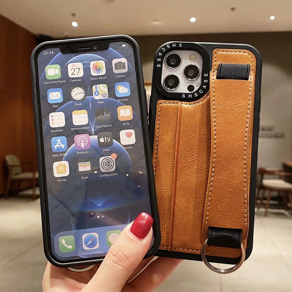 Comprar Funda de cuero con ranura para carrito, carcasa con correa para la muñeca para iPhone 13, 14, 11, 12 Pro, X, Xs, Max, Xr, 7, 8, 6s, 14 Plus, SE 2020