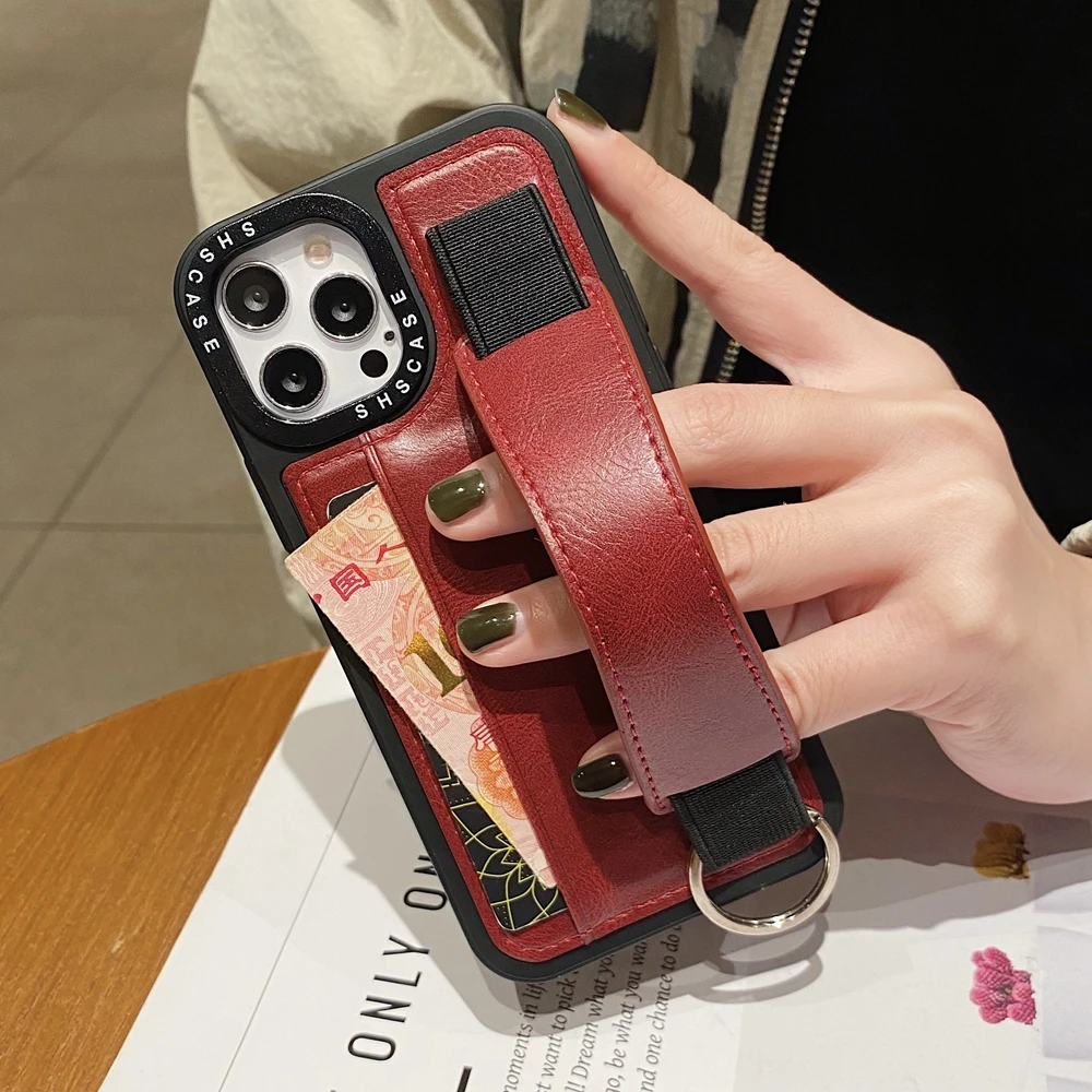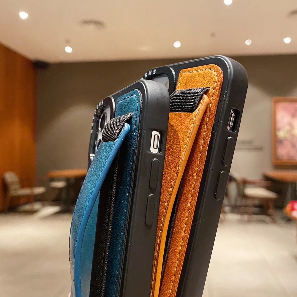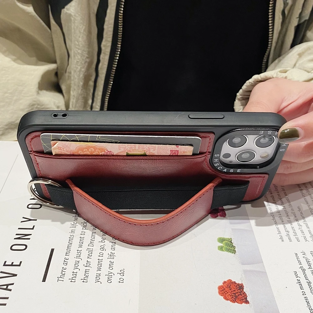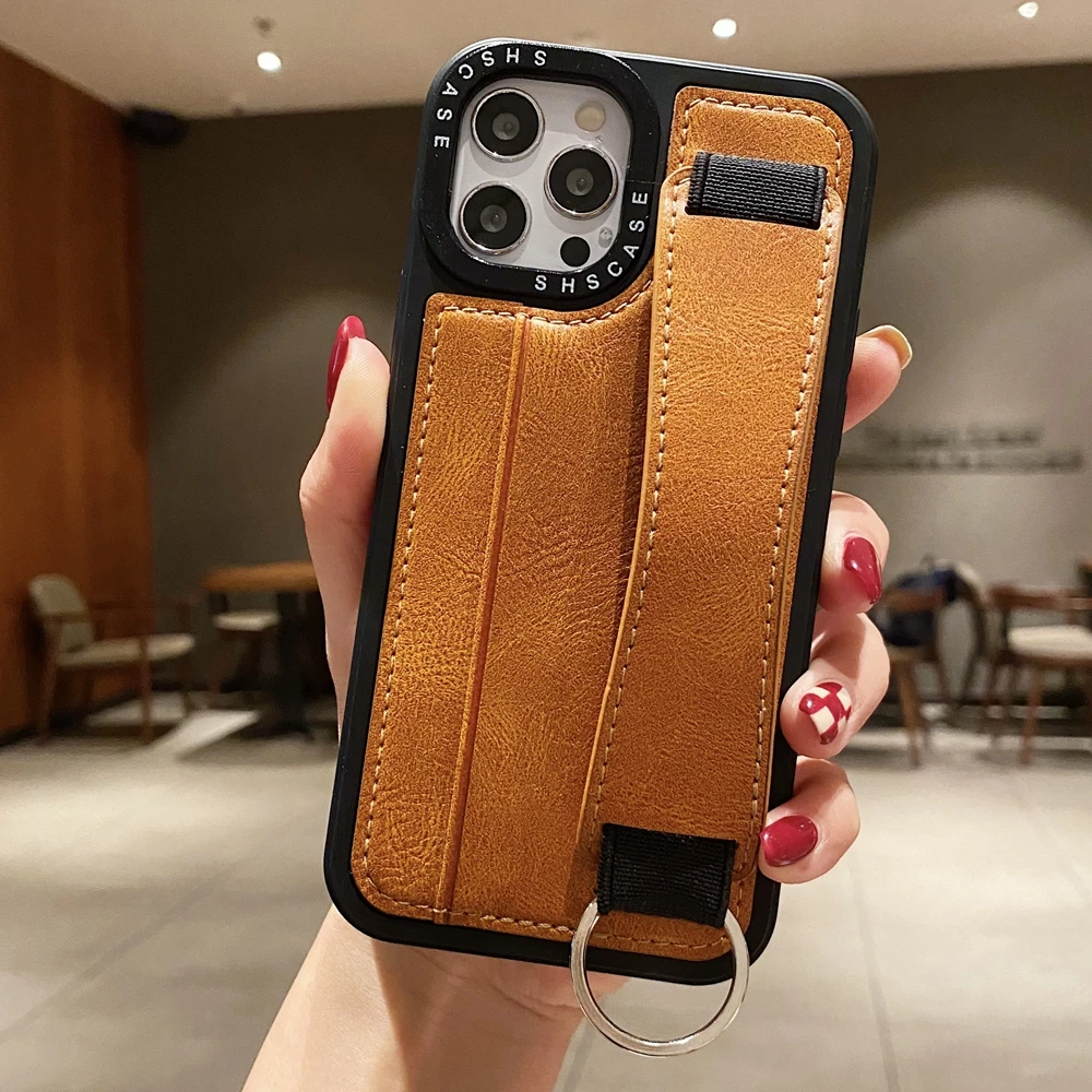 Comprar Funda de cuero con ranura para carrito, carcasa con correa para la muñeca para iPhone 13, 14, 11, 12 Pro, X, Xs, Max, Xr, 7, 8, 6s, 14 Plus, SE 2020