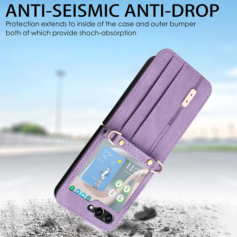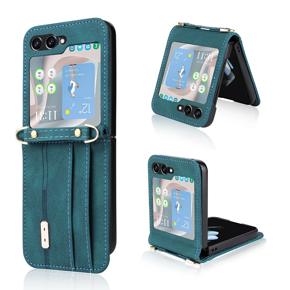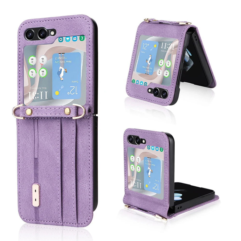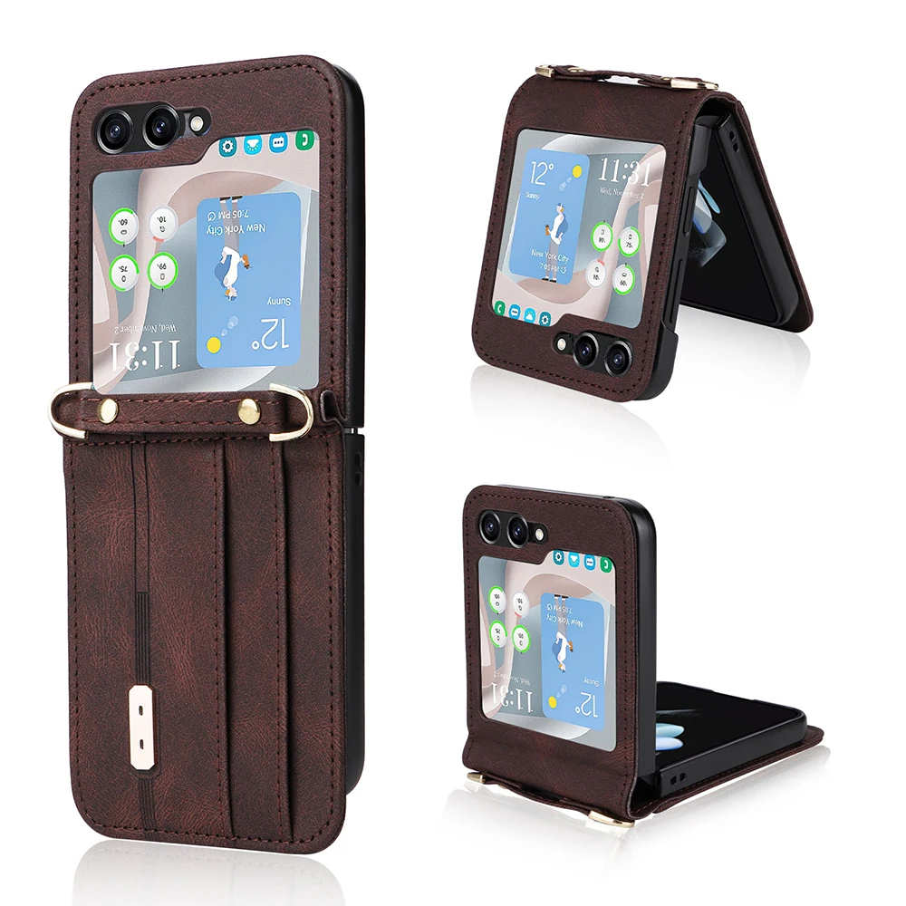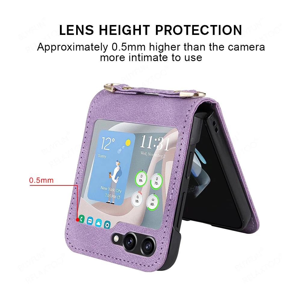 Comprar Funda de cuero con ranura para tarjeta para Samsung Galaxy Z Flip5, bolso cruzado para Samsung ZFlip5, ZFlip 5, 5G, 6,7 pulgadas, cordón
