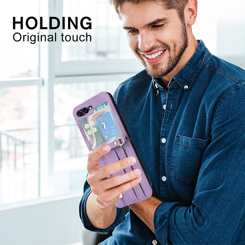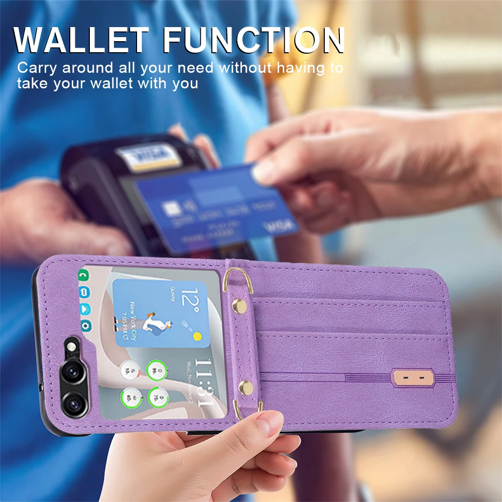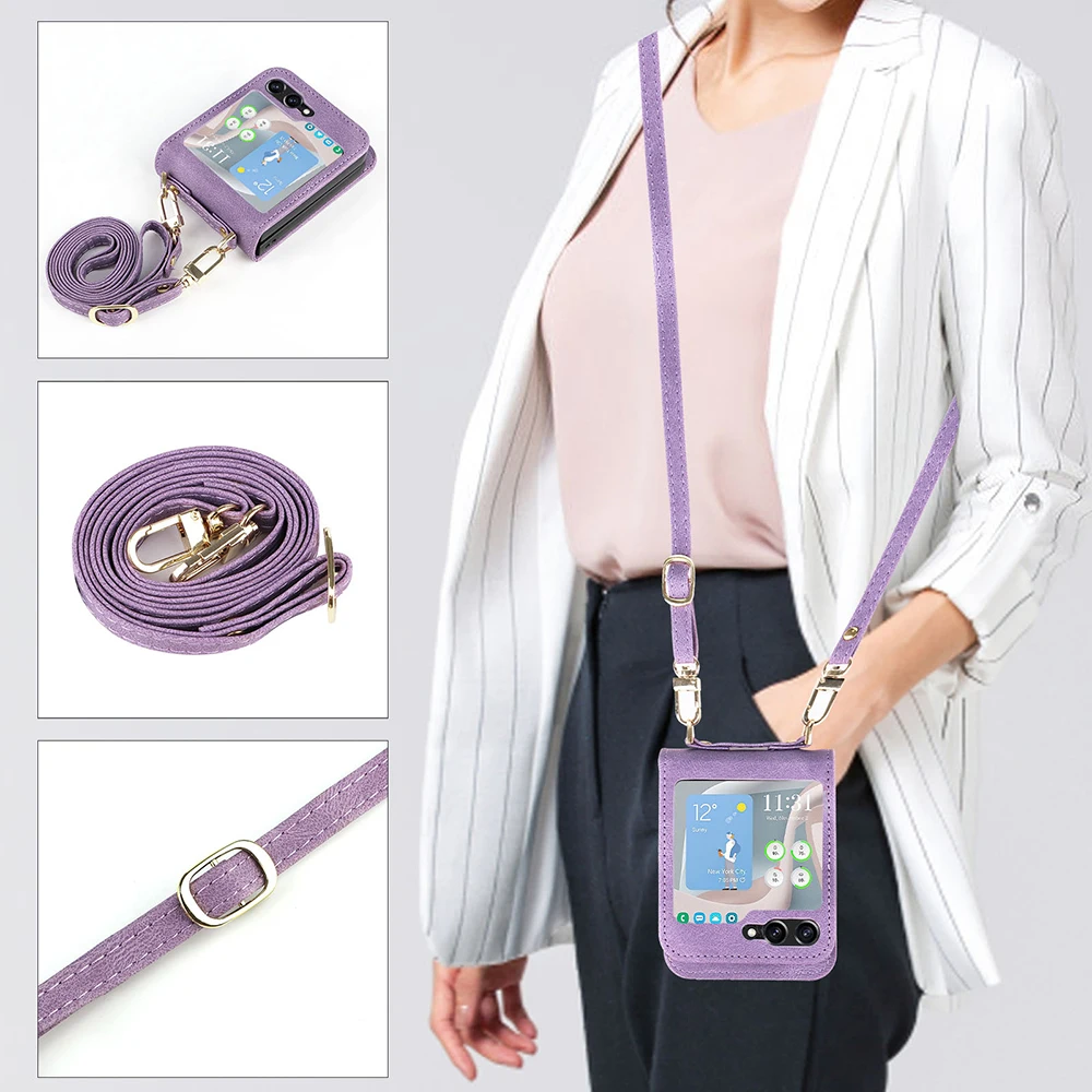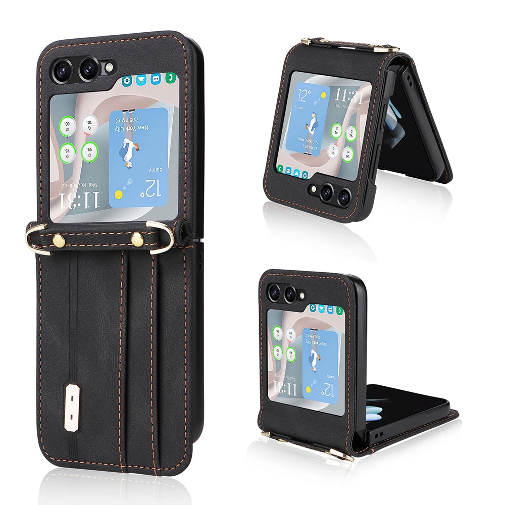 Comprar Funda de cuero con ranura para tarjeta para Samsung Galaxy Z Flip5, bolso cruzado para Samsung ZFlip5, ZFlip 5, 5G, 6,7 pulgadas, cordón