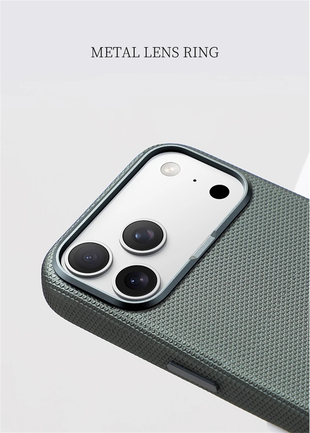 Comprar Funda de cuero con relieve de Color de lujo para iPhone 17 Pro Max 16 15 14 13 para cubierta de lente de aleación magnética MagSafe a prueba de golpes