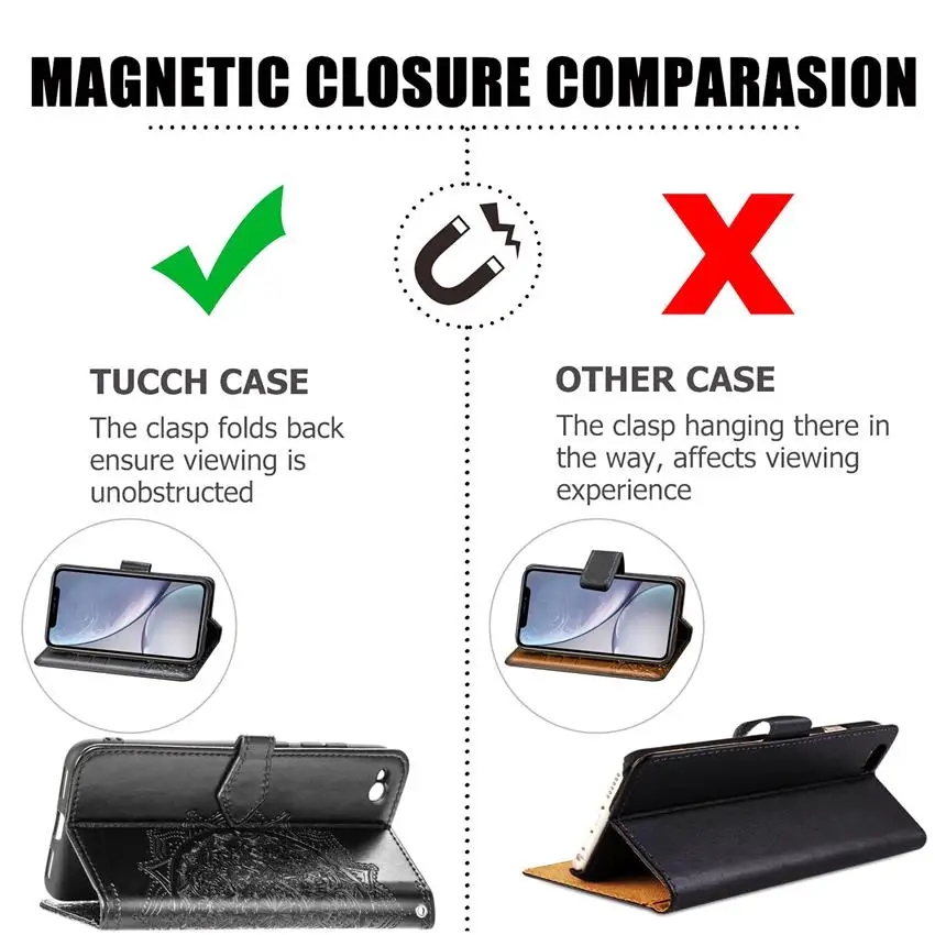 -- Diseñado como funda tipo cartera, ranuras para tarjetas y bolsillo interior para llevar ID, efectivo y tarjetas de crédito.