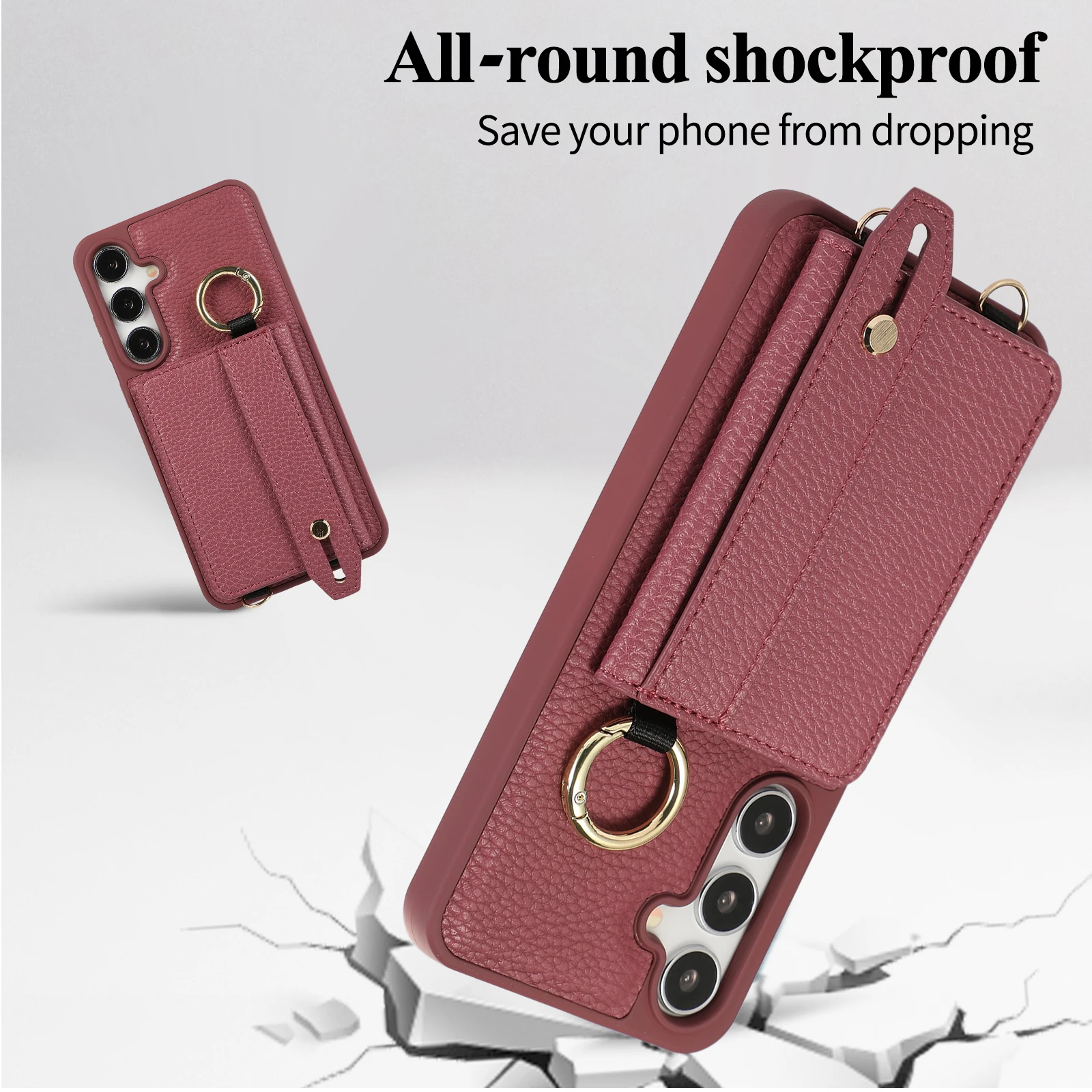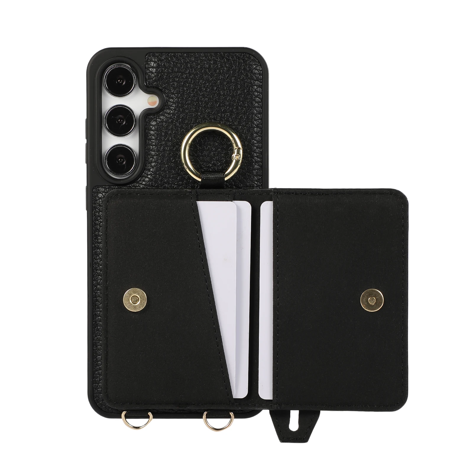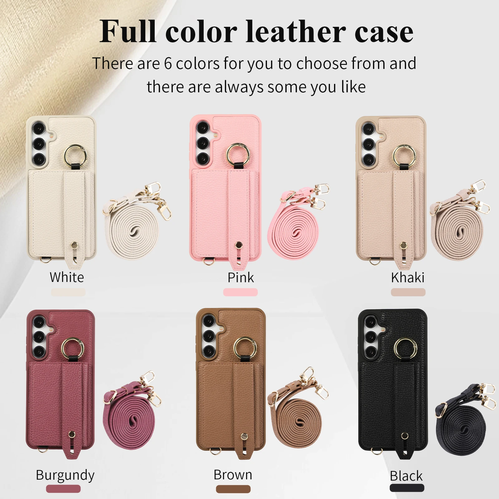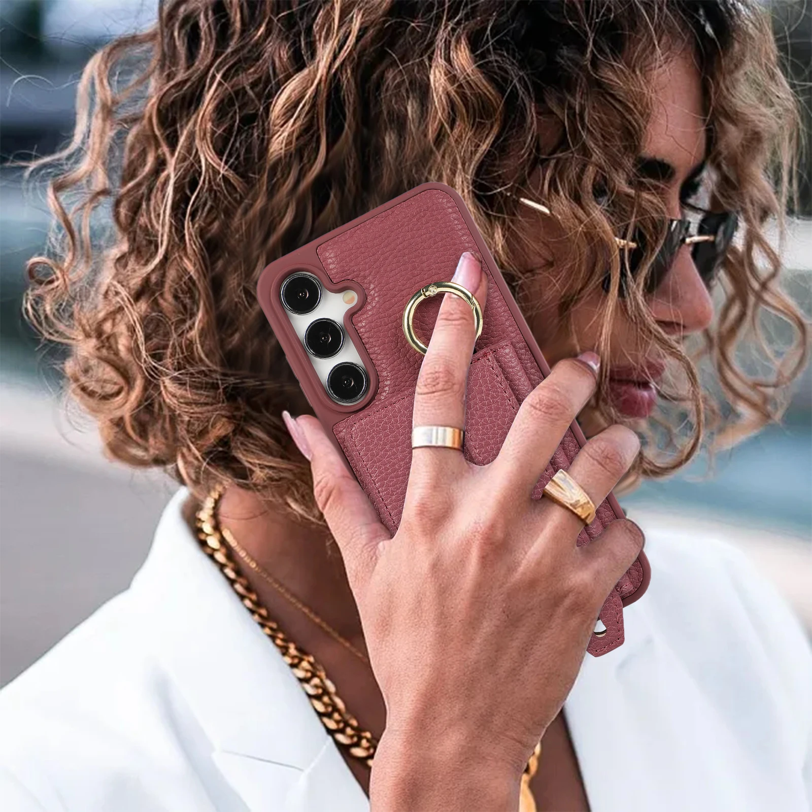 Comprar Funda de cuero para Samsung Galaxy S24 Ultra, S23 Plus, S22, soporte de anillo, funda con cordón