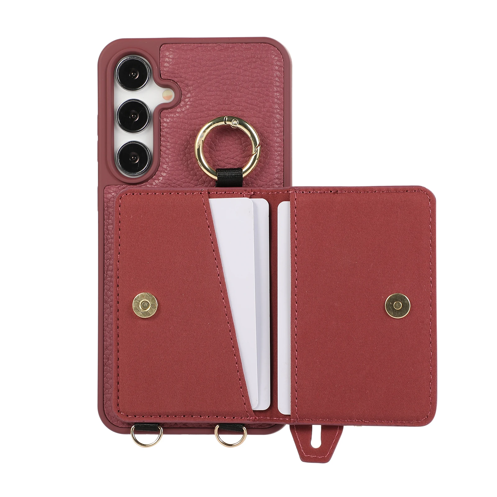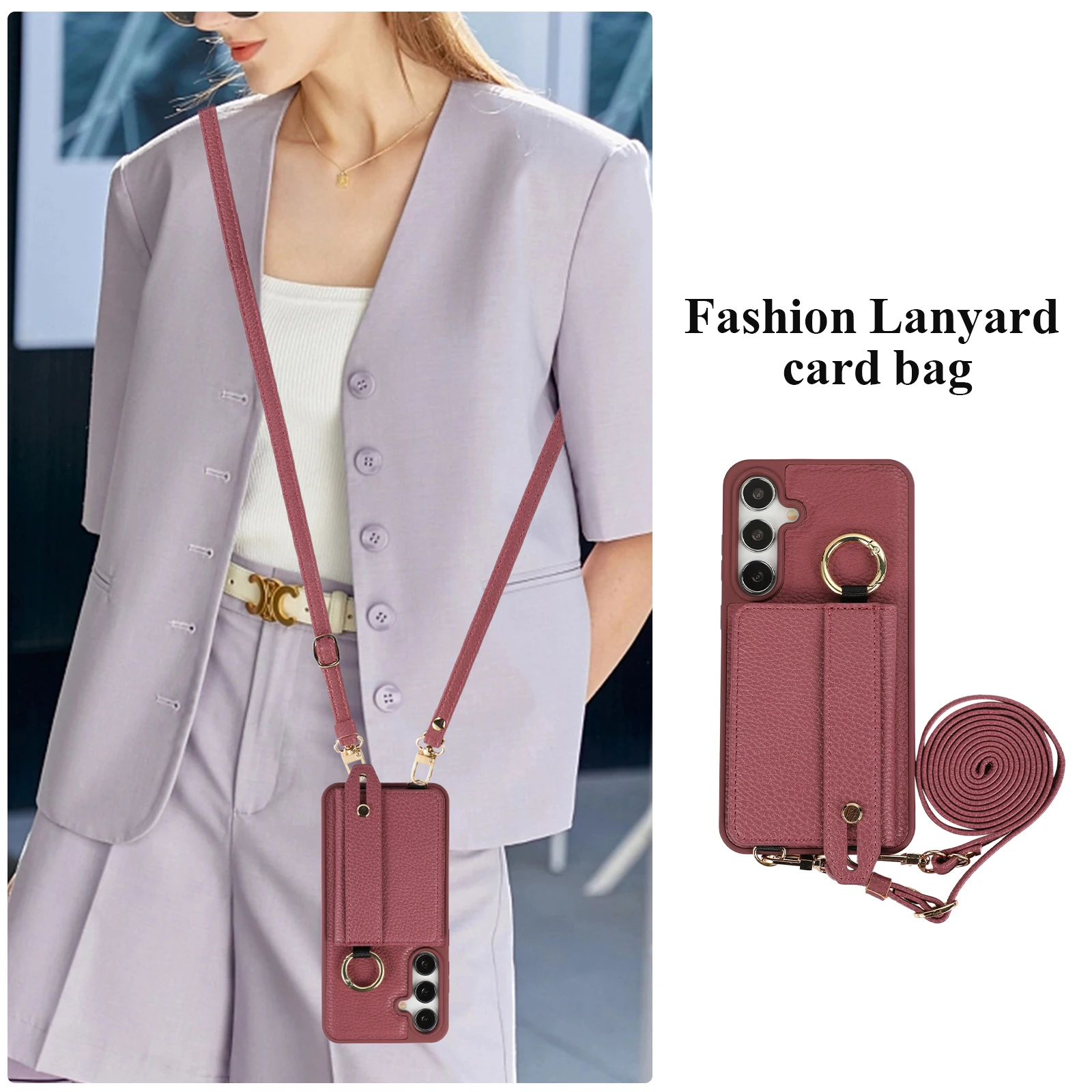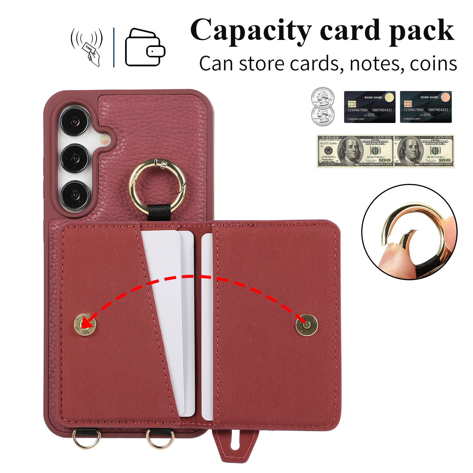 Comprar Funda de cuero para Samsung Galaxy S24 Ultra, S23 Plus, S22, soporte de anillo, funda con cordón