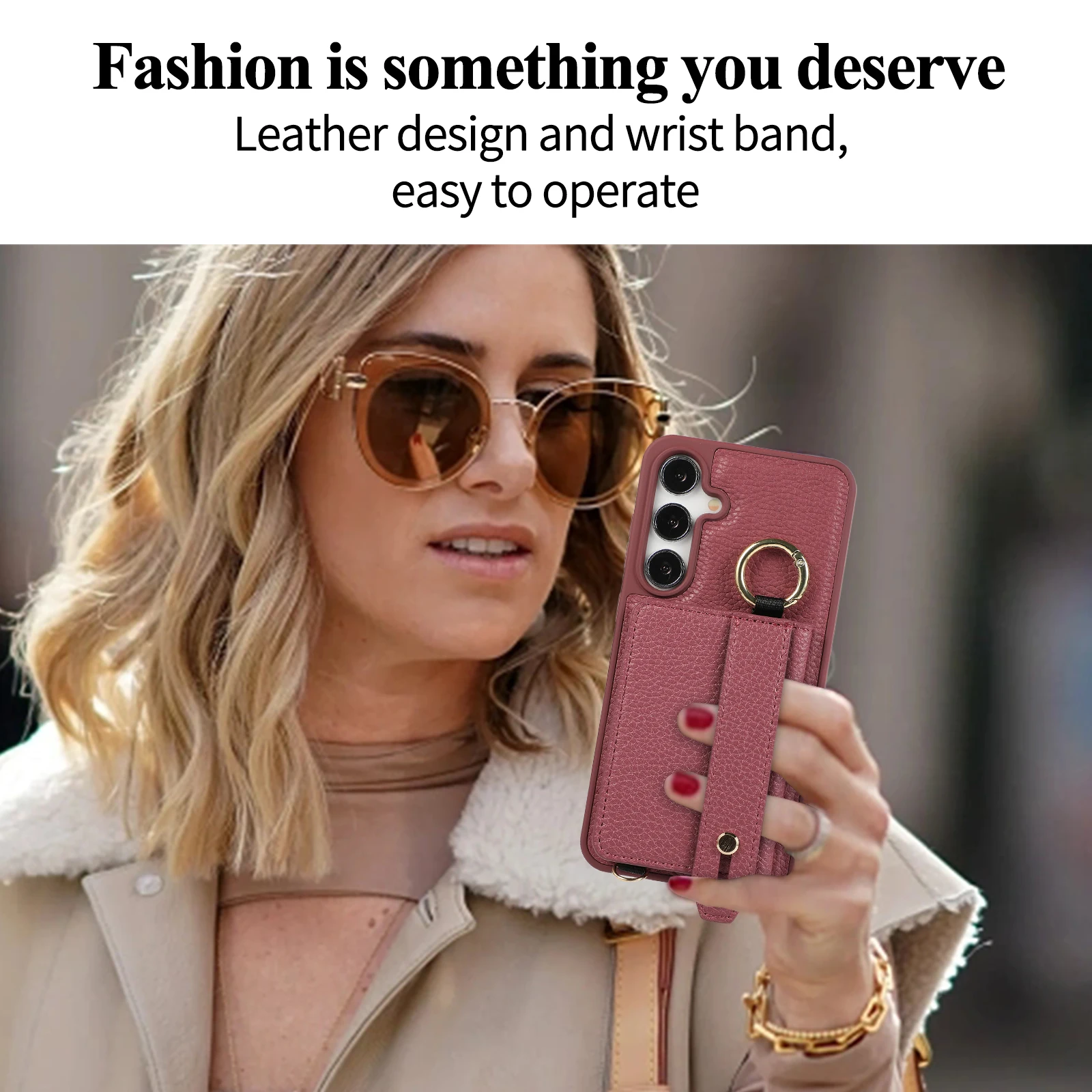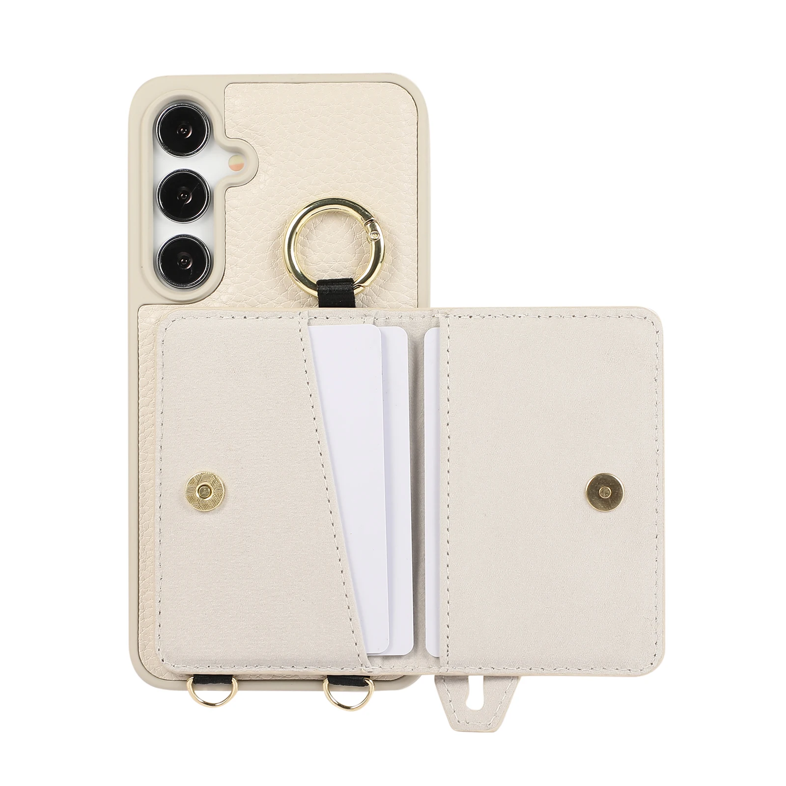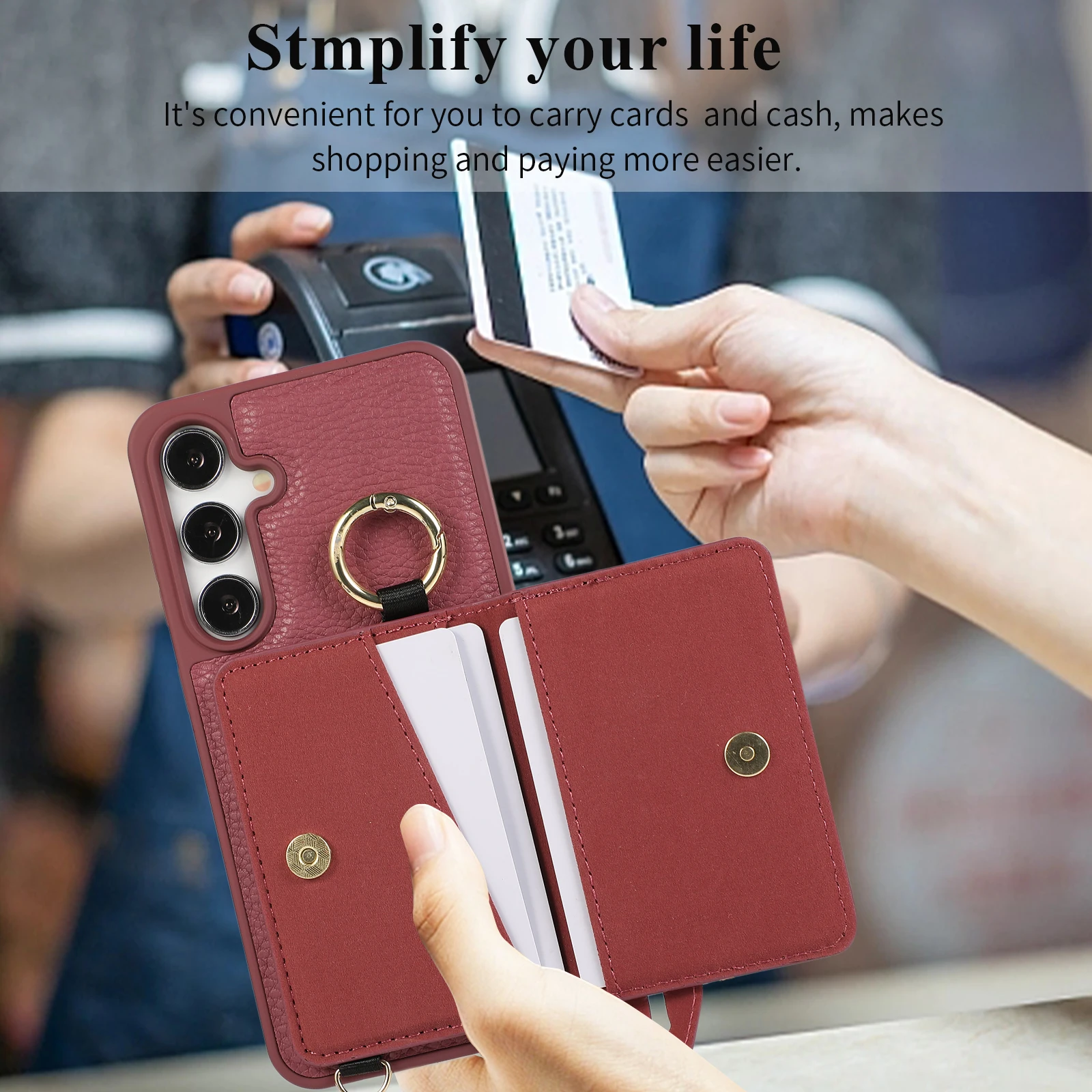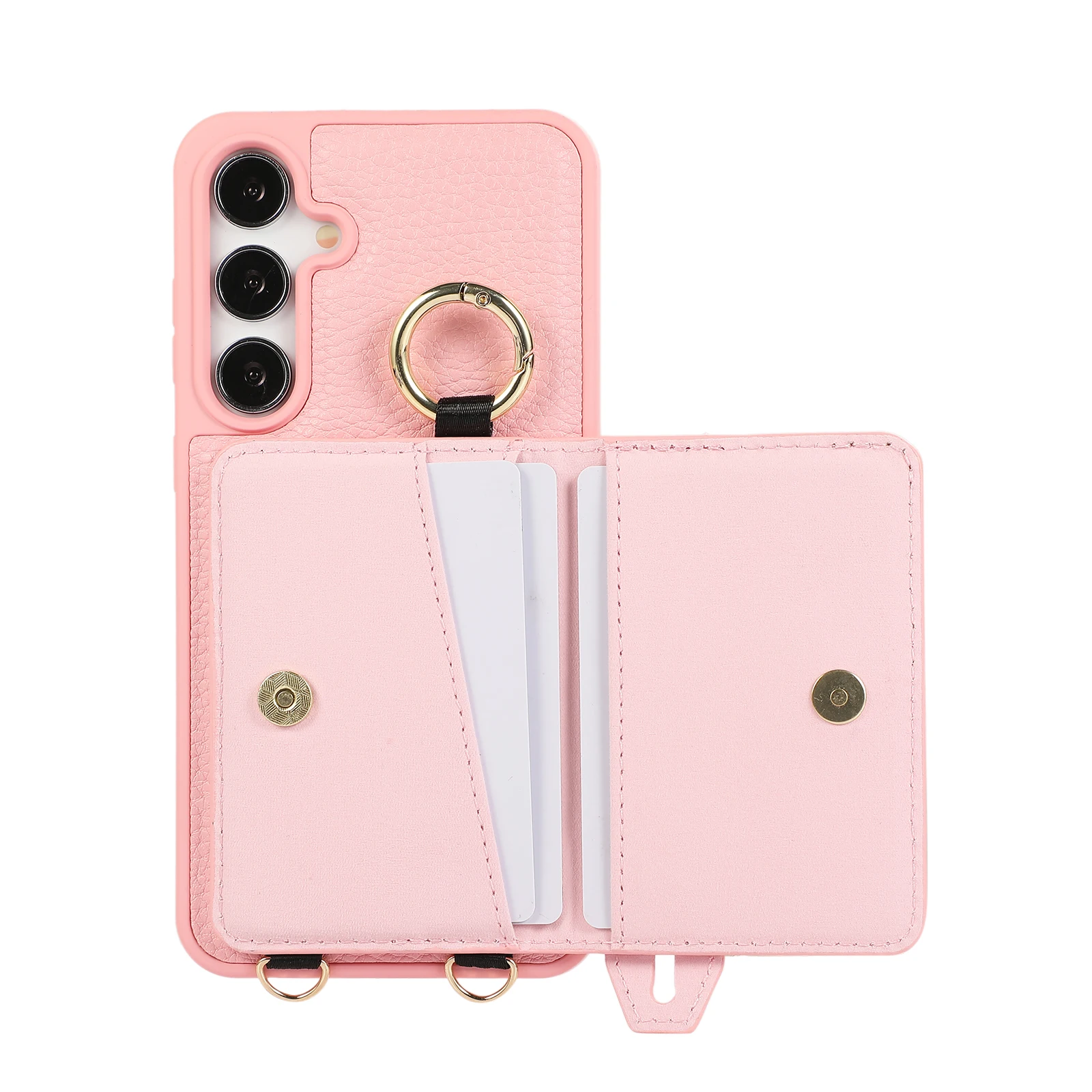Comprar Funda de cuero para Samsung Galaxy S24 Ultra, S23 Plus, S22, soporte de anillo, funda con cordón