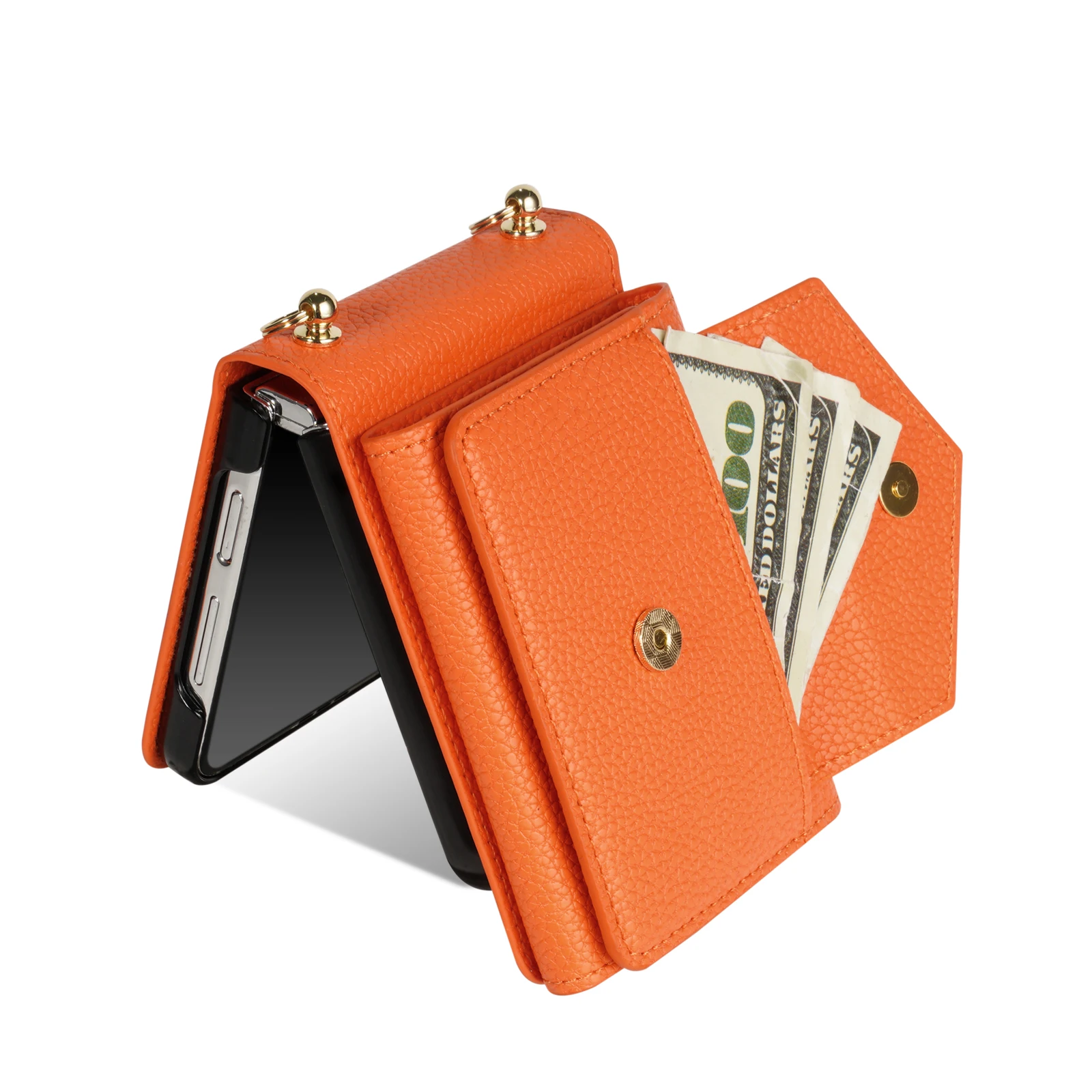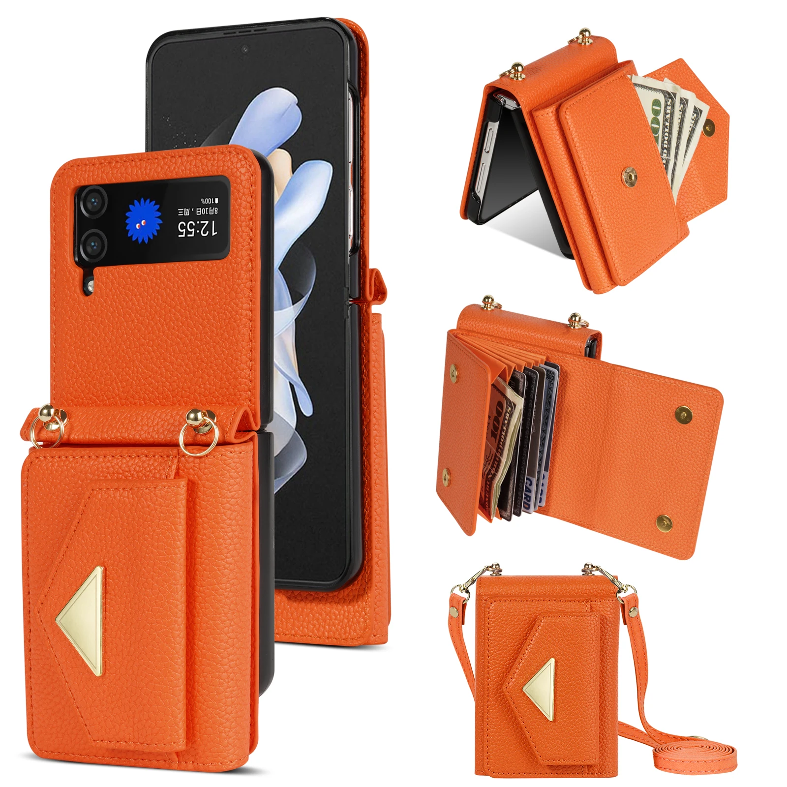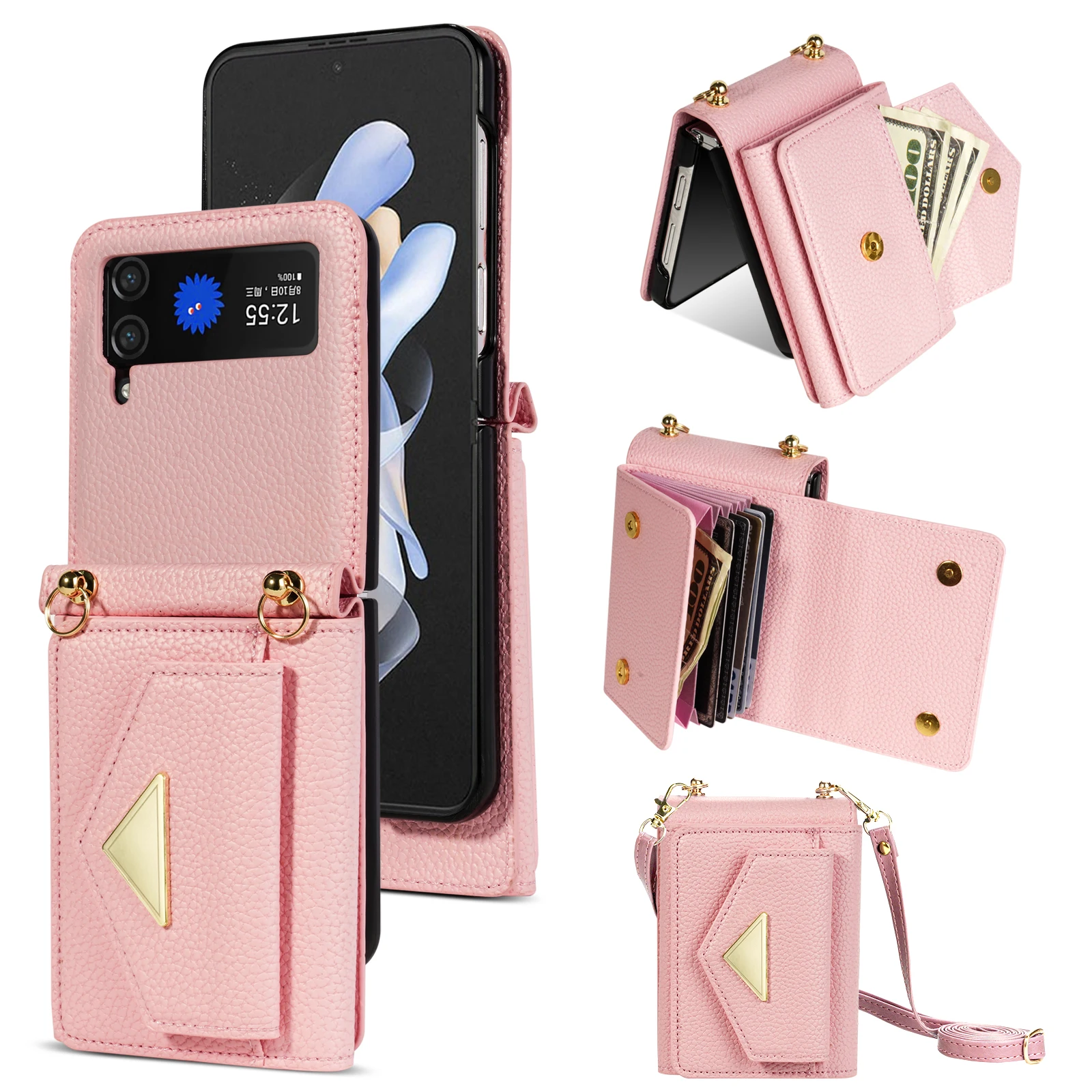 Comprar Funda de cuero para Samsung Galaxy Z Flip 5, 5G, 4, 3, Flip5, Flip4, bolso de cuerda larga, funda de bolsillo