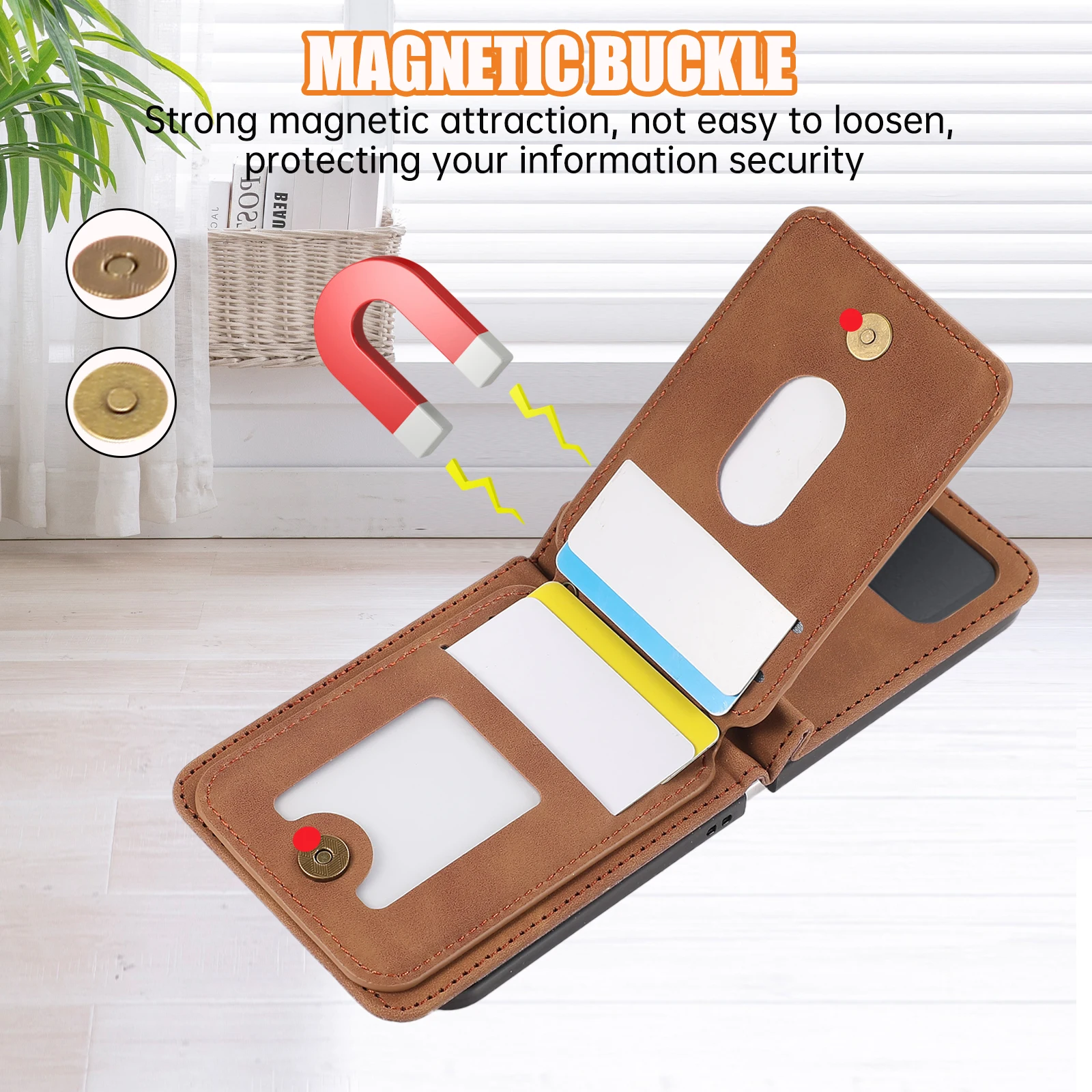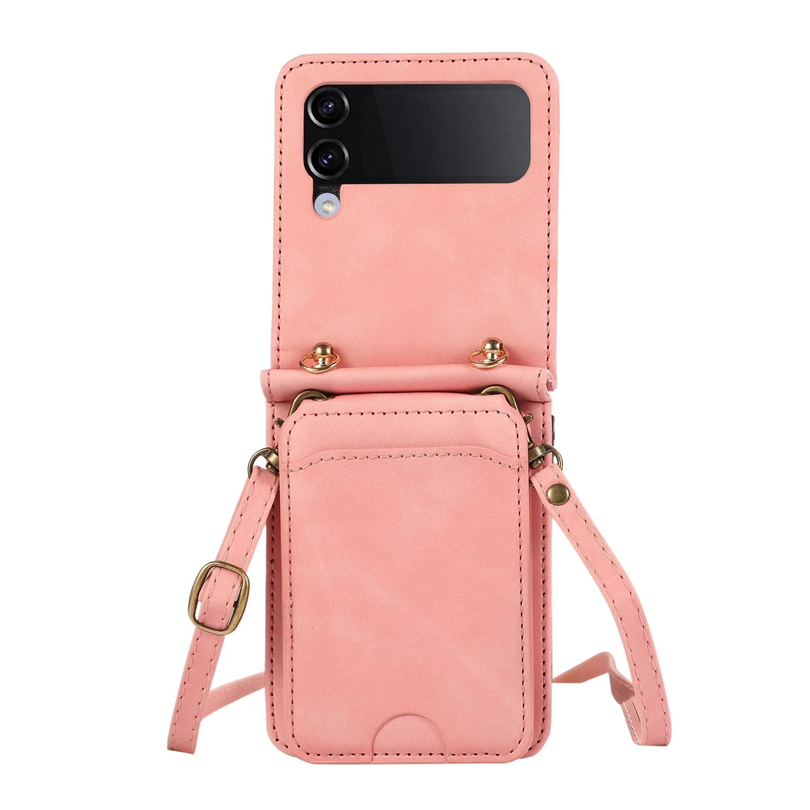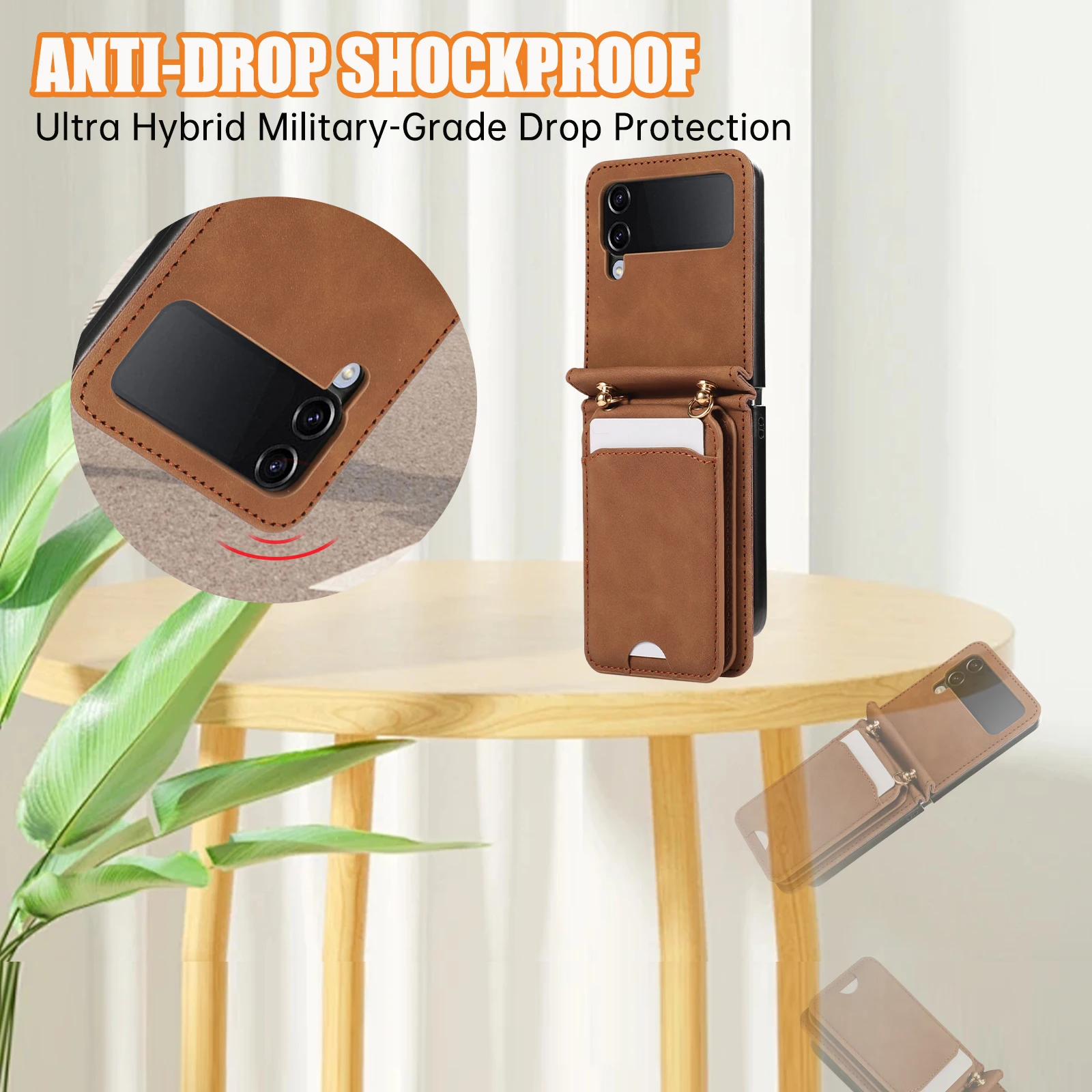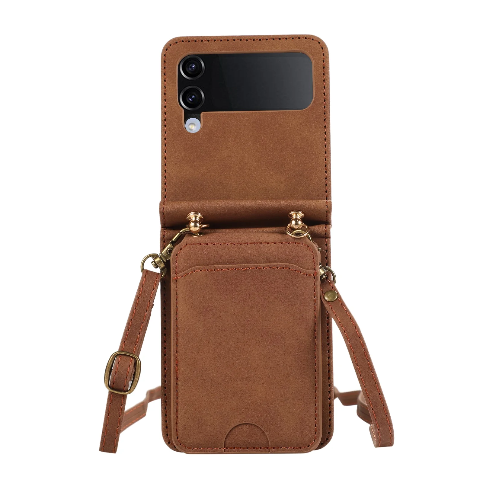 Comprar Funda de cuero para Samsung Galaxy Z Flip 6 5 4 3 5G Flip6 Flip5, funda larga con cordón para tarjetas verticales