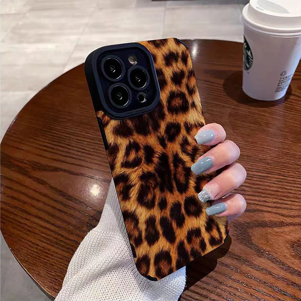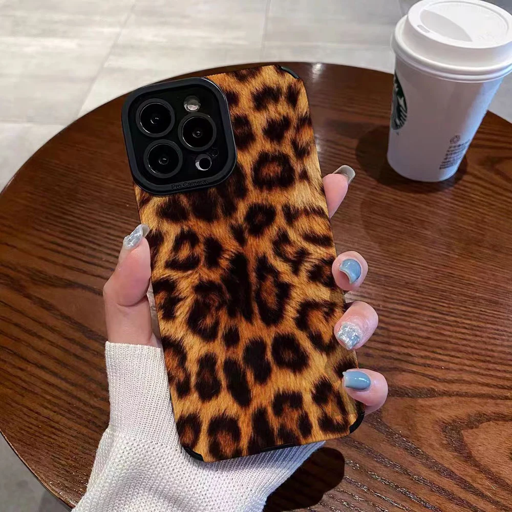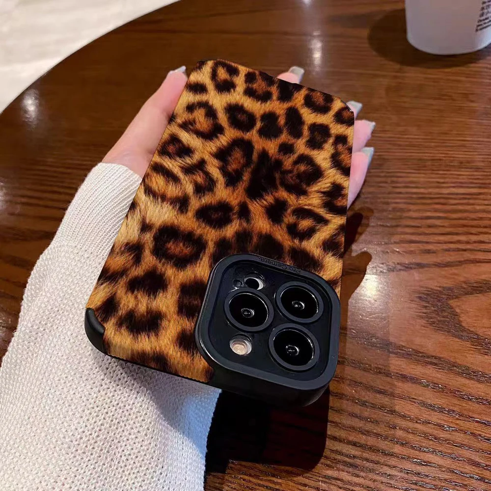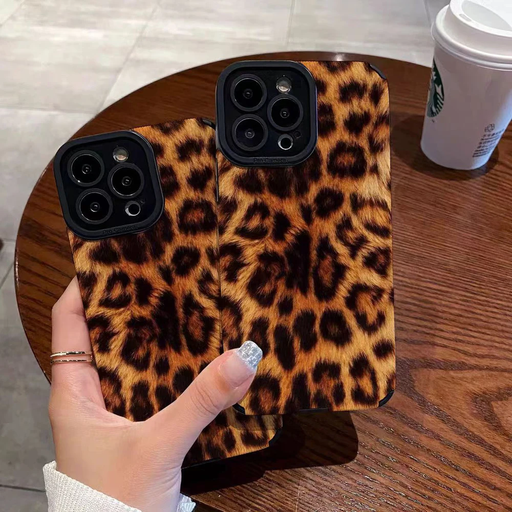 Funda de cuero de silicona para iPhone, carcasa a prueba de golpes, leopardo marrón brillante, a la moda, para iPhone 15 Pro Max 14 Plus 11 12 13 Mini X XS XR SE 7 8