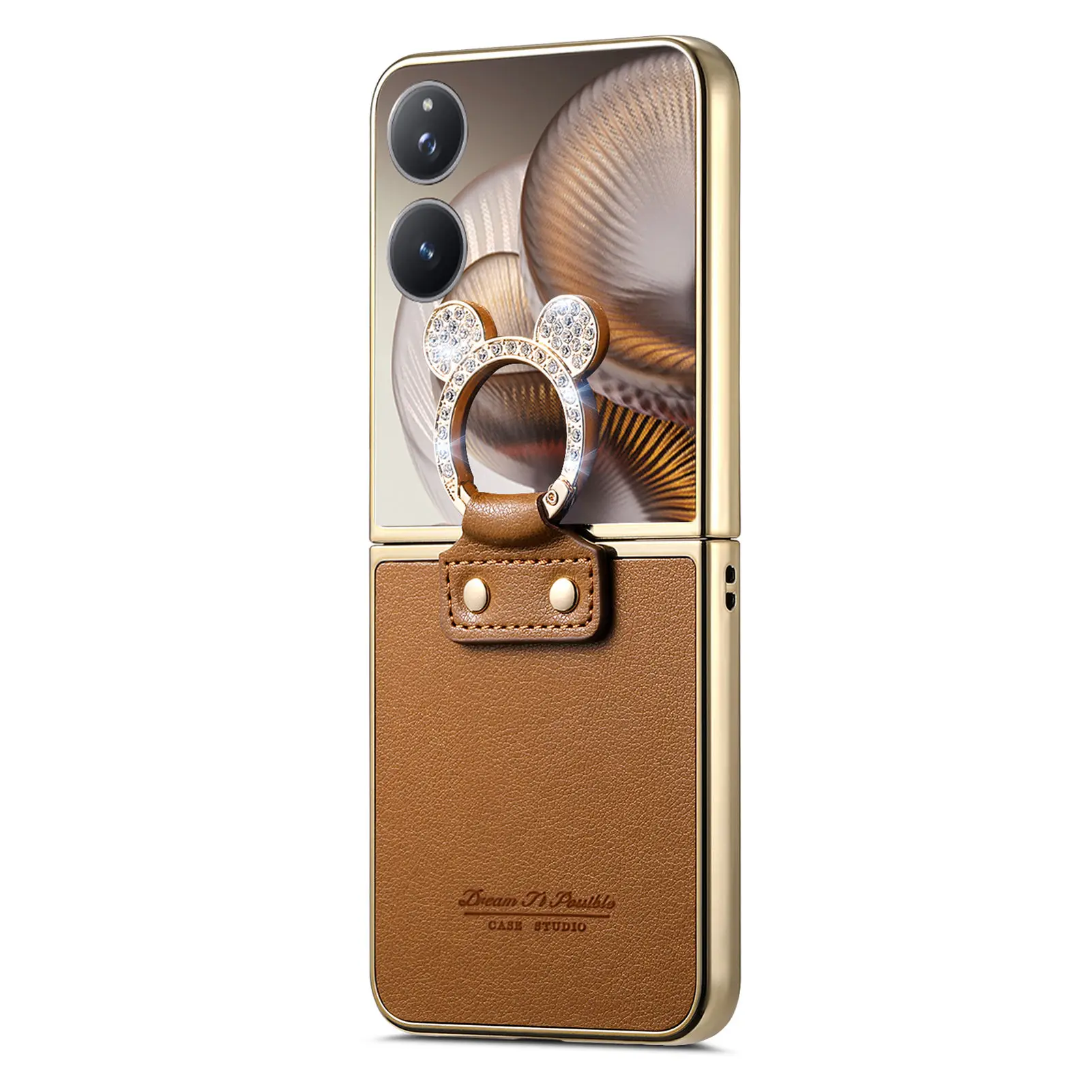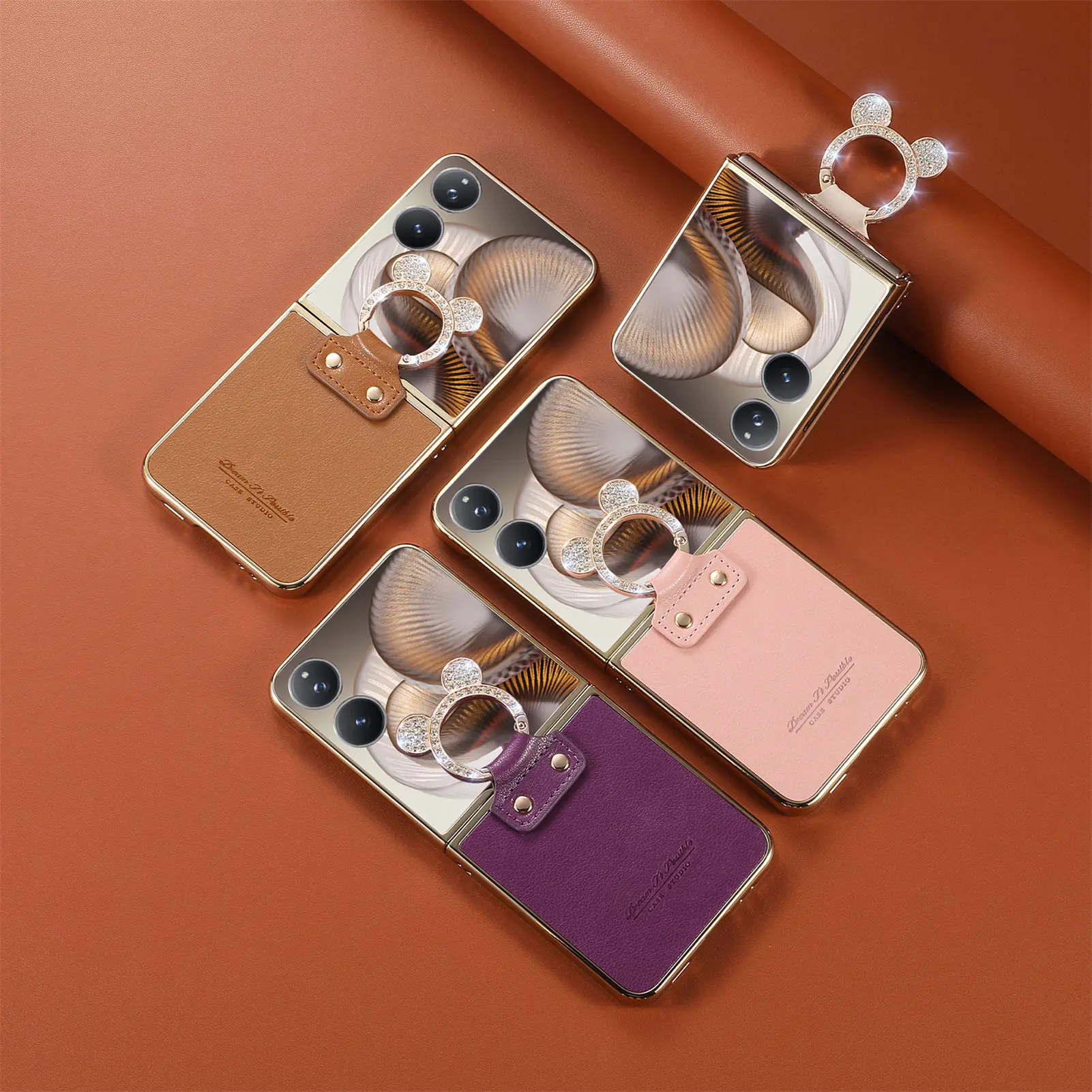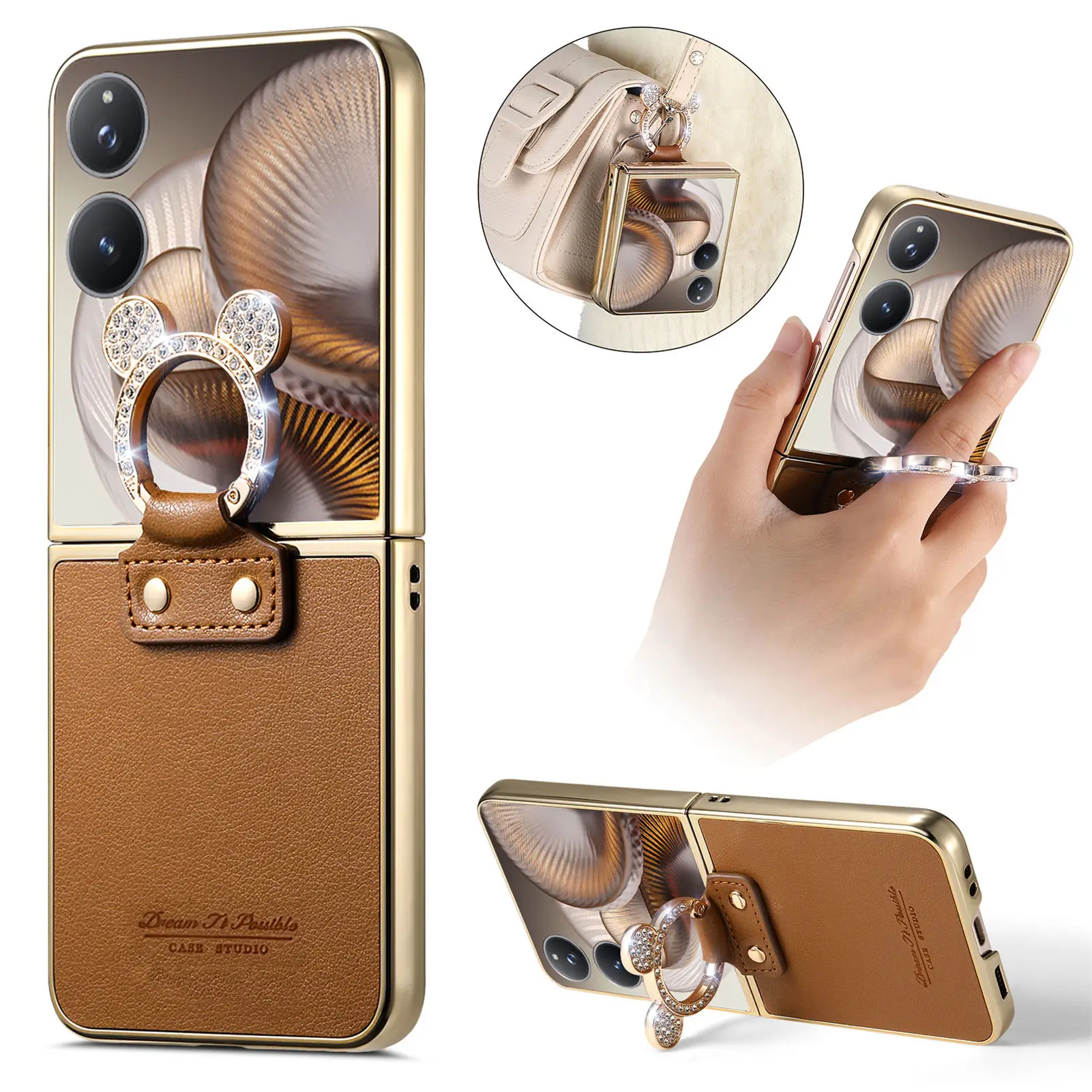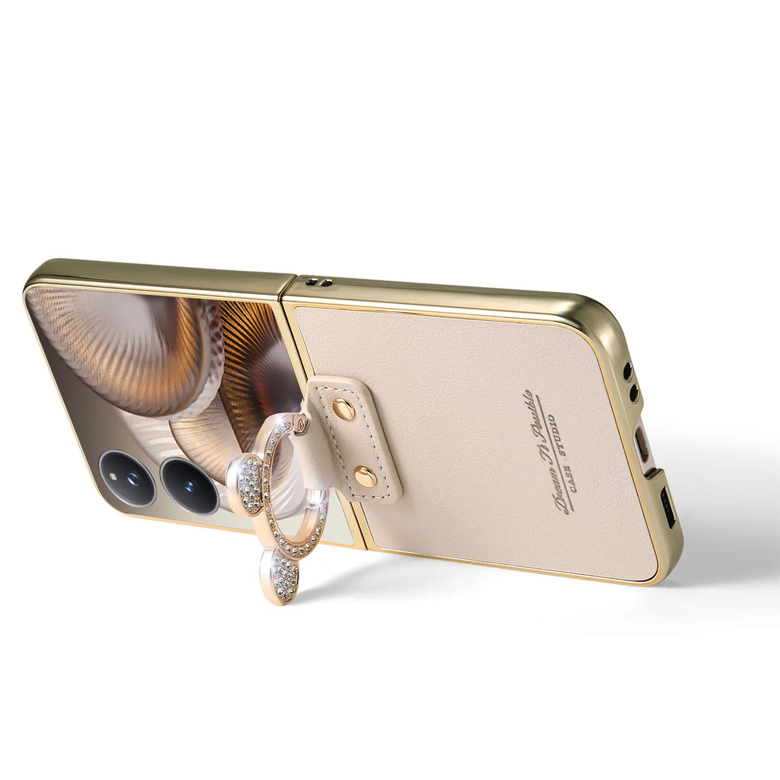 Comprar Funda de cuero con soporte de anillo de diamante de lujo para Xiaomi Mix Flip 2, a prueba de golpes, delgada, bonita, anticaída