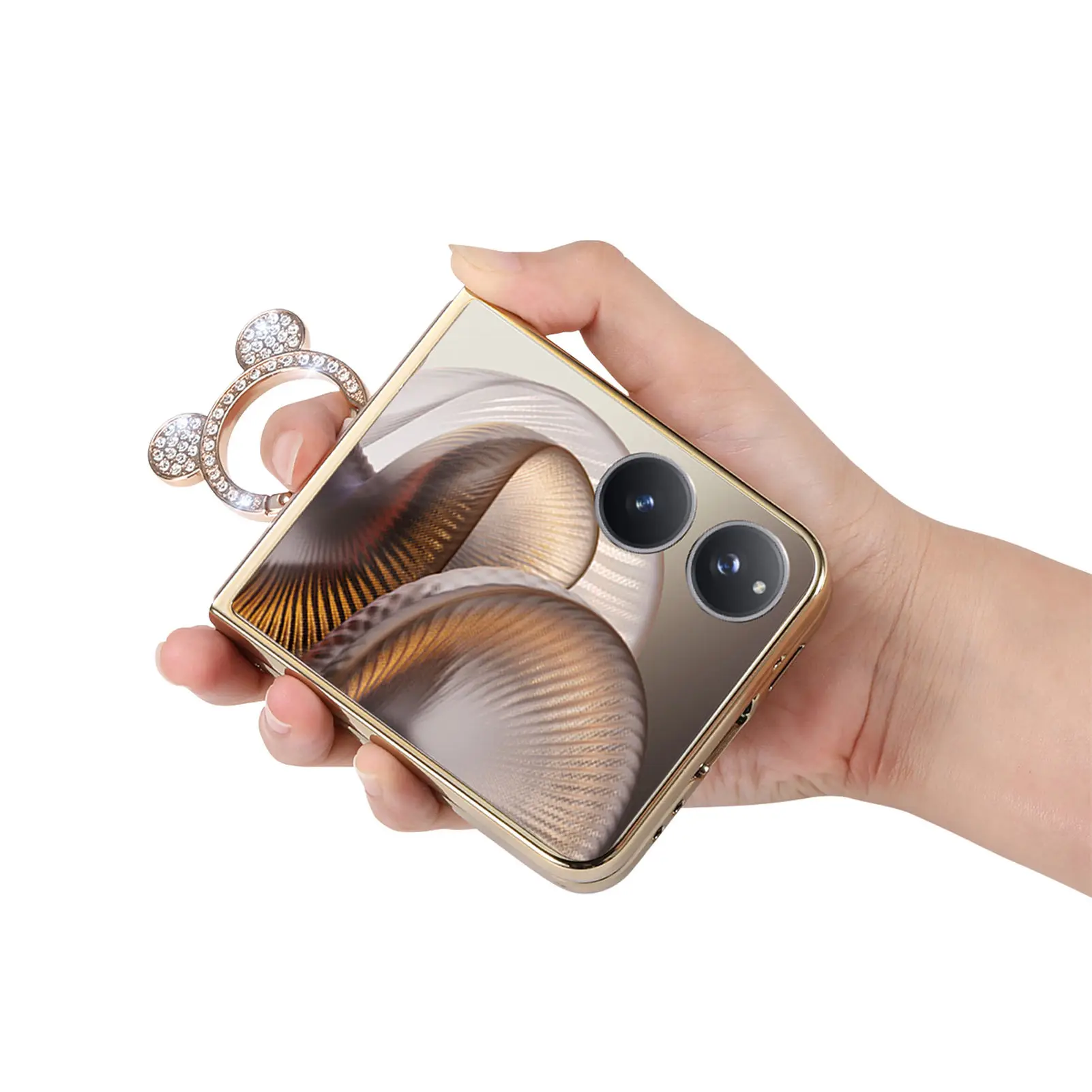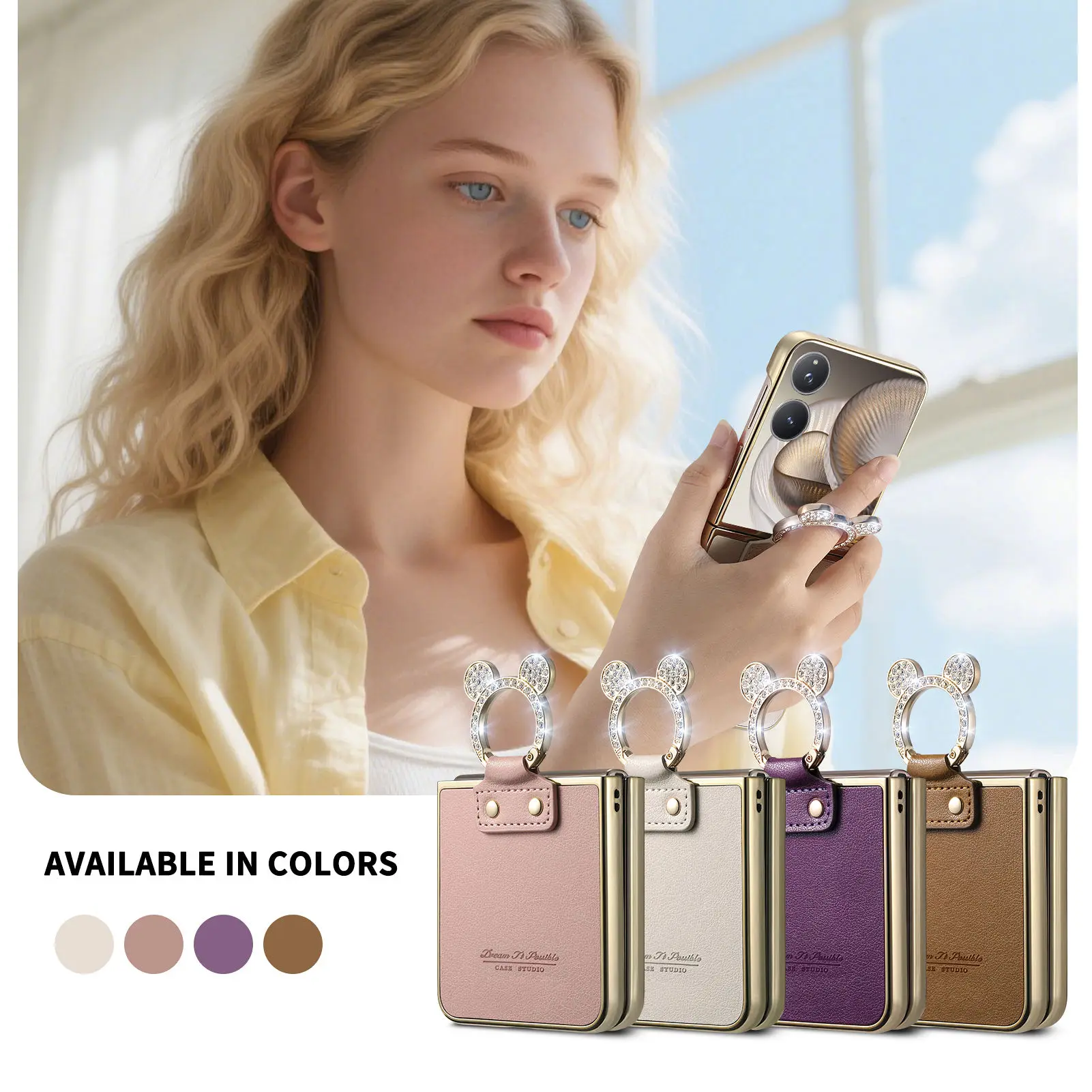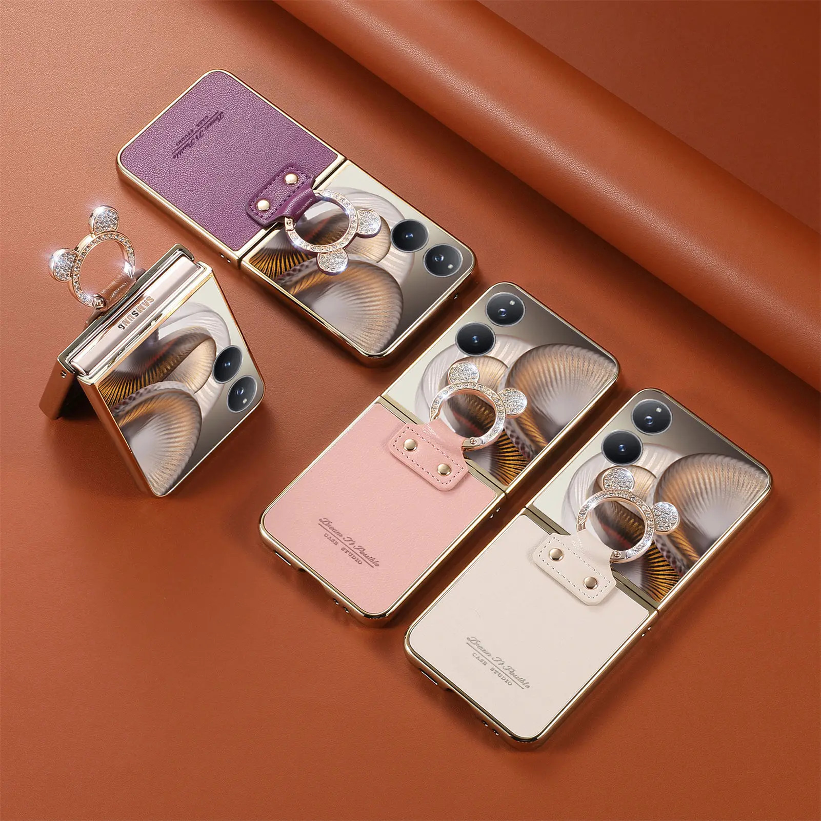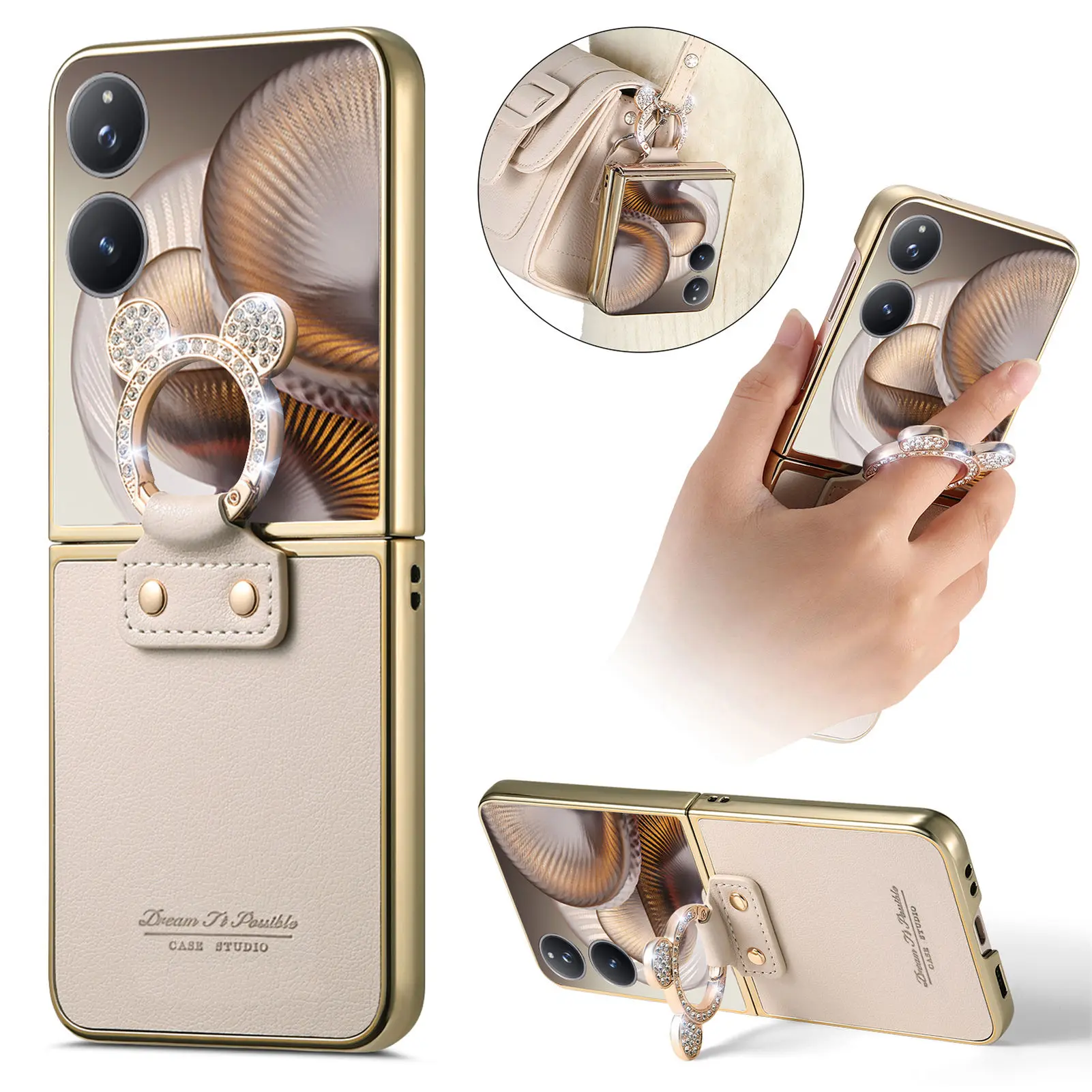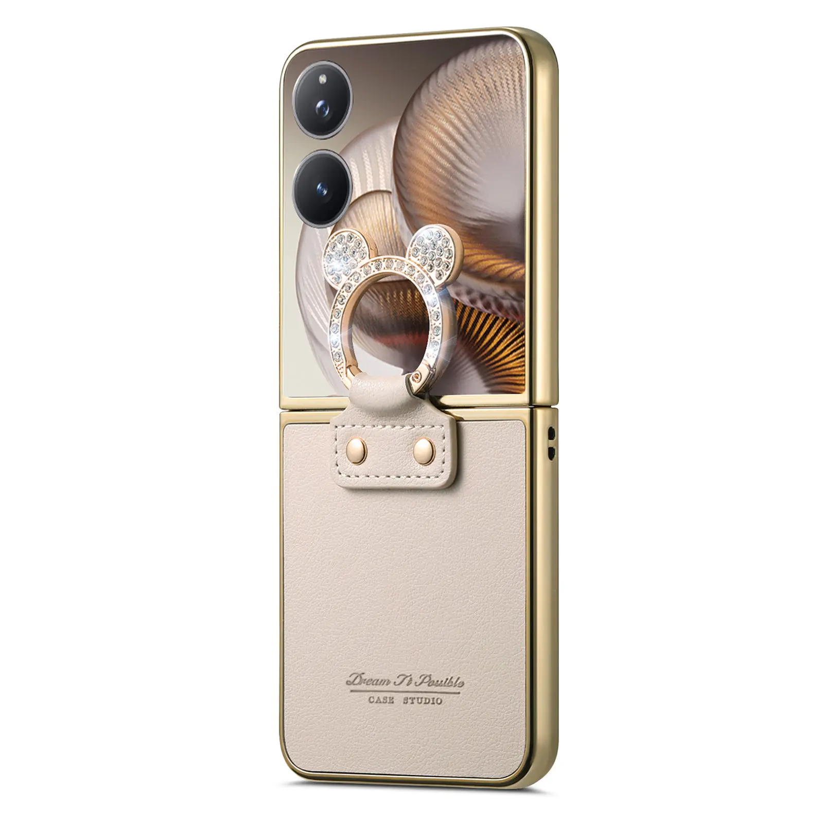 Comprar Funda de cuero con soporte de anillo de diamante de lujo para Xiaomi Mix Flip 2, a prueba de golpes, delgada, bonita, anticaída