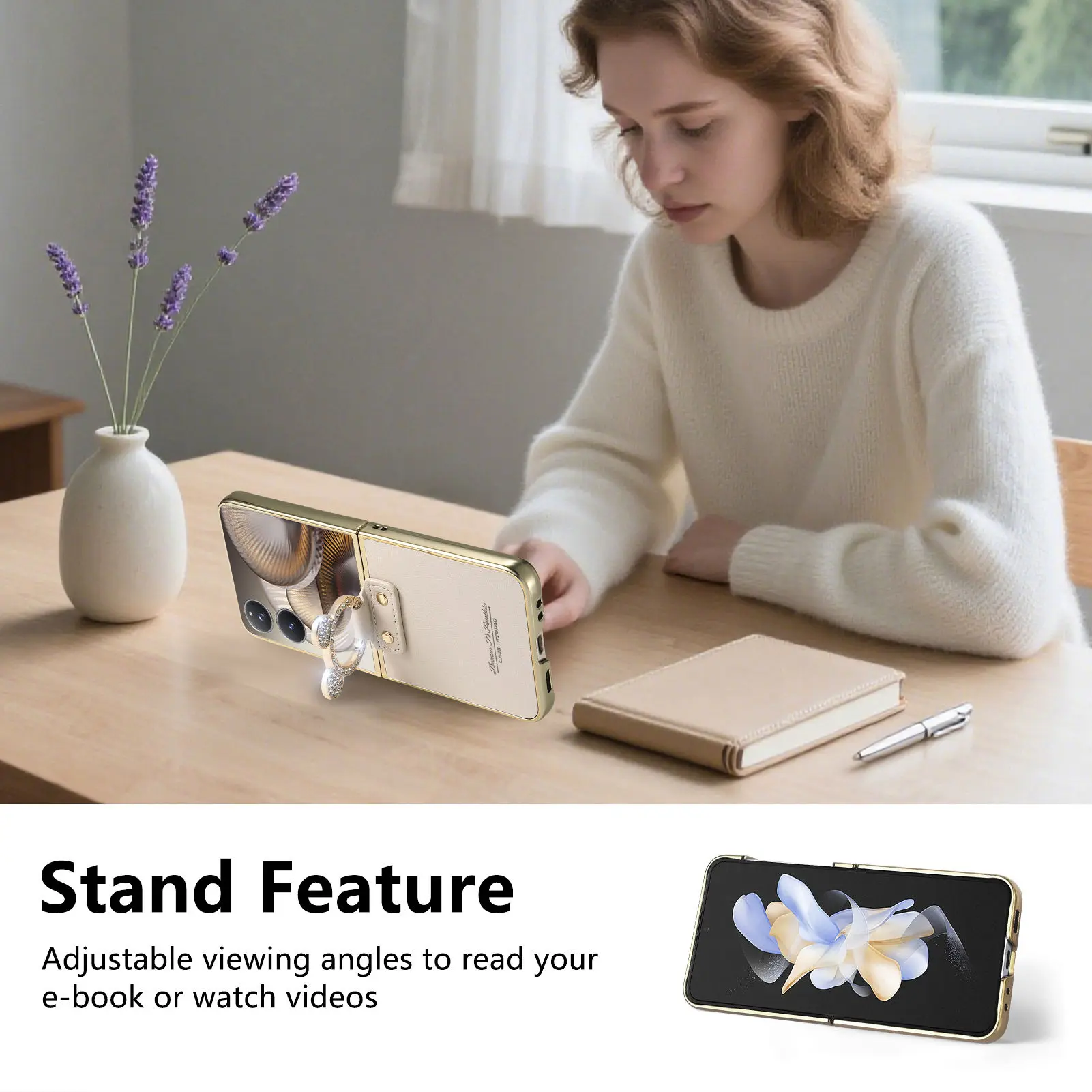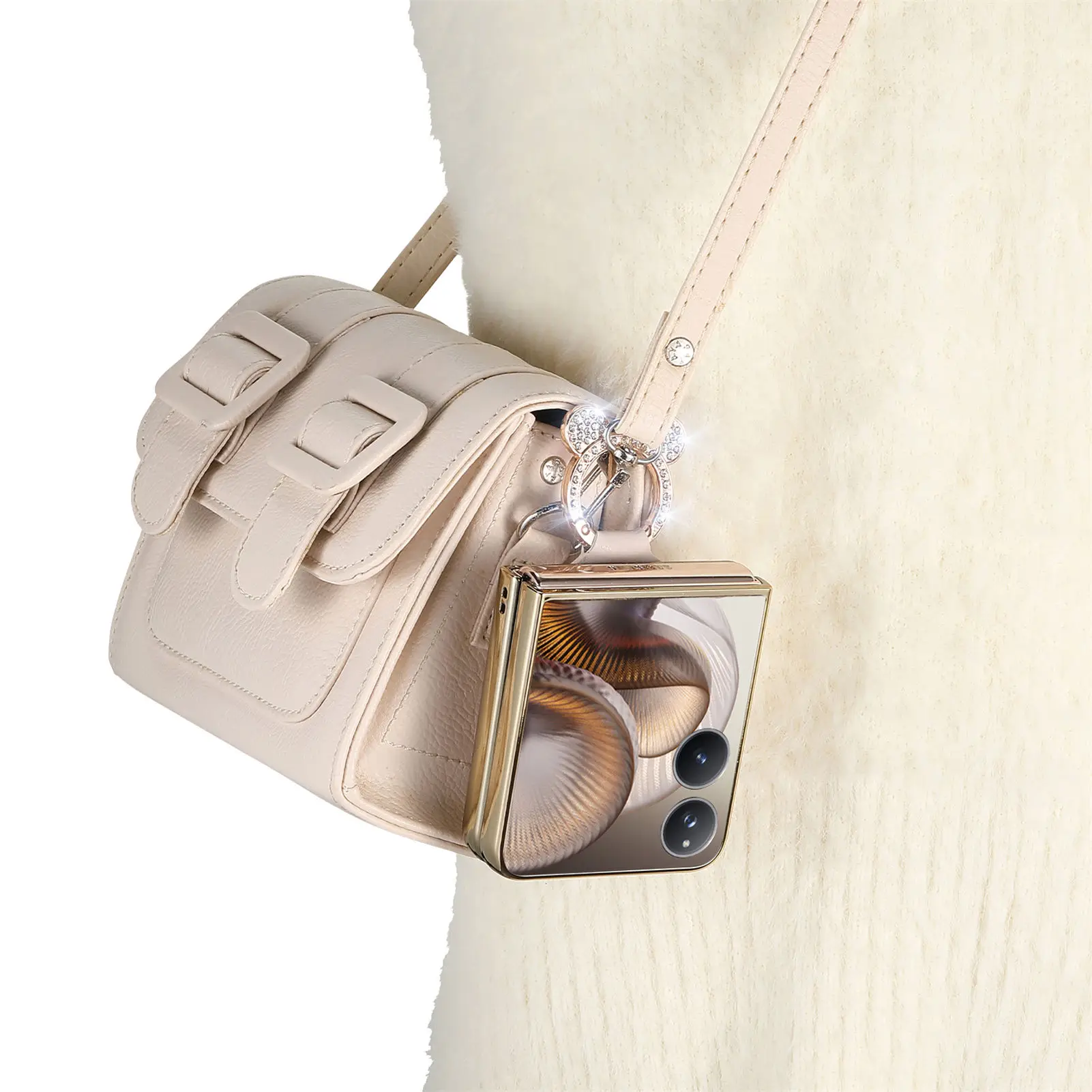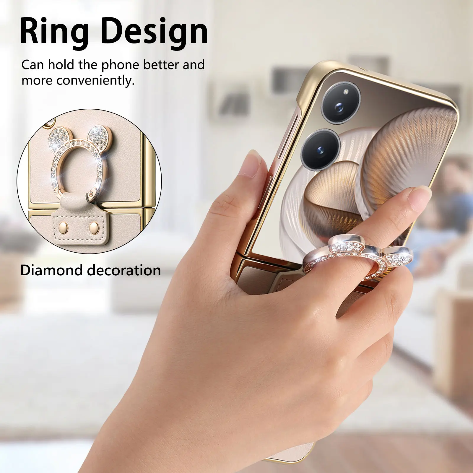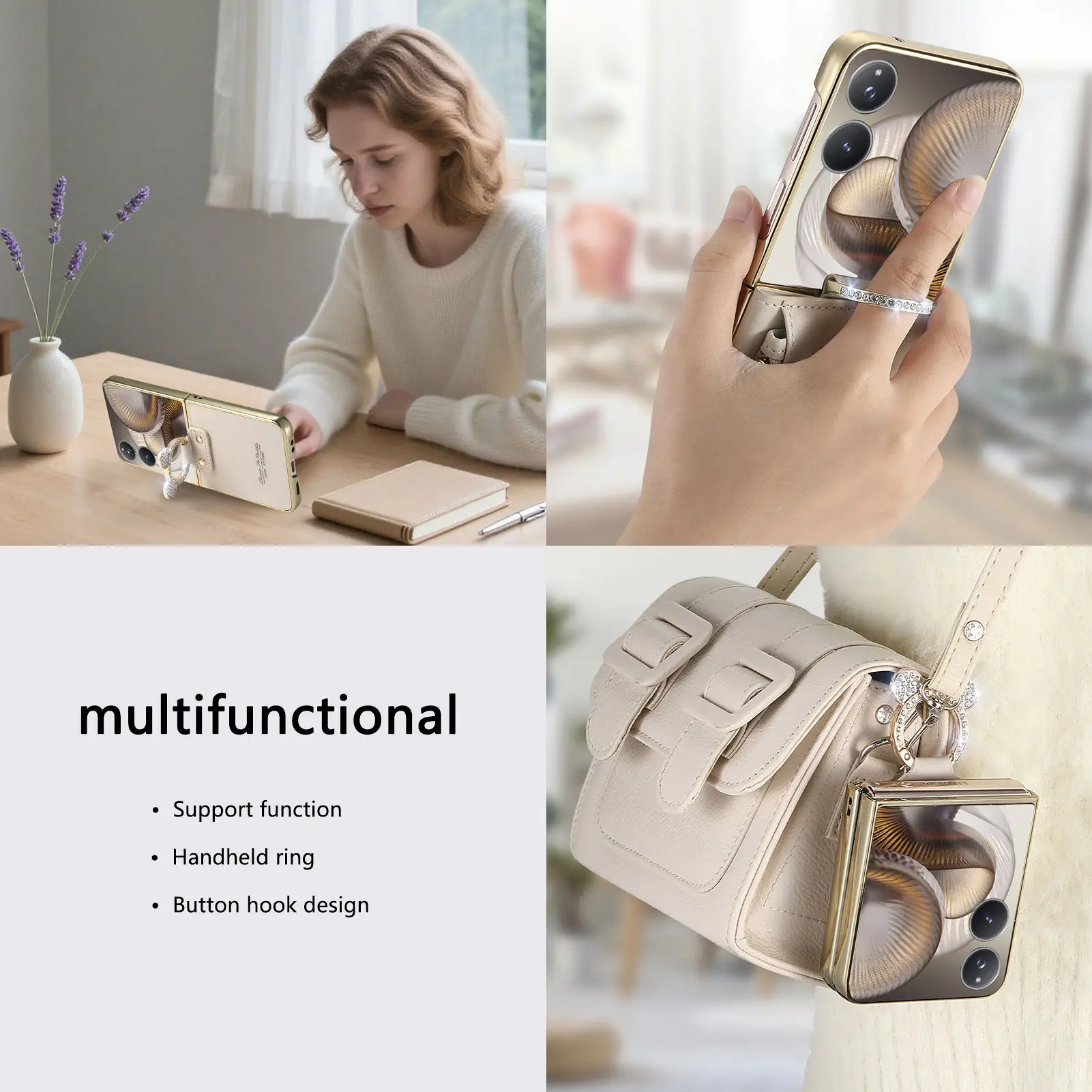 Comprar Funda de cuero con soporte de anillo de diamante de lujo para Xiaomi Mix Flip 2, a prueba de golpes, delgada, bonita, anticaída