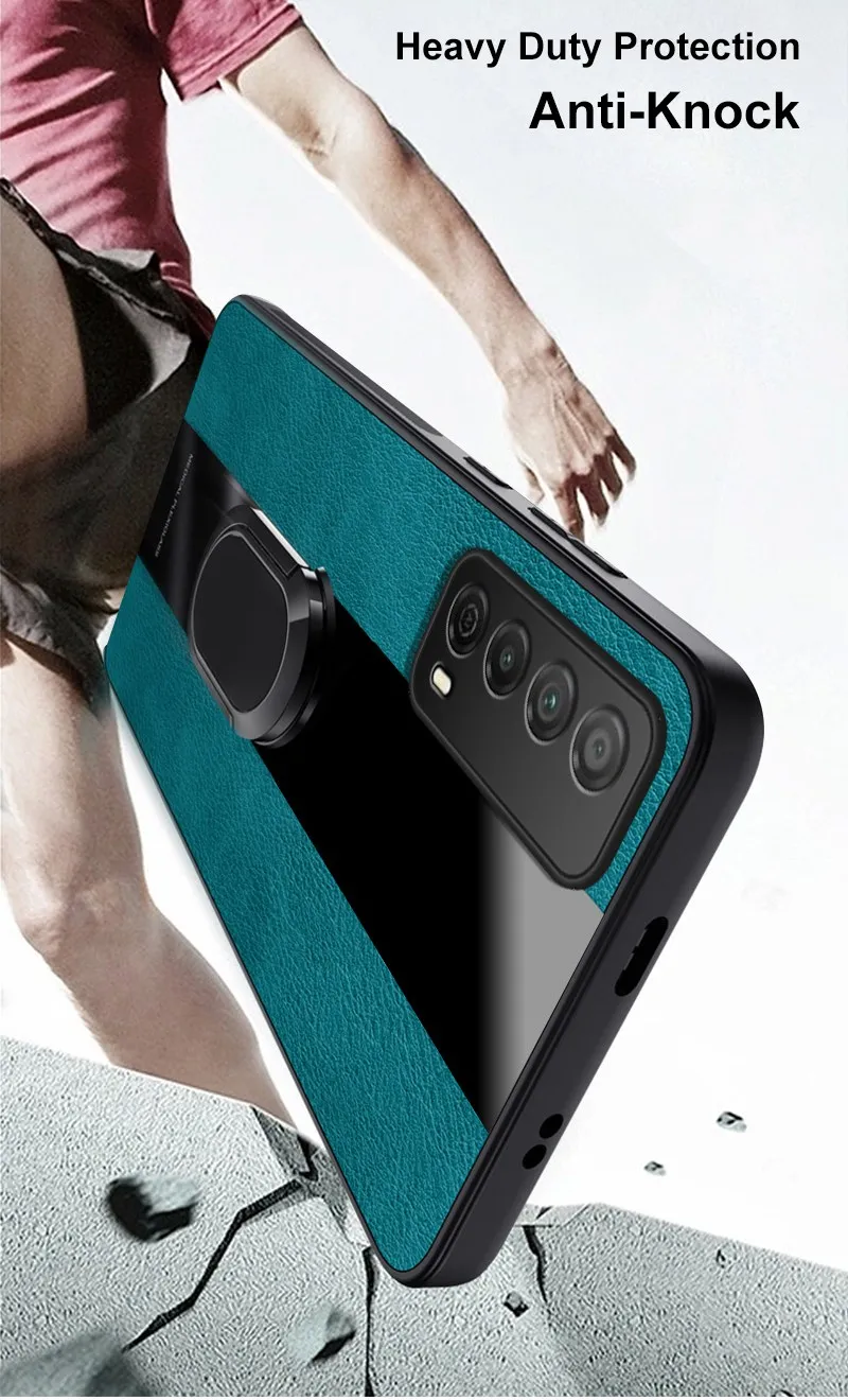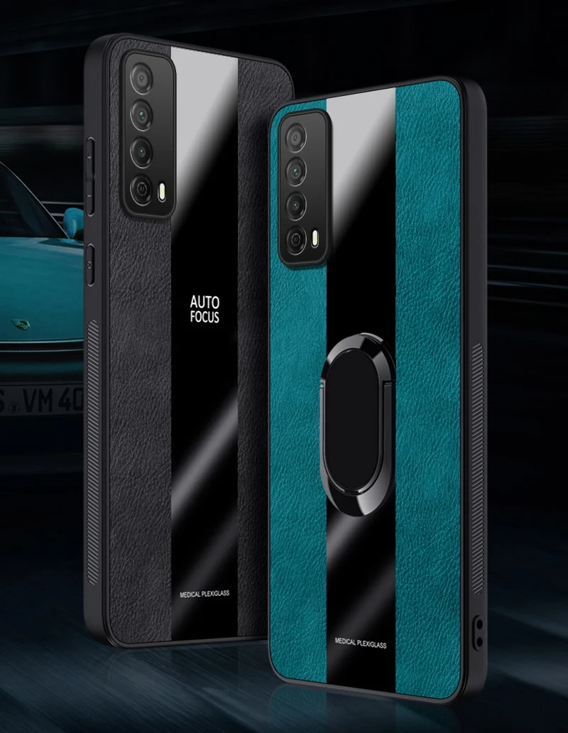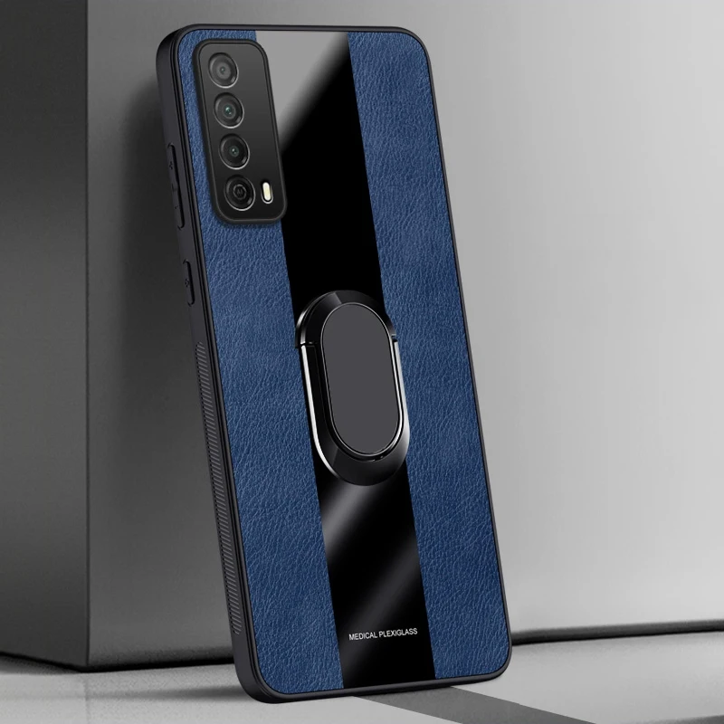 Funda de cuero con soporte de anillo paraHuawei Y7A P Inteligente 2021Funda trasera de lujo magnética a prueba de golpes funda de teléfono de protección de silicona Coque