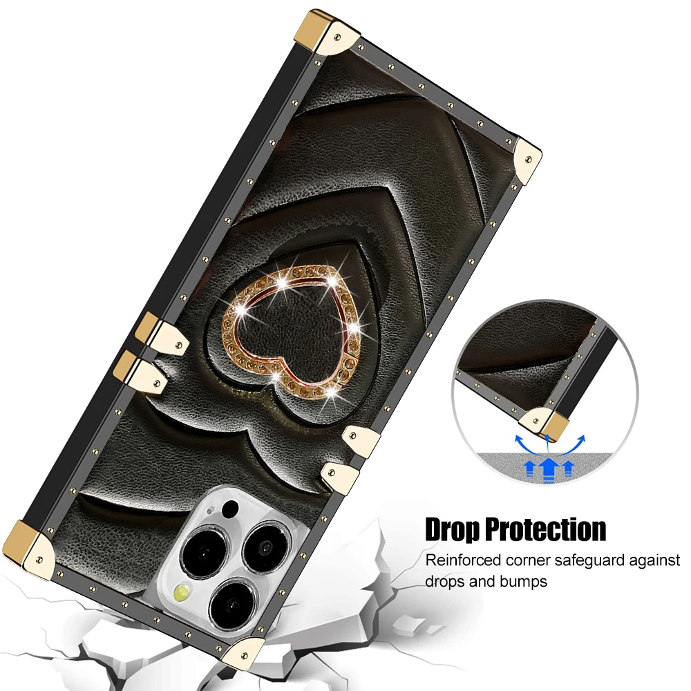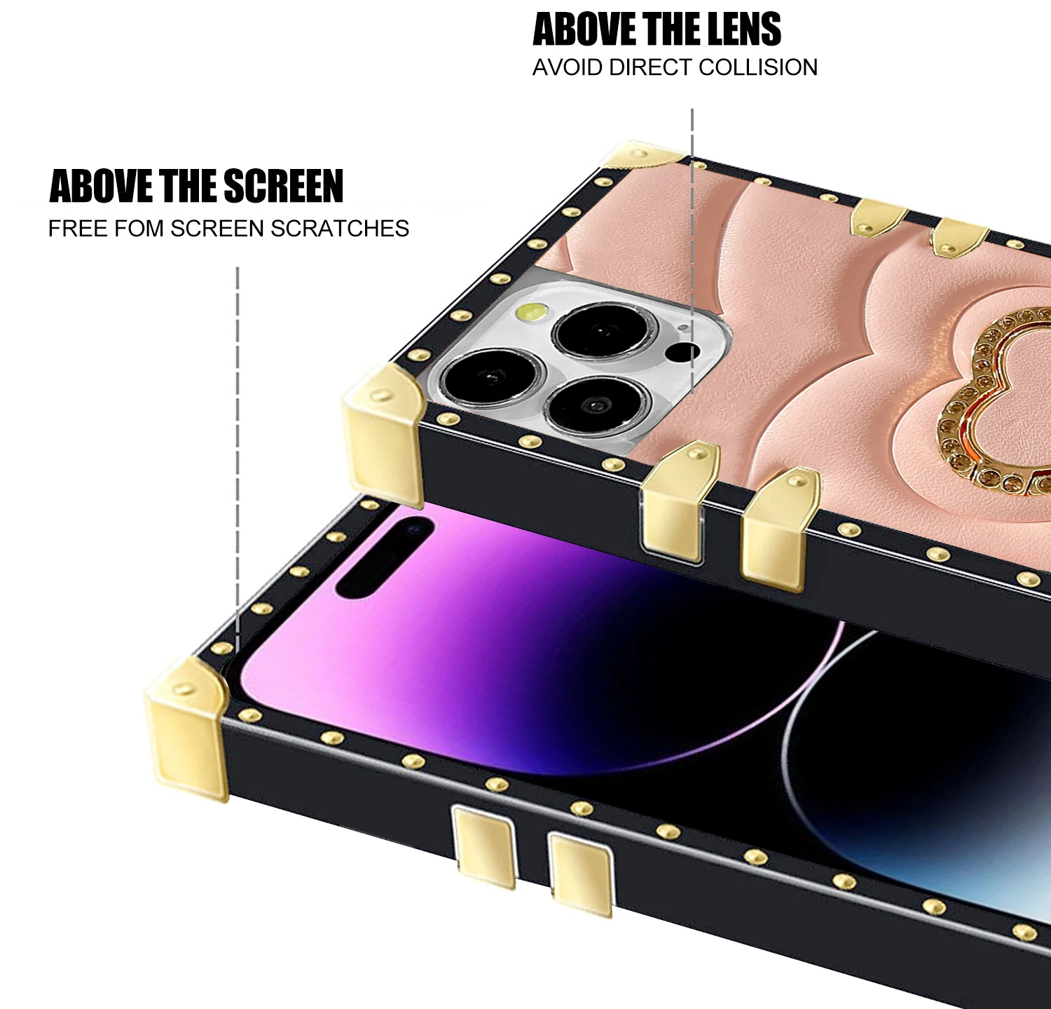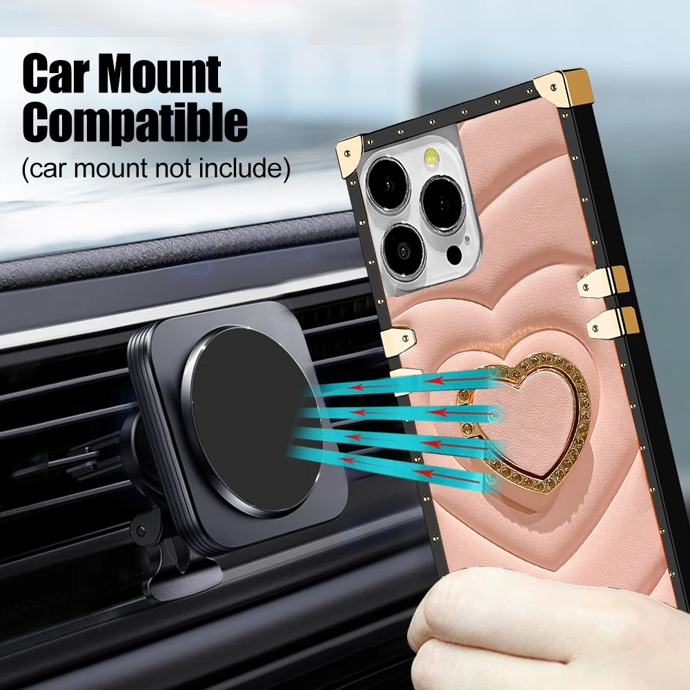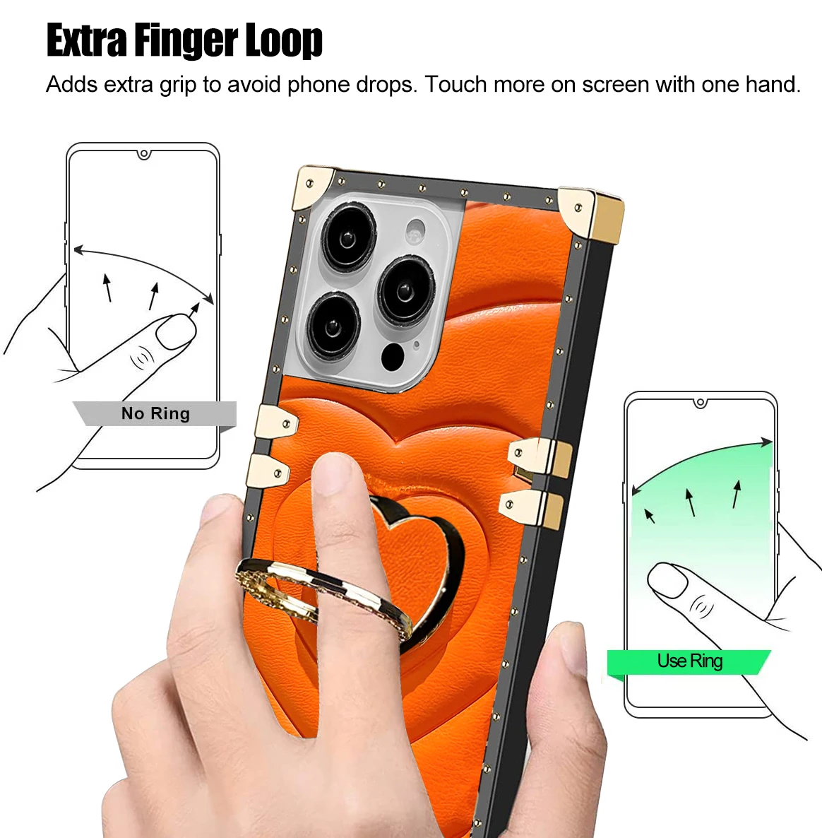 Soporte de anillo Love Heart Kickstand Funda de cuero para Iphone 14 Pro Max 13 12 11 XSMAX Soporte Magnético Finger Loop Anti-drop Cover