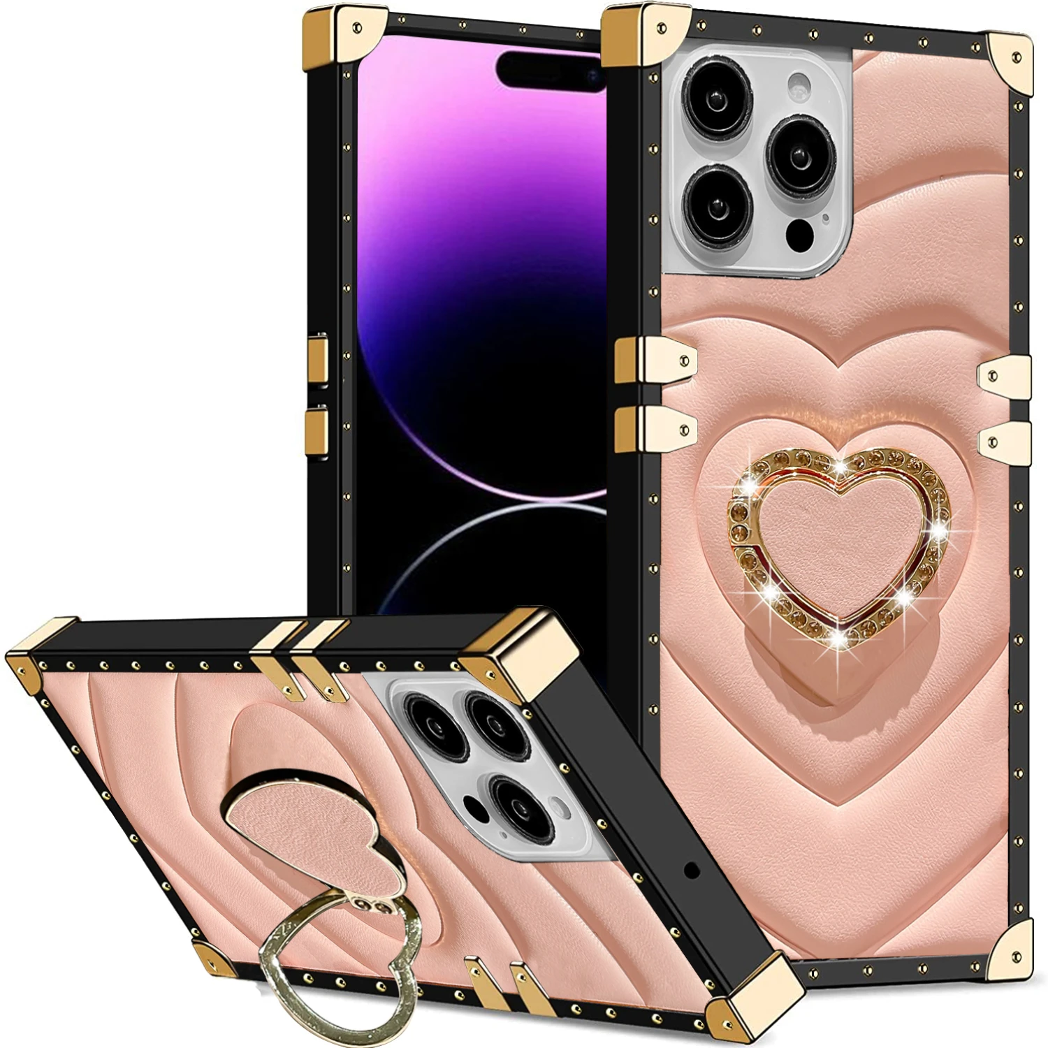 Soporte de anillo Love Heart Kickstand Funda de cuero para Iphone 14 Pro Max 13 12 11 XSMAX Soporte Magnético Finger Loop Anti-drop Cover