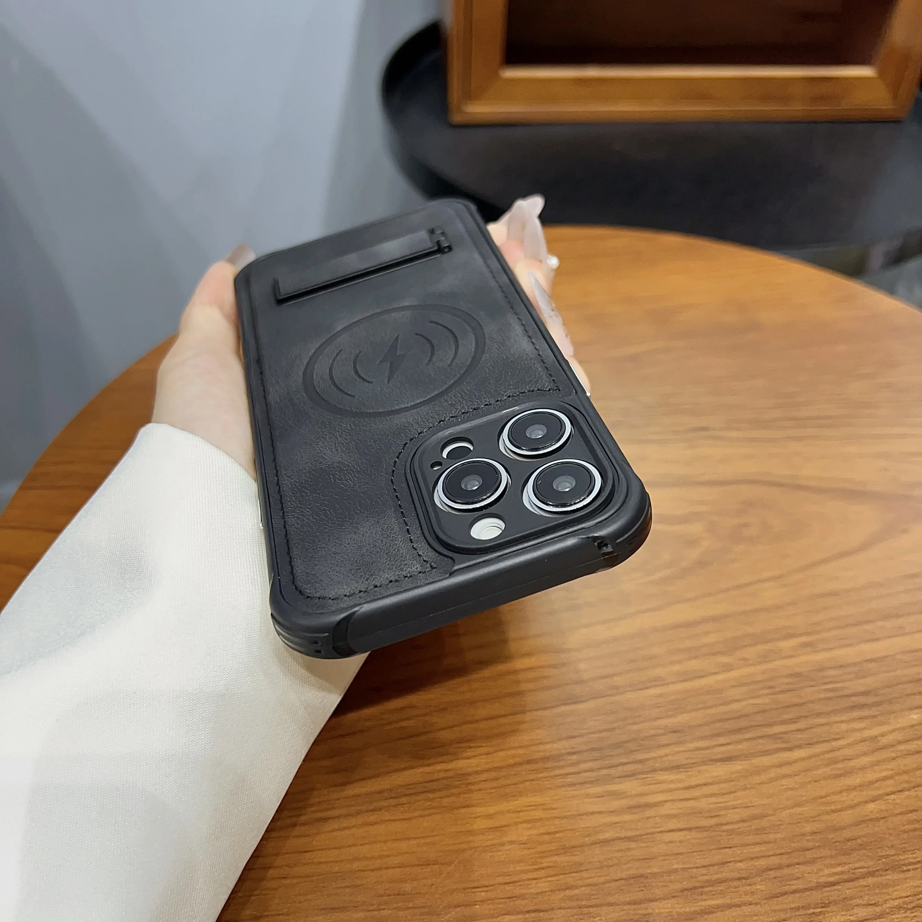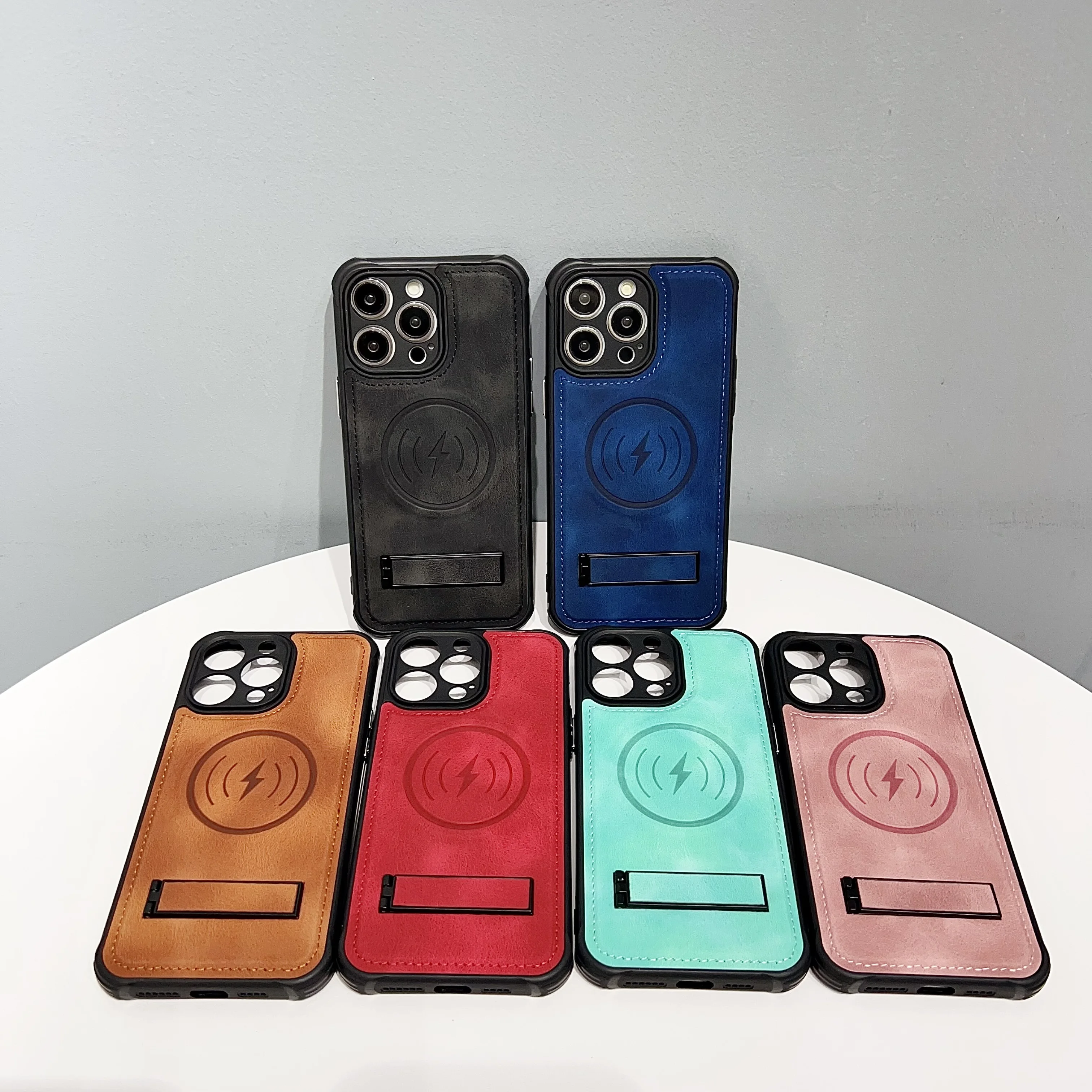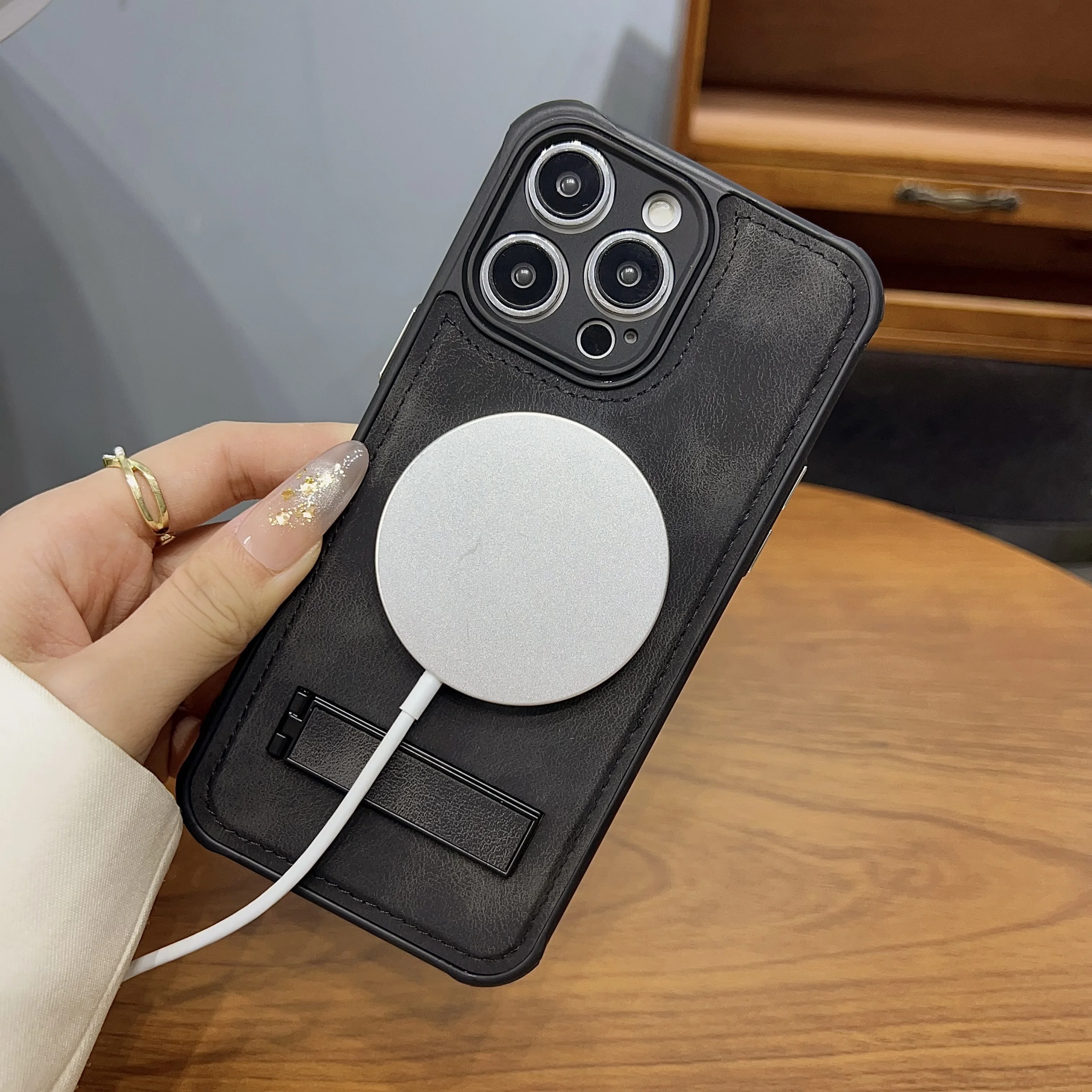 Comprar Funda de cuero con soporte Invisible para iPhone, funda magnética de cuero con carga inalámbrica para iPhone 15 Pro Max 14 Plus 13 12 11