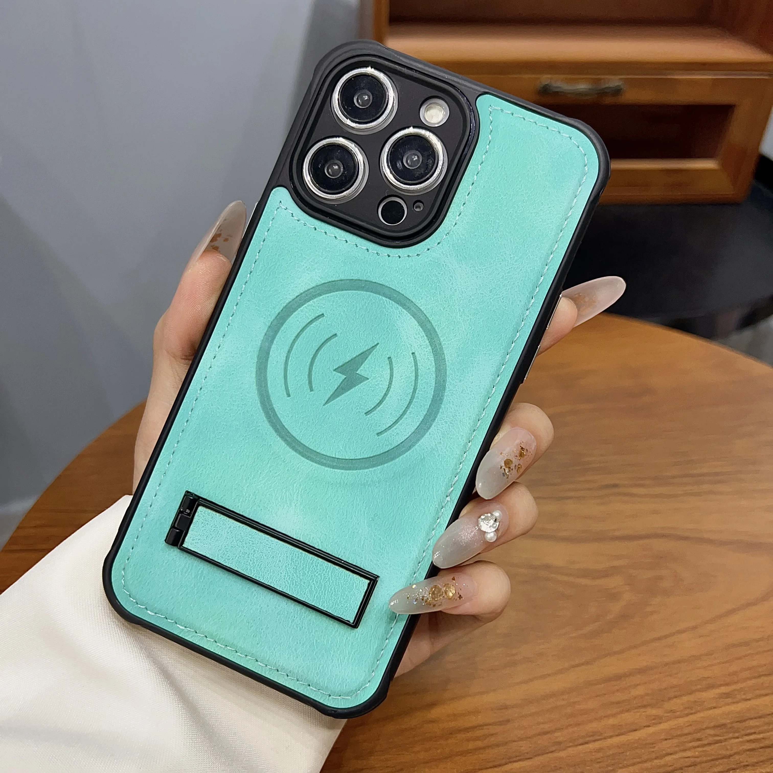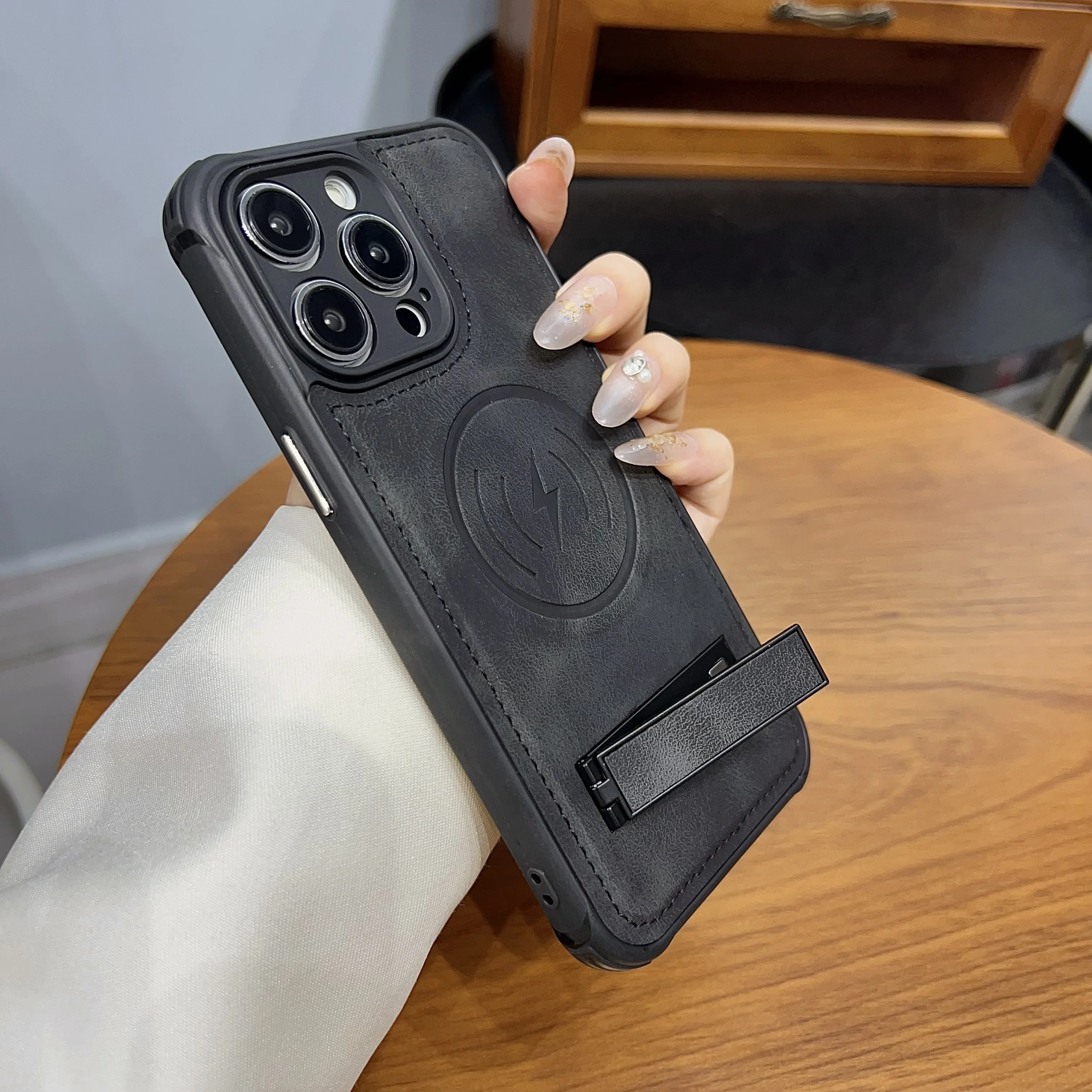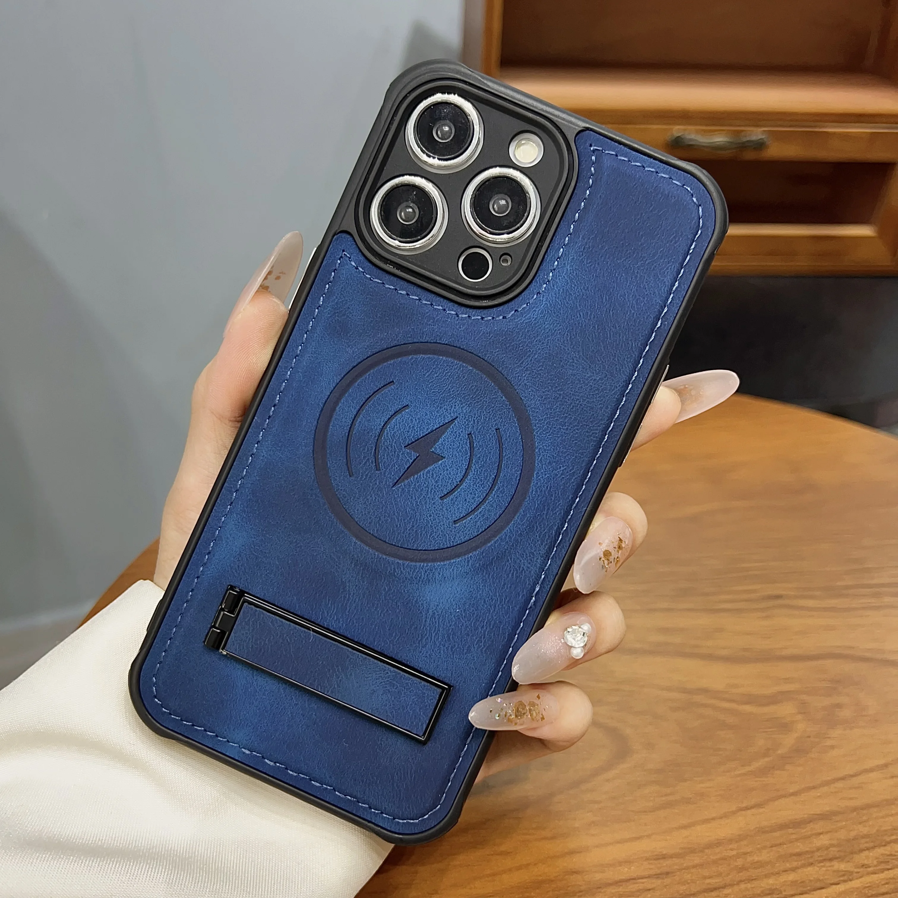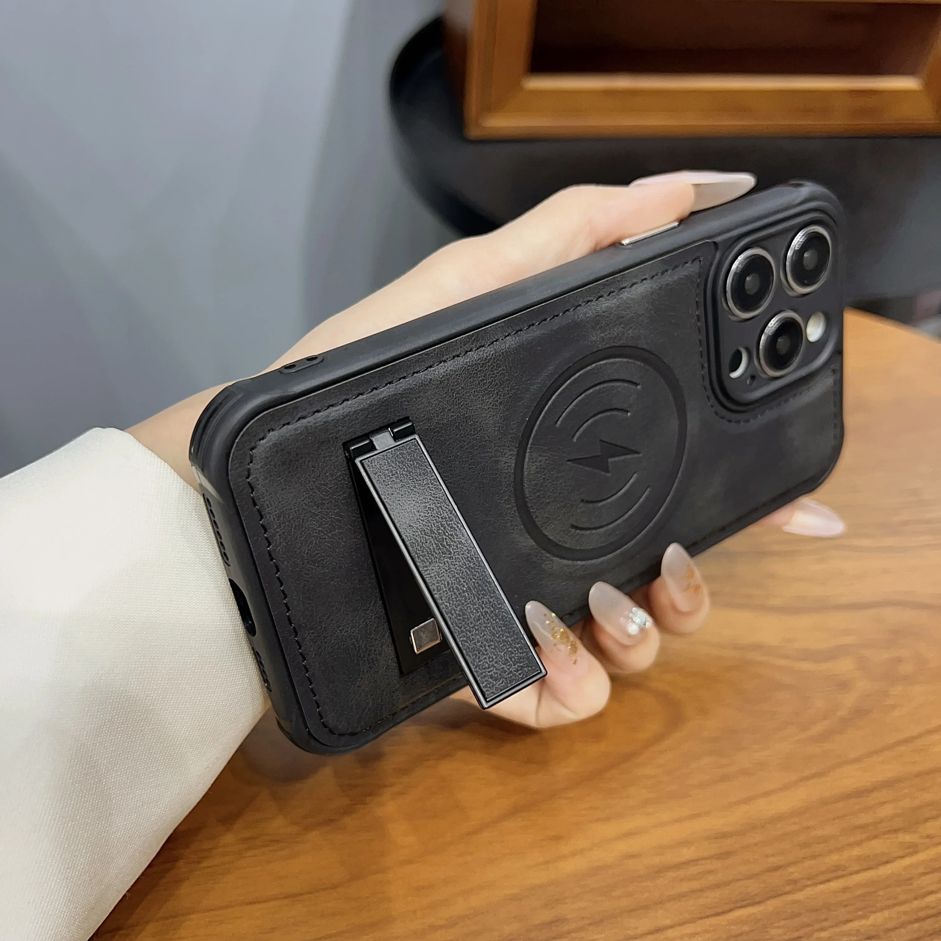 Comprar Funda de cuero con soporte Invisible para iPhone, funda magnética de cuero con carga inalámbrica para iPhone 15 Pro Max 14 Plus 13 12 11