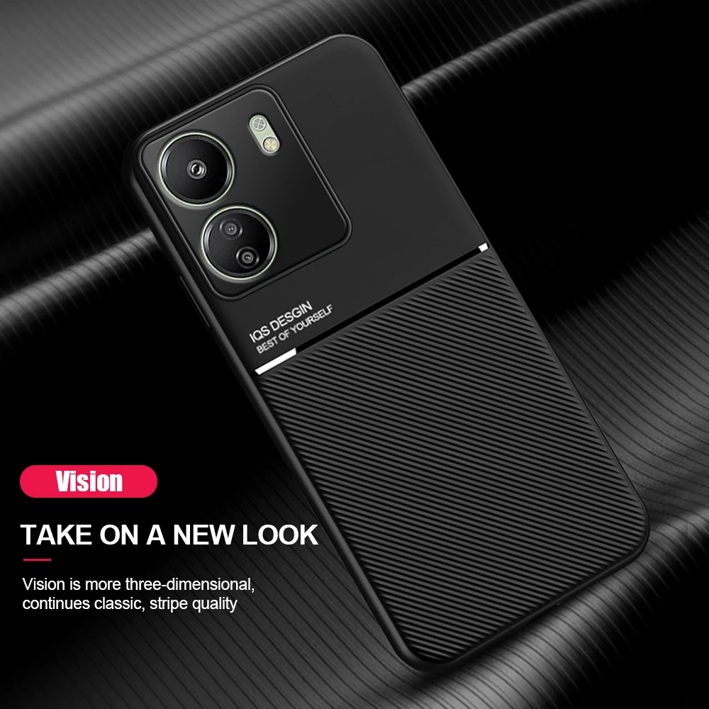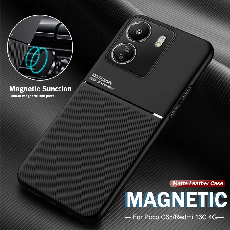 Para Poco C65 C 65 4G, funda trasera de cuero con soporte magnético para coche en Redmi13C Redmi 13C 13 C 4G TPU, funda de parachoques suave a prueba de golpes