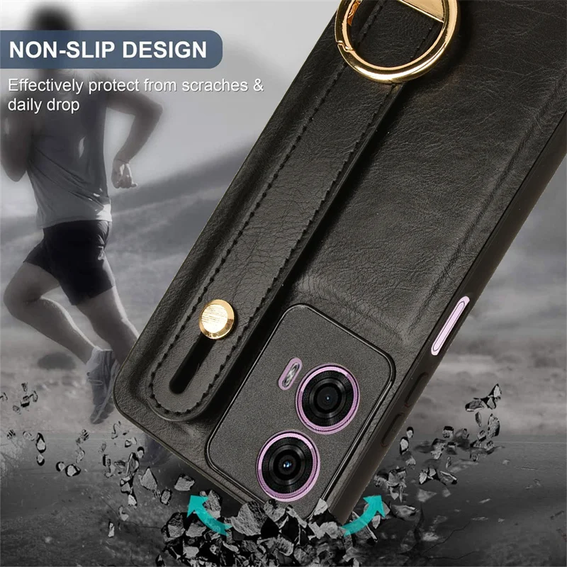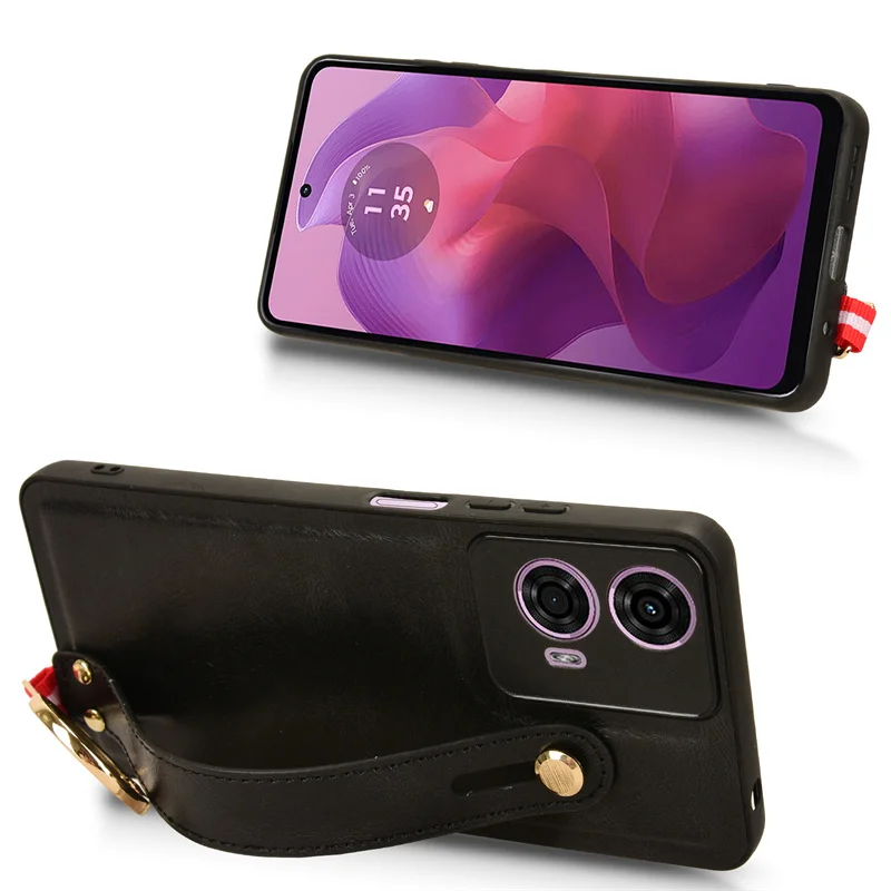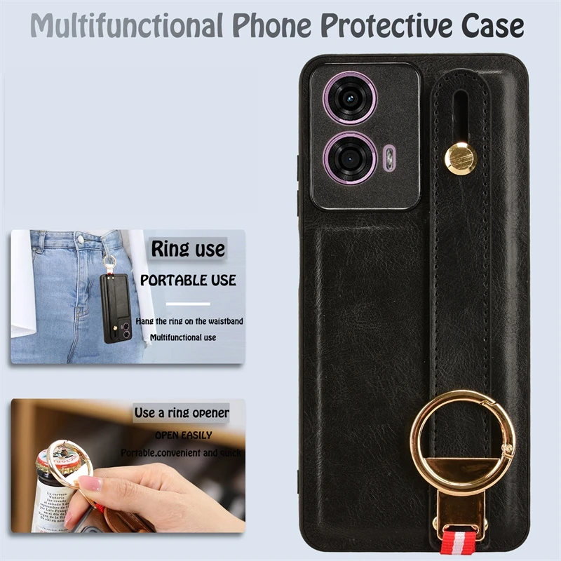 Comprar Funda de cuero con soporte de pulsera de lujo para Motorola Moto, G85, G04, G04S, G14, G24, Power, G34, G54, E14, con abridor de anillo