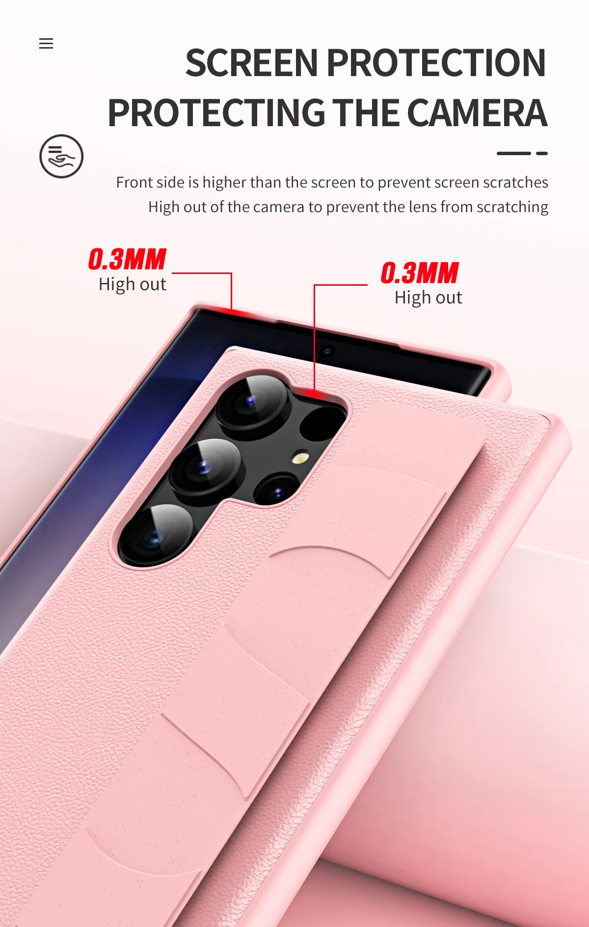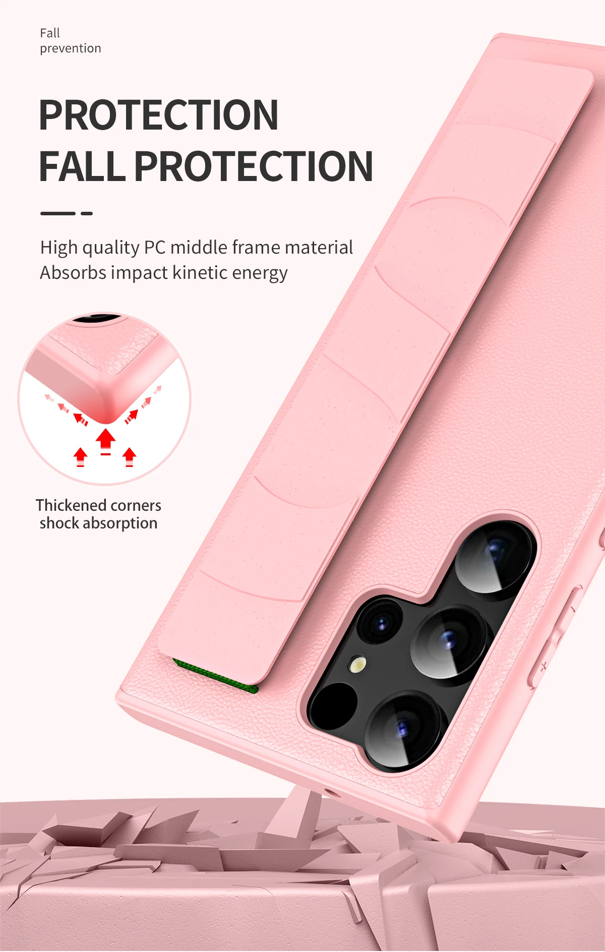 Funda de cuero con soporte a prueba de golpes para Samsung S22 Plus S23 Ultra correa de muñeca soporte agarre sensación de piel funda Lisa Fundas