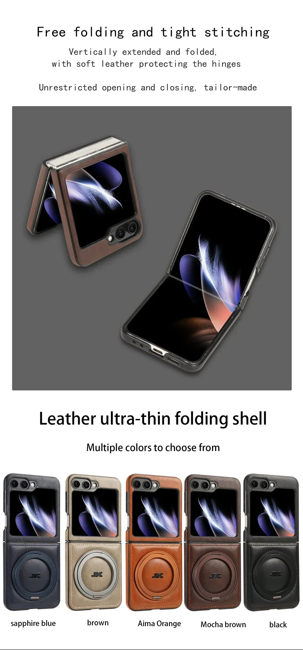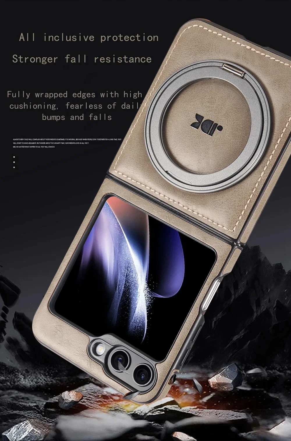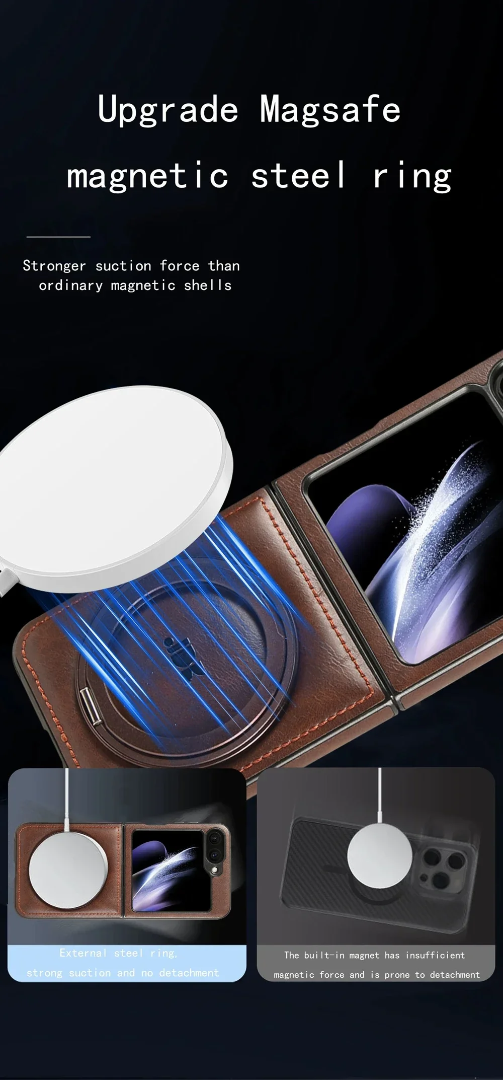 Comprar Funda de cuero con soporte de rotación de lujo para Samsung Galaxy Z Flip 6 5G 5 4 3 Magsafe, funda magnética de carga inalámbrica a prueba de golpes