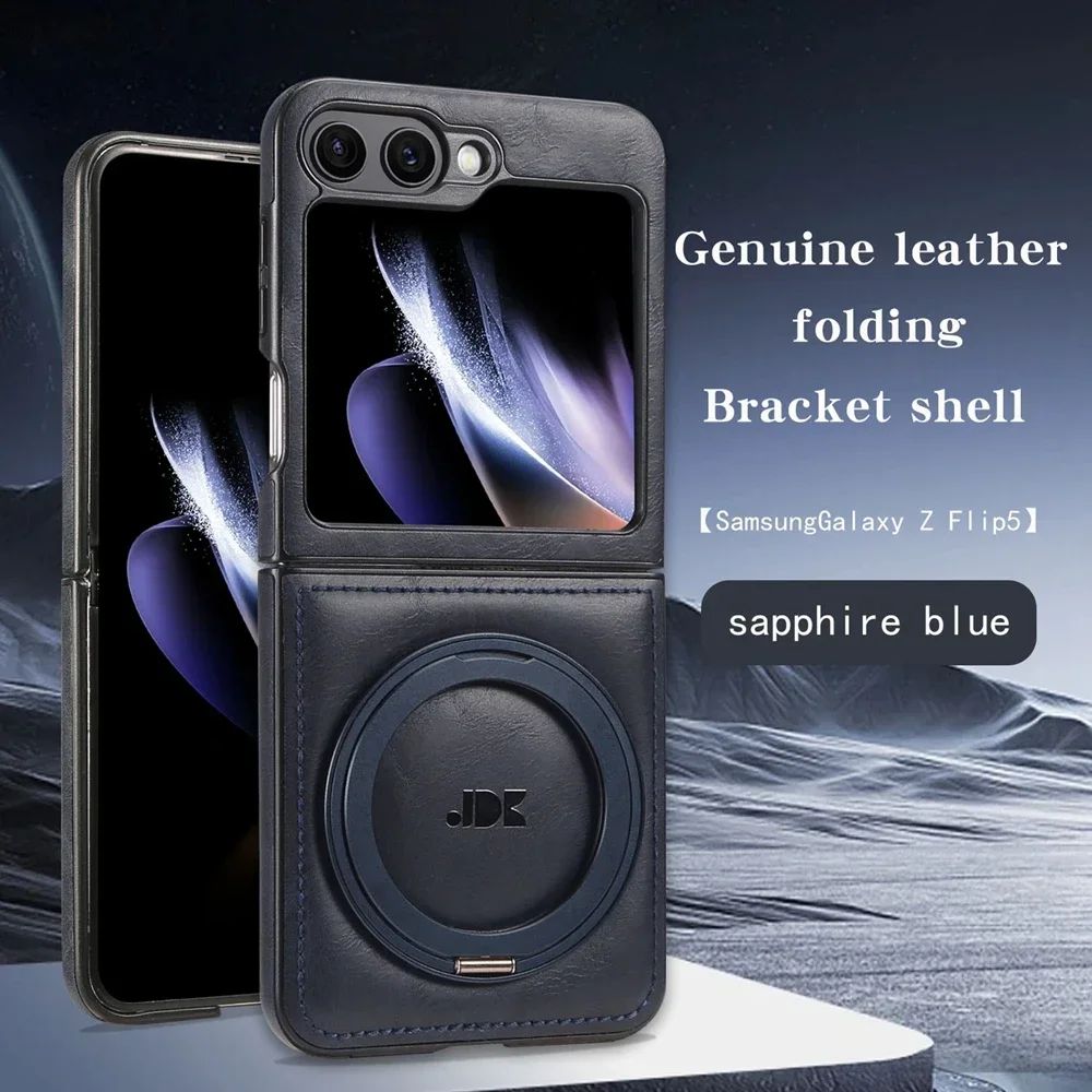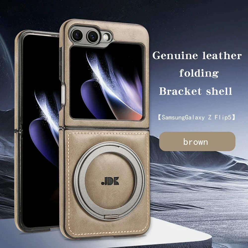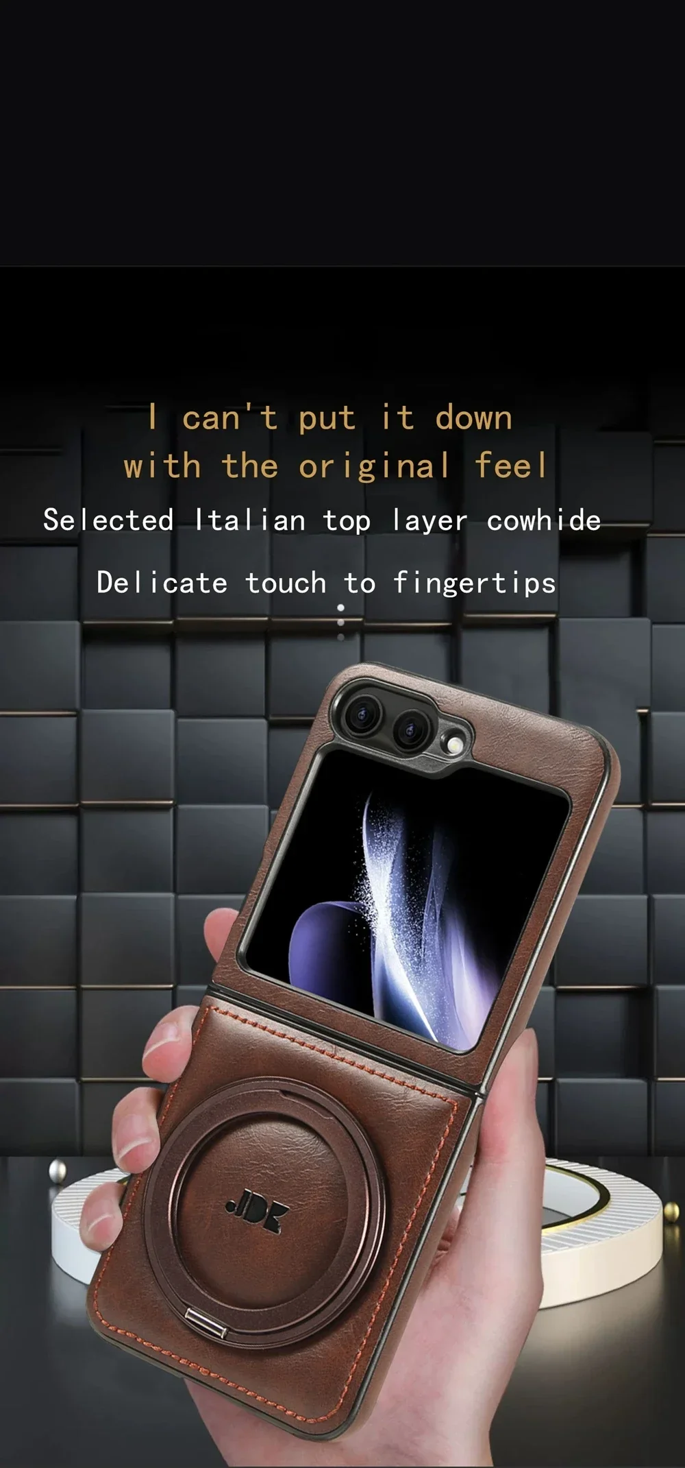 Comprar Funda de cuero con soporte de rotación de lujo para Samsung Galaxy Z Flip 6 5G 5 4 3 Magsafe, funda magnética de carga inalámbrica a prueba de golpes