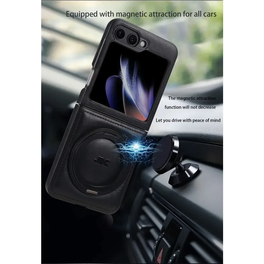 Comprar Funda de cuero con soporte de rotación de lujo para Samsung Galaxy Z Flip 6 5G 5 4 3 Magsafe, funda magnética de carga inalámbrica a prueba de golpes