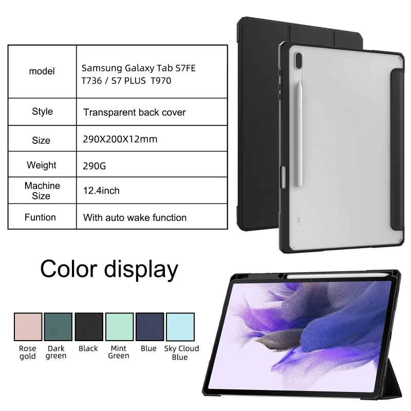 Descripción del producto: Bandeja transparente de tres pliegues de alta gama Tab Case Bracket TPU para bolígrafos