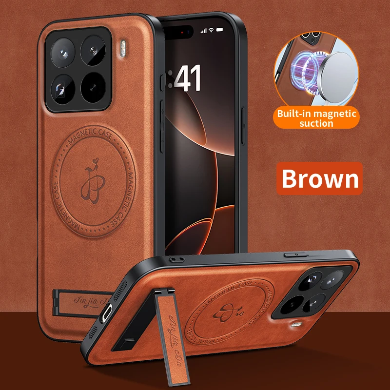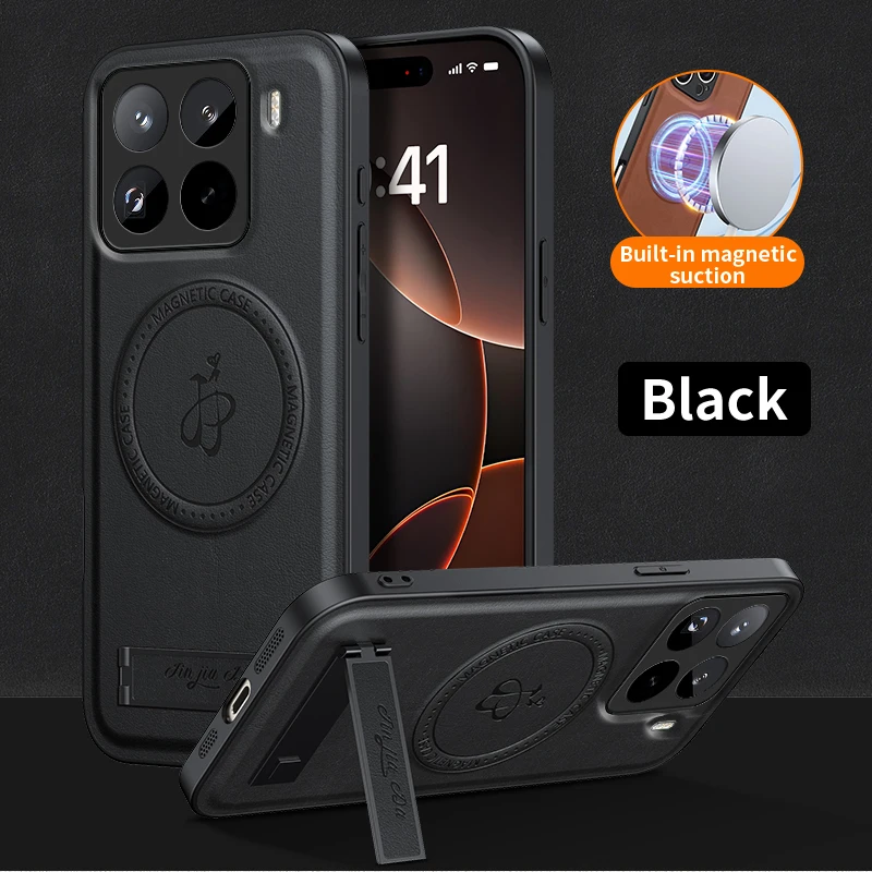 Funda de cuero con soporte para Xiaomi 15T Pro, funda para Xiaomi Mi15 T 15Tpro, carcasa magnética Magsafe de carga inalámbrica a prueba de golpes para cámara