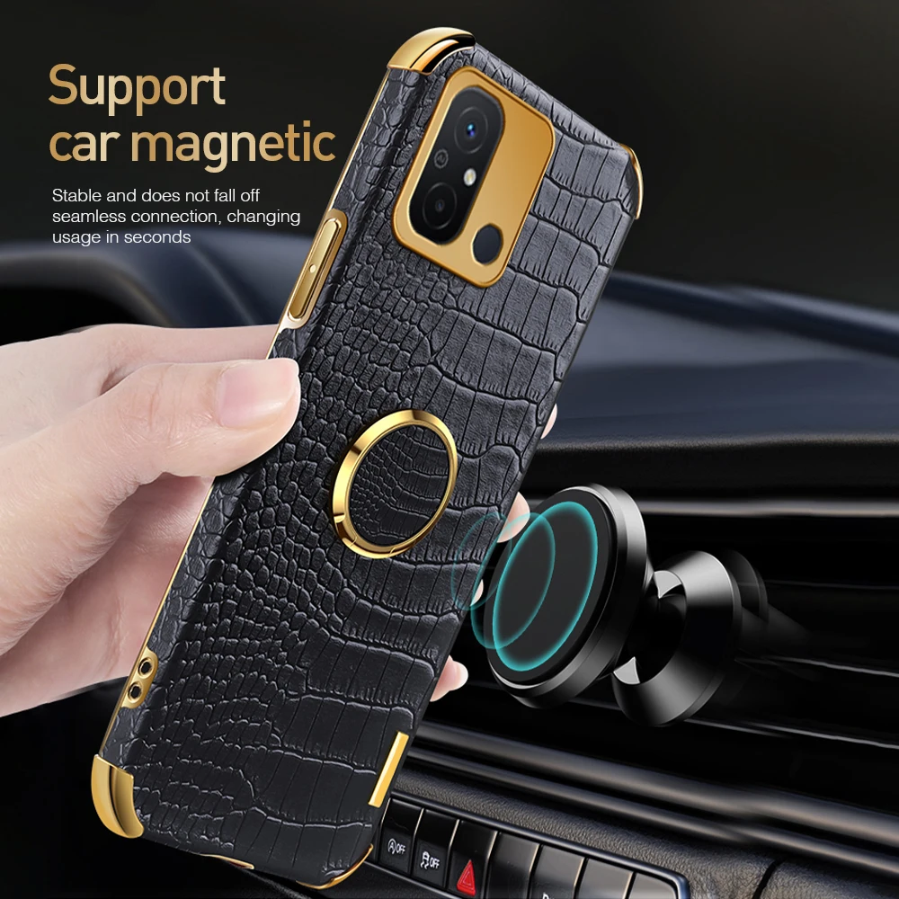 Comprar Funda de cuero suave de TPU Chapado en 6D para Xiaomi Redmi 12C 4G, funda con soporte magnético, anillo a prueba de golpes, Coque en Redmi12C Redmy 12C 12 C 4G