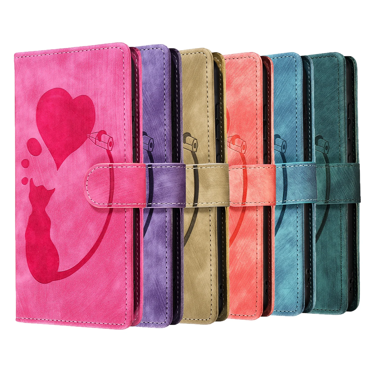Comprar Funda de cuero con tapa de gato en relieve para Samsung Galaxy A15, A25, A55, A35, A05S, A54, S24, Ultra S23 FE, S22 Plus