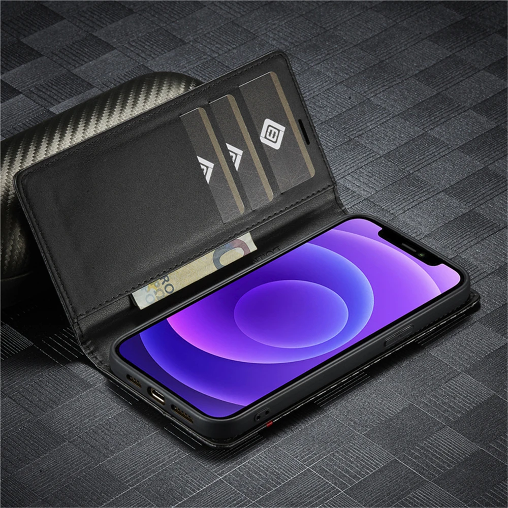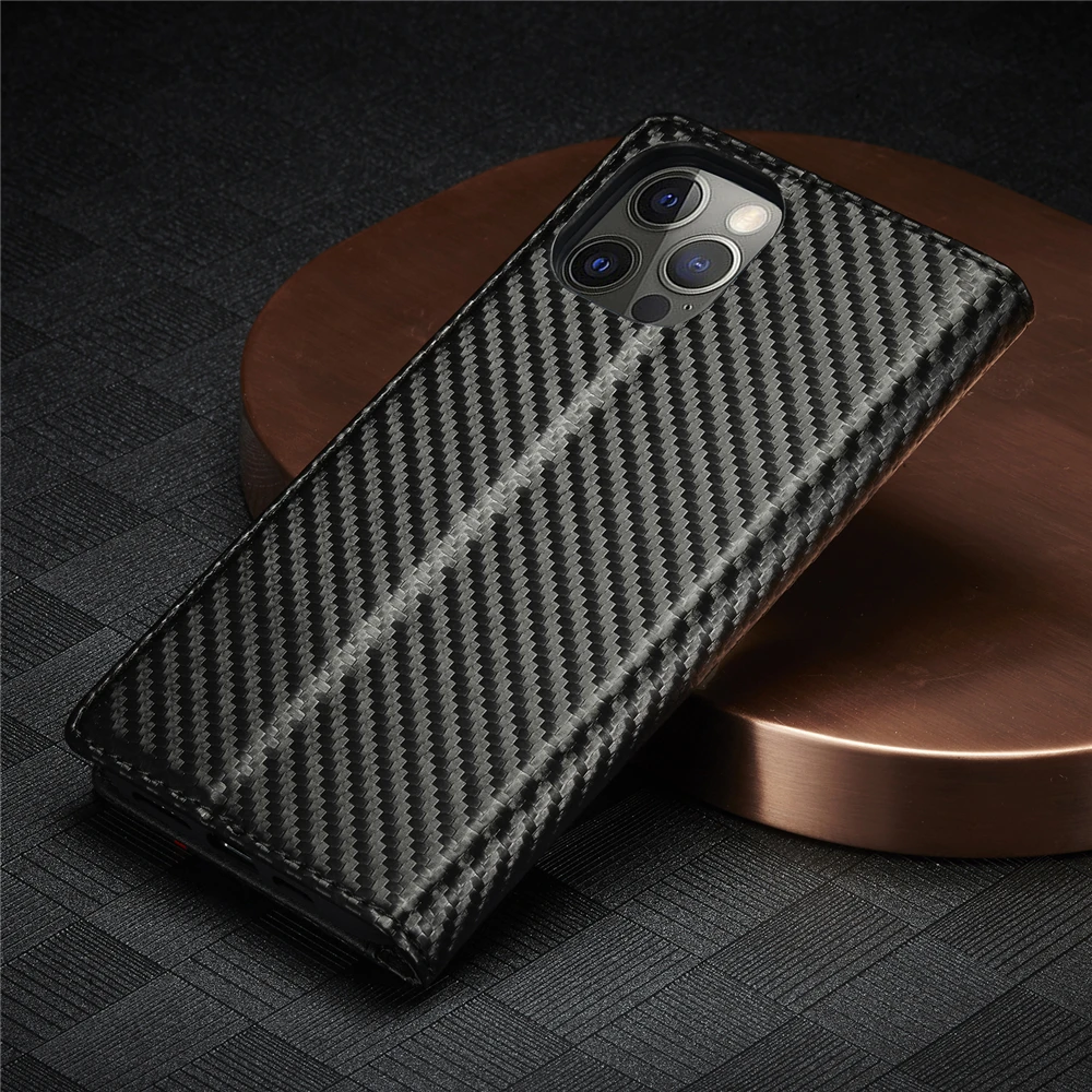 Comprar Funda de cuero con tapa para iPhone, carcasa de fibra de carbono con soporte para tarjetas, XR, XS, Max, SE, para modelos 12, 11, 13 Pro Max, Mini, 8, 7 Plus, 2020