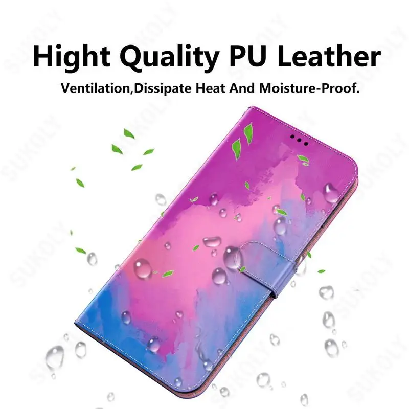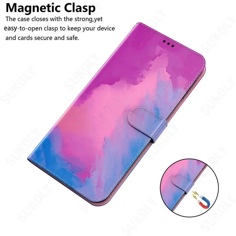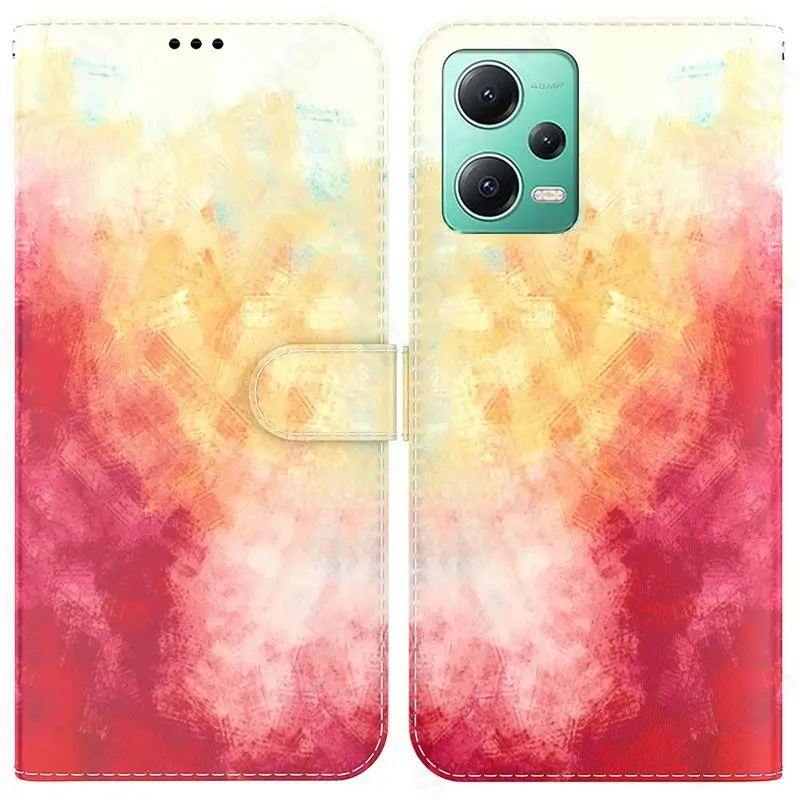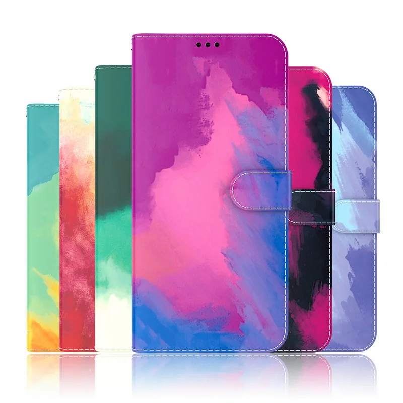 Comprar Funda de cuero con tapa magnética para Redmi Note 12, 11 Pro, Note 10, 9, 4G, K40, funda híbrida con soporte de acuarela para Poco X5 Pro F3
