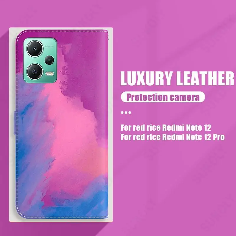 Comprar Funda de cuero con tapa magnética para Redmi Note 12, 11 Pro, Note 10, 9, 4G, K40, funda híbrida con soporte de acuarela para Poco X5 Pro F3