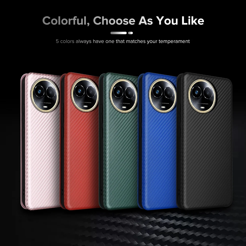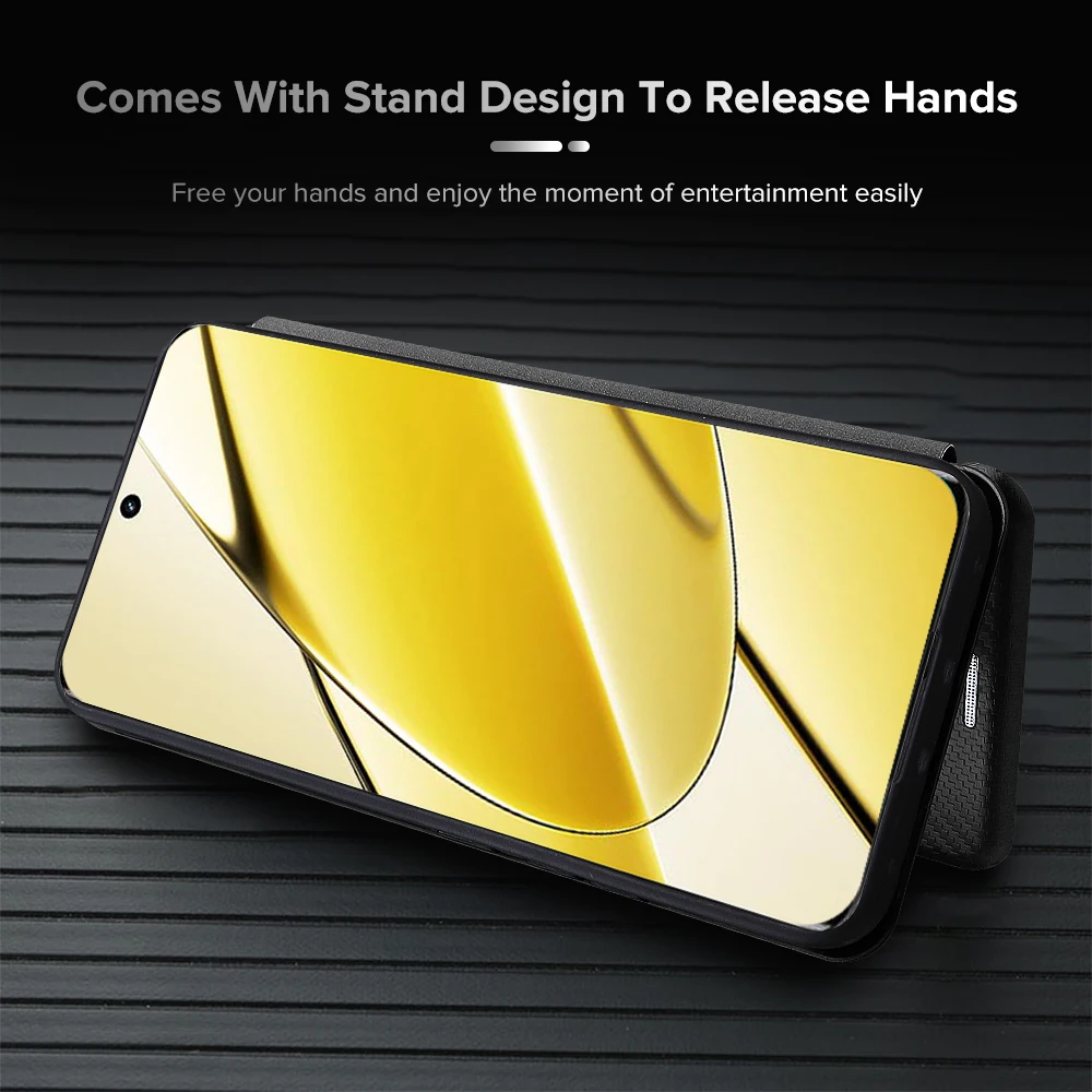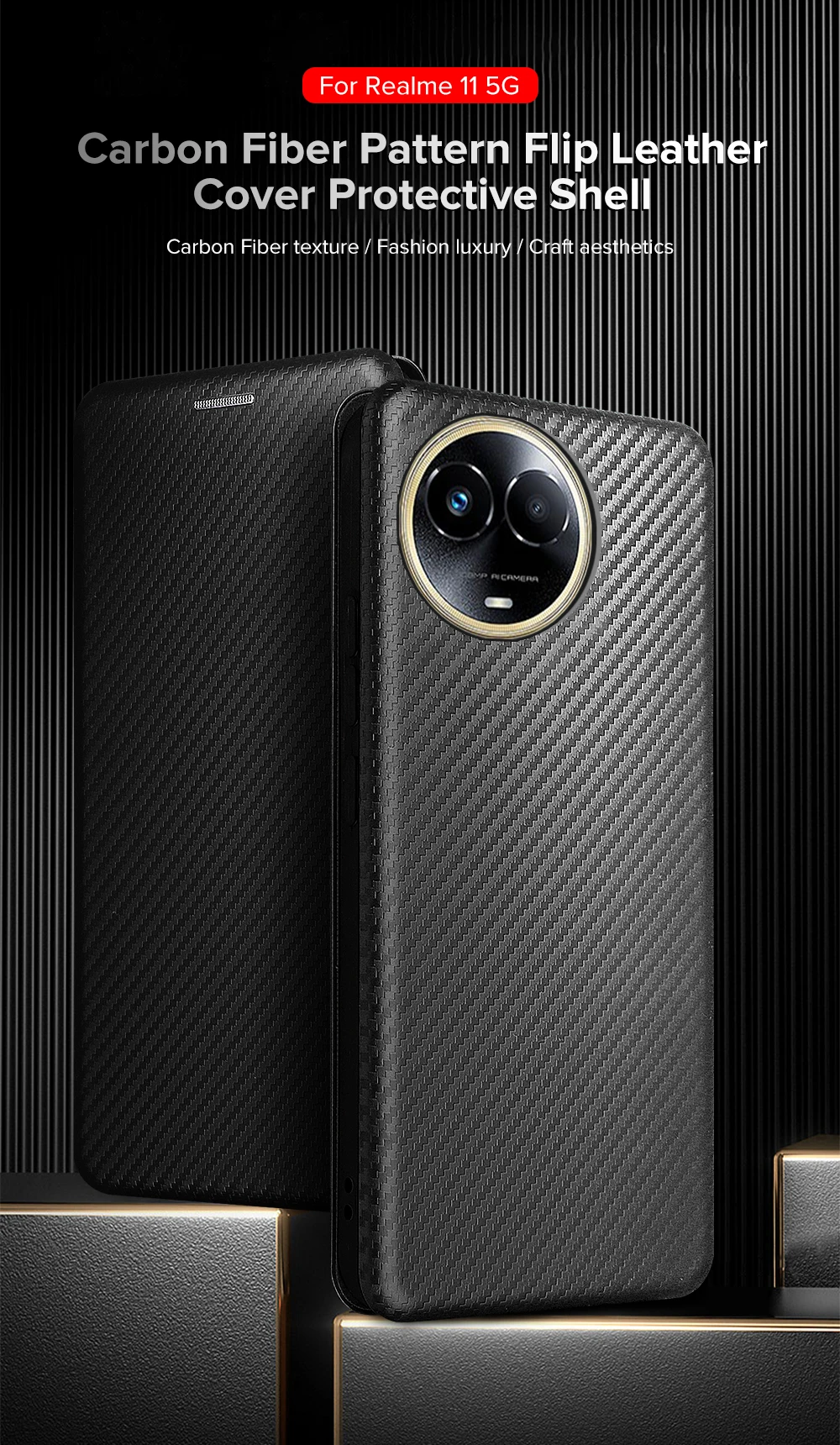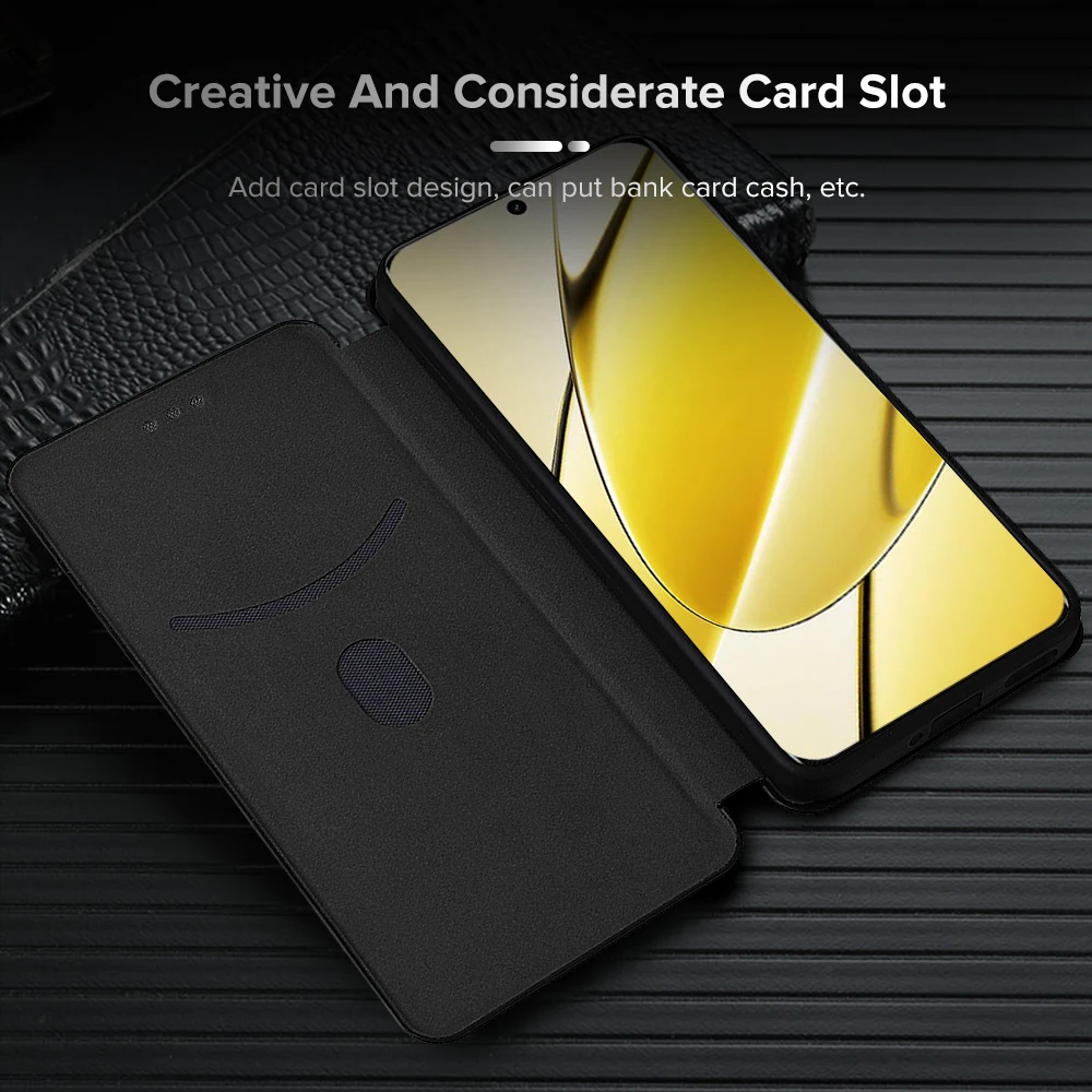 Para 11 5G versión Global funda de fibra de carbono textura Flip Funda de cuero Realme11 Pro Plus 11 Pro + ranura para tarjeta soporte de anillo Capa